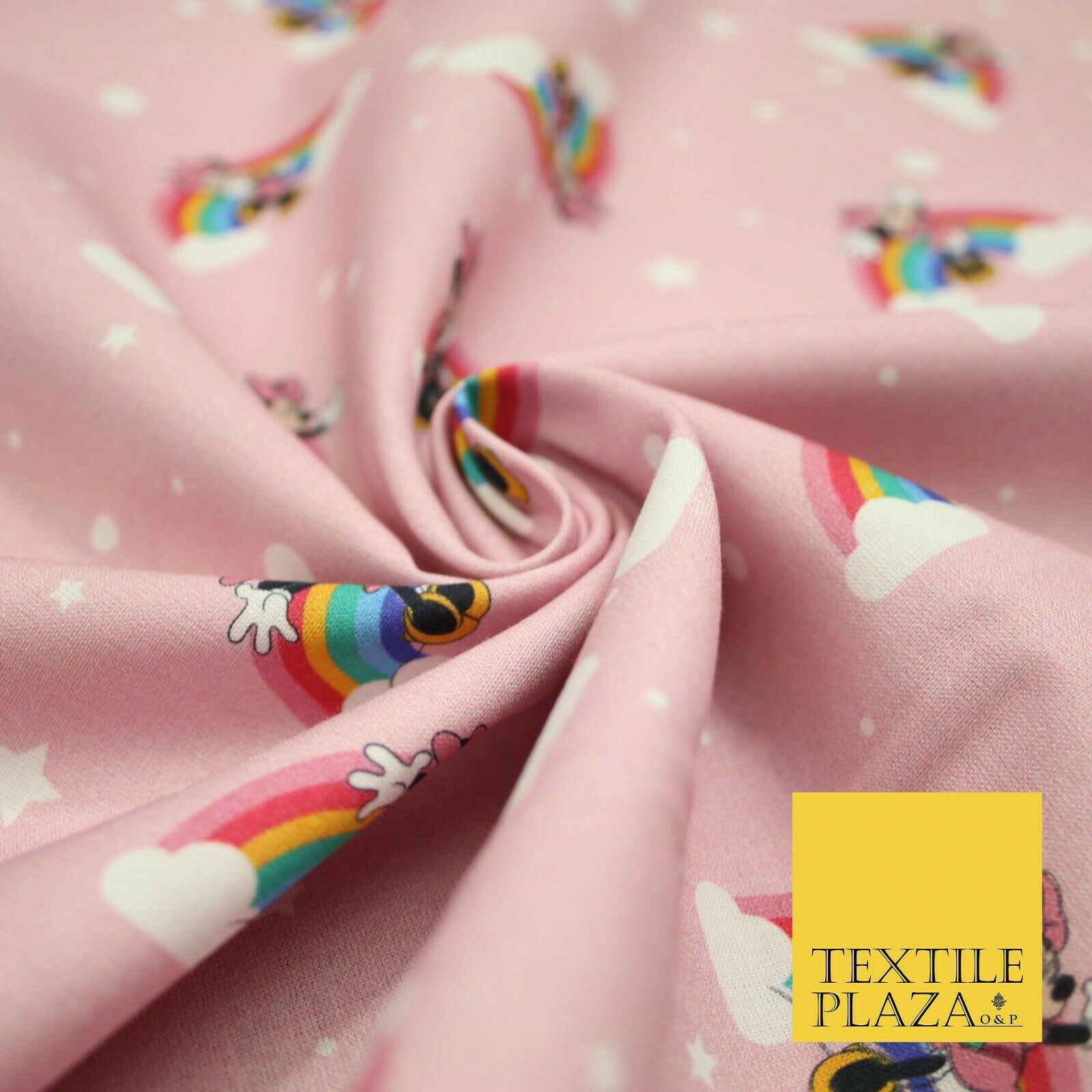 PINK Minnie Mouse Magical Rainbows Disney Licensed 100% Cotton Print Fabric 4955