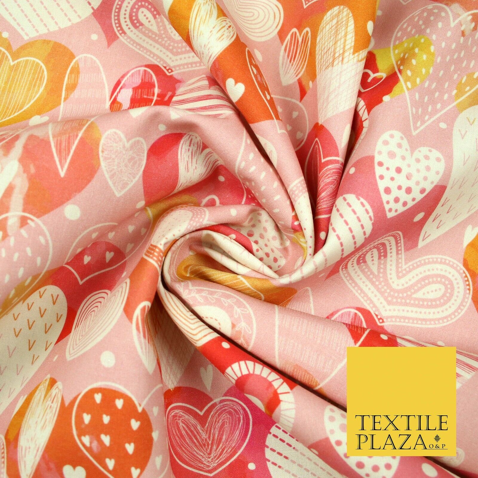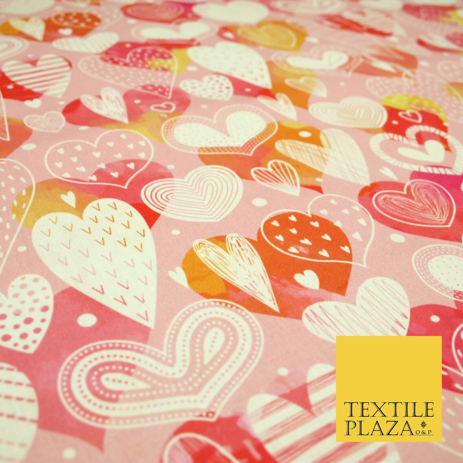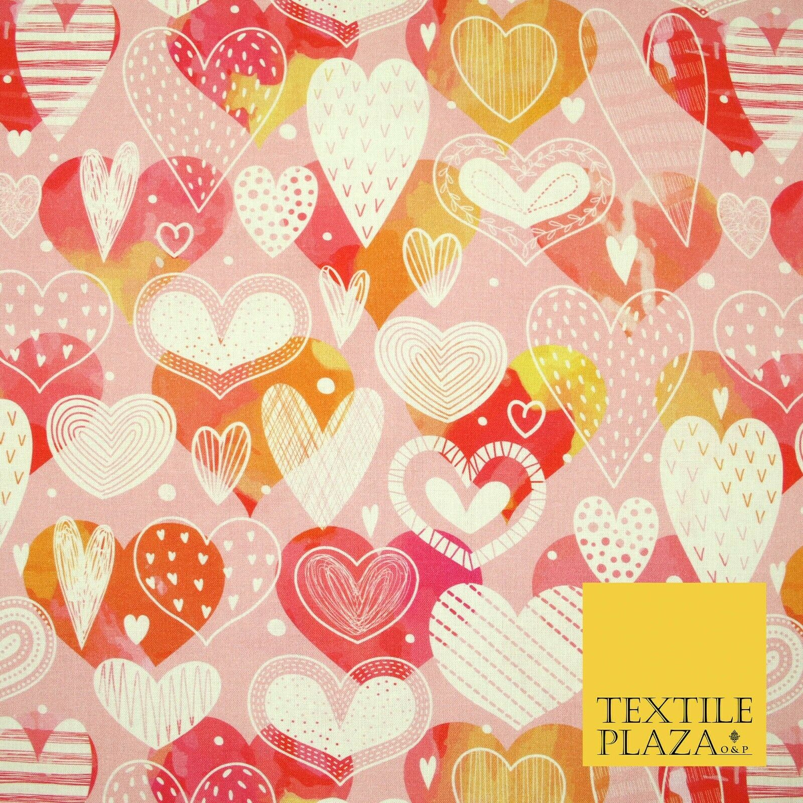 Pink Ornate Valentines Mix Love Hearts Digital Print 100% Cotton Fabric 58" 5501