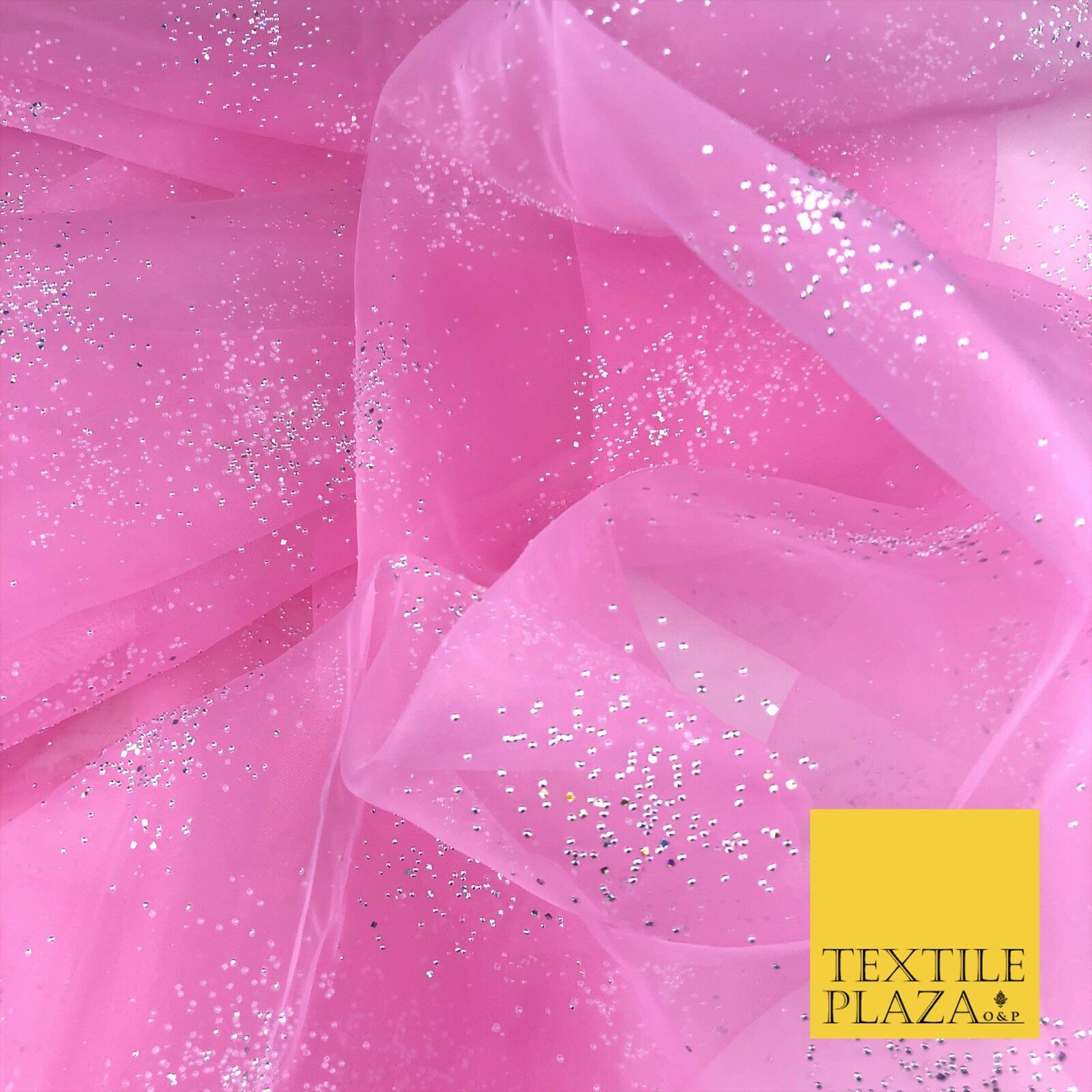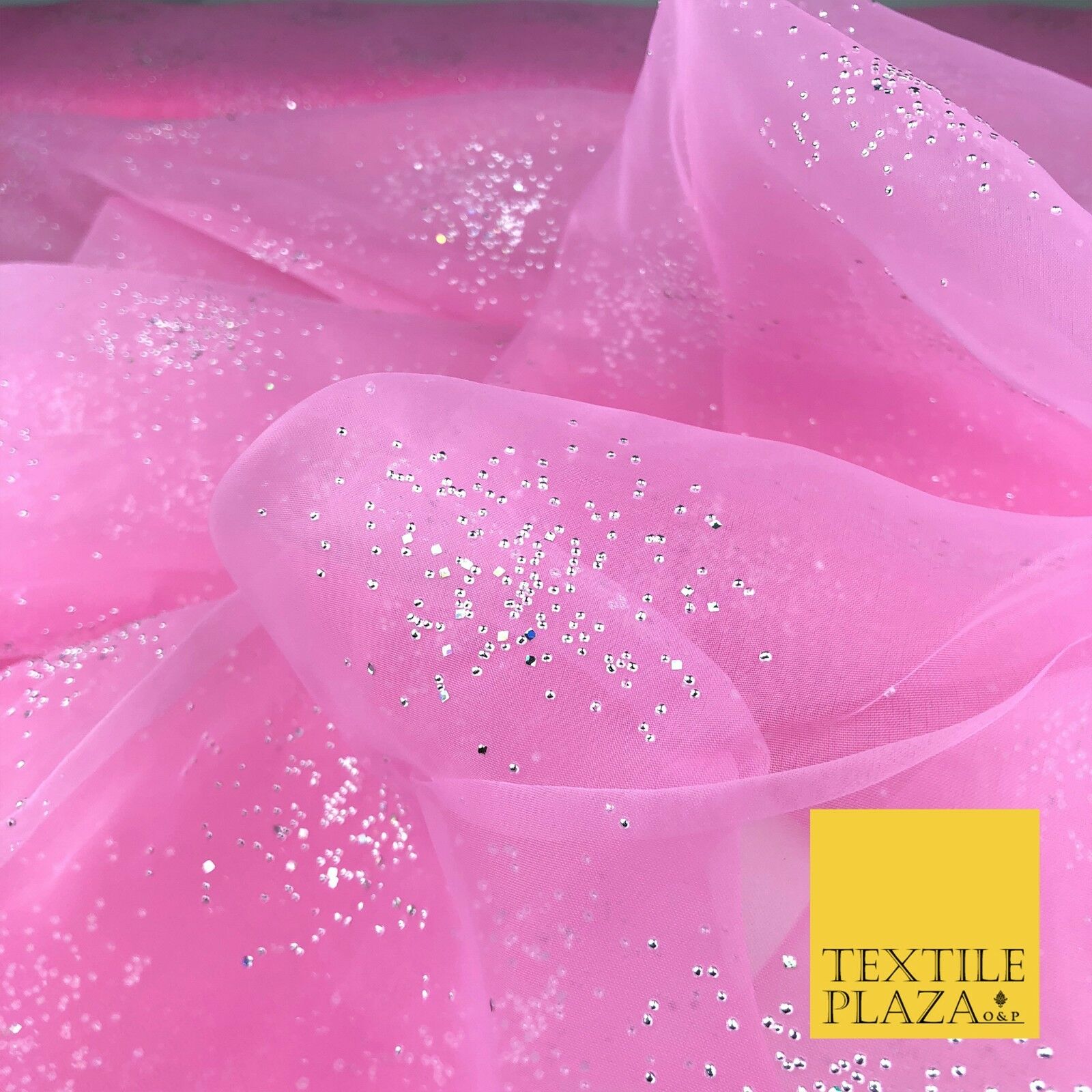 PINK Premium Glitter Hologram Cluster Organza Fabric - Dress Flowy Decor QD919