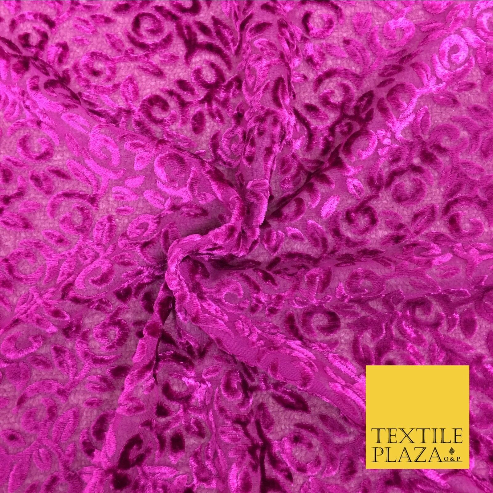 Pink Velvet Devore Floral Burnout Fabric Material - 45" - More Colours - PE158