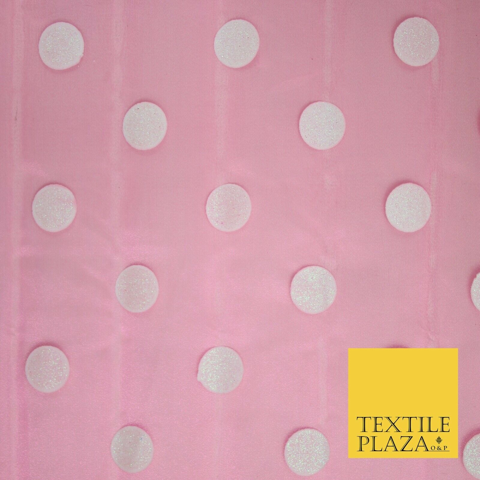 PINK / WHITE 1" SPOT Polka Dot Glitter Organdi Organza Fabric - 60" - 6355
