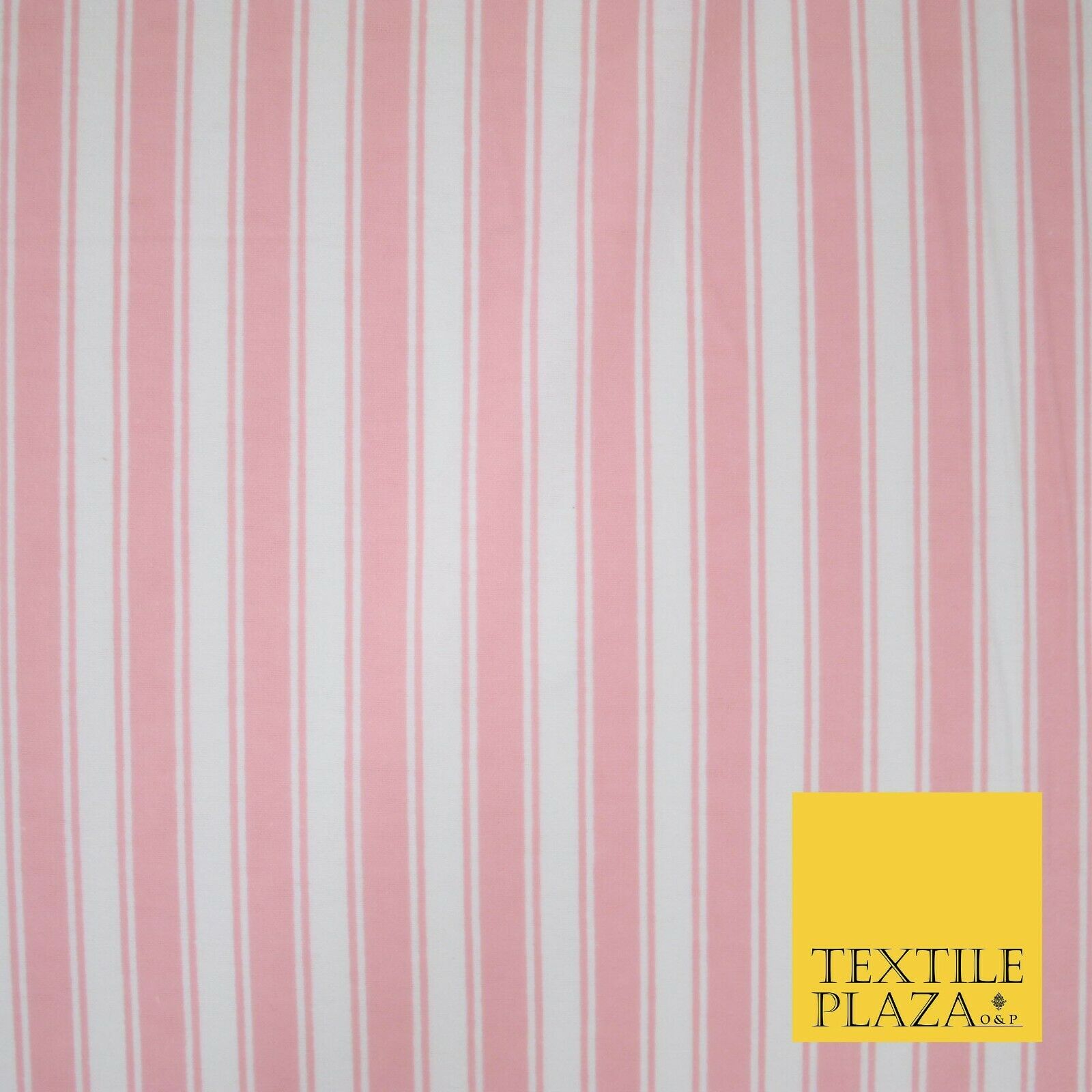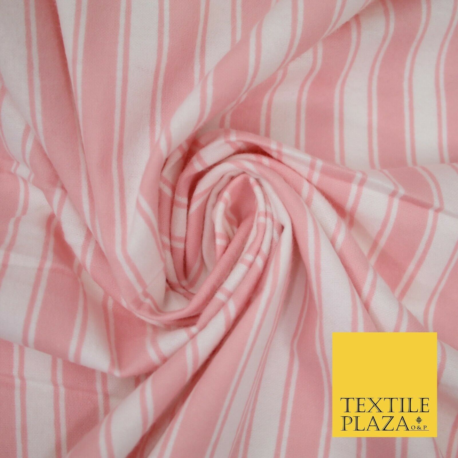 Pink White Bar Striped Lines Winceyette Soft Brushed Cotton Print Fabric 3972