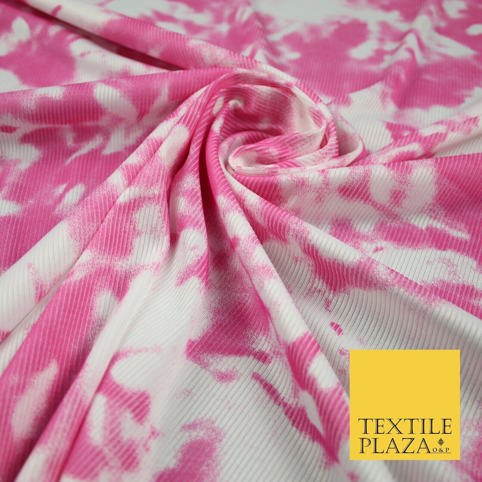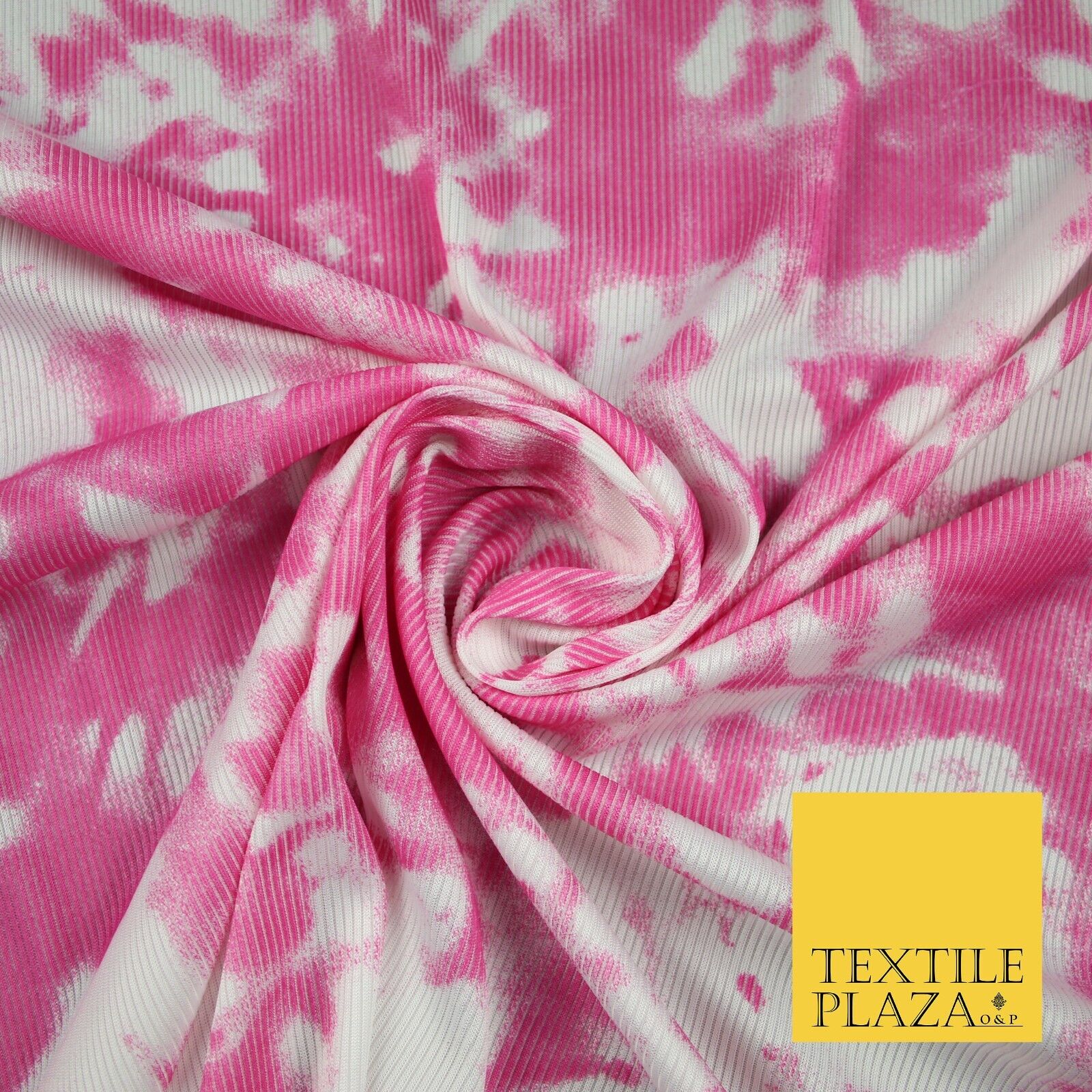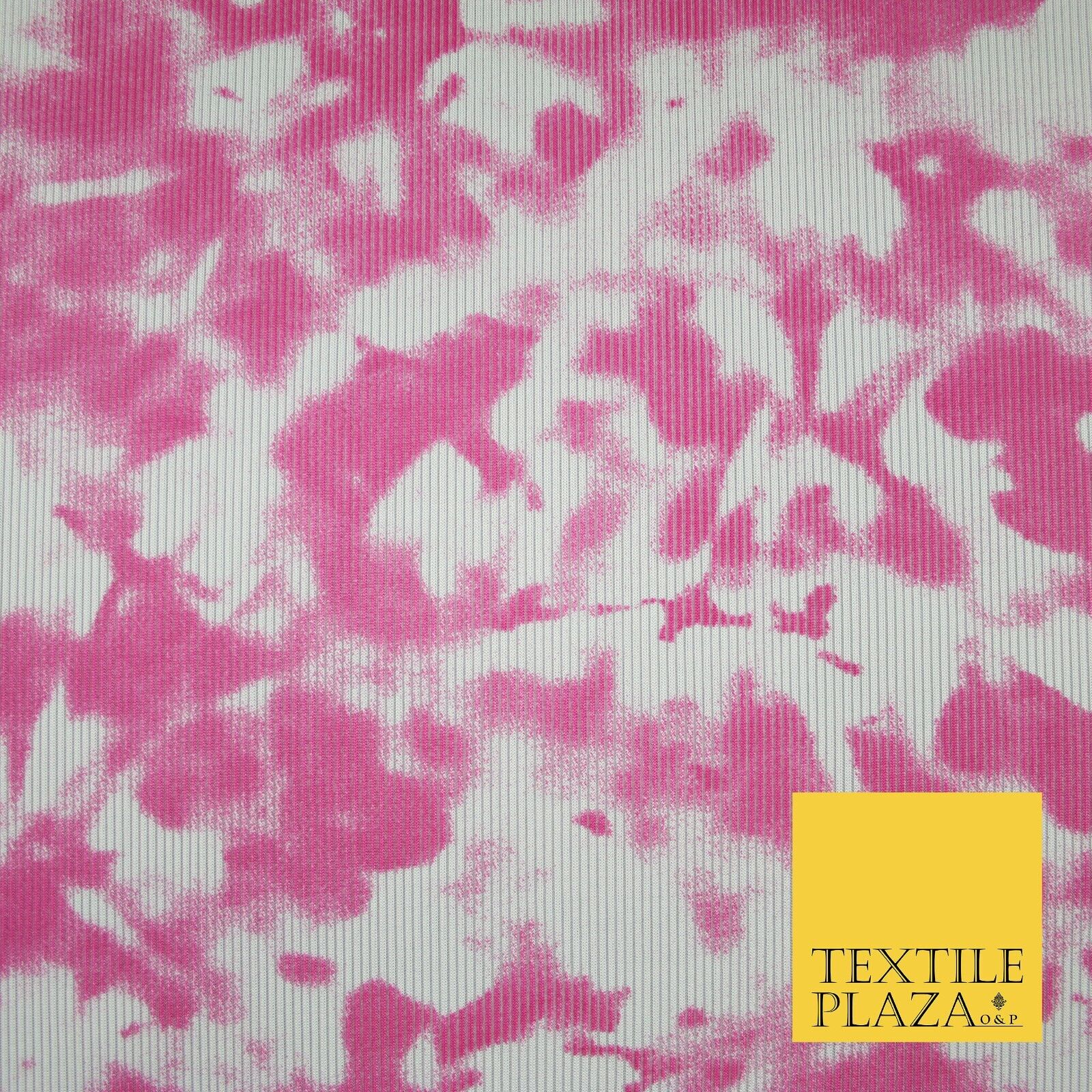Pink & White Tie-Dye Artsy Printed Ribbed Stretch Jersey Fabric 56" 6584
