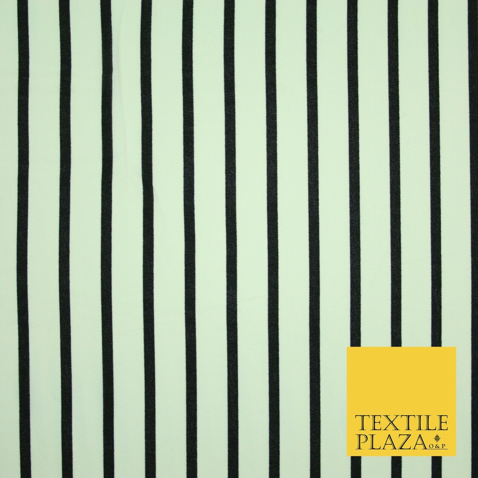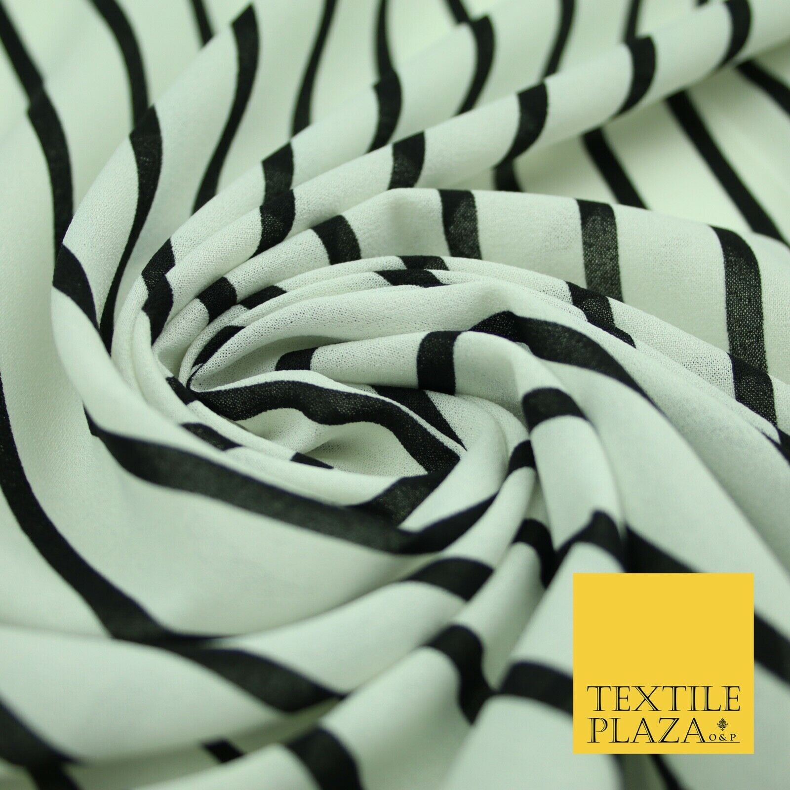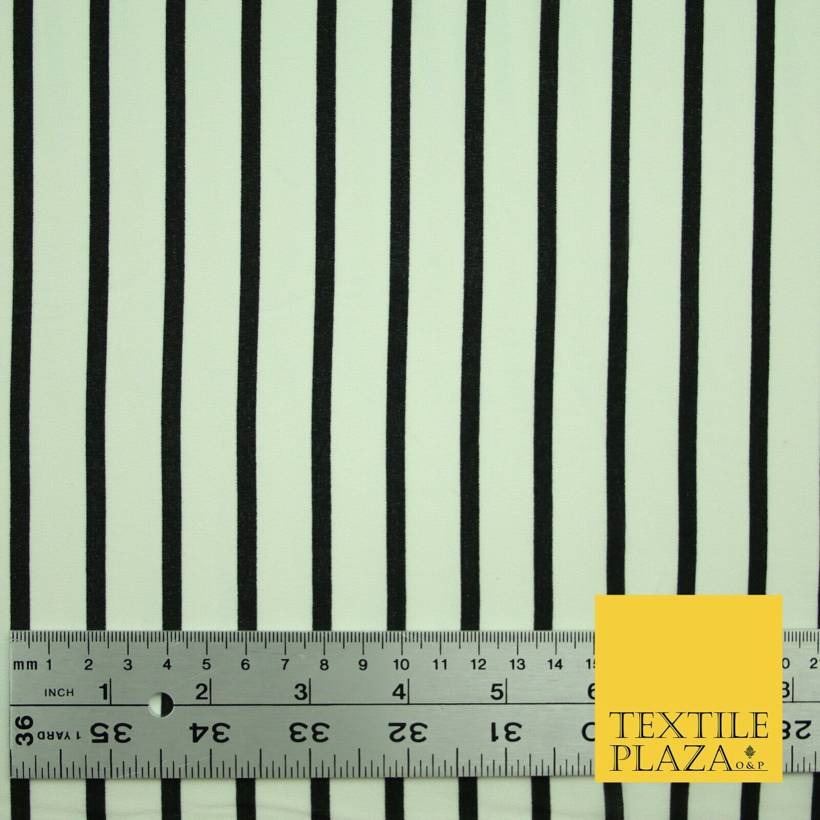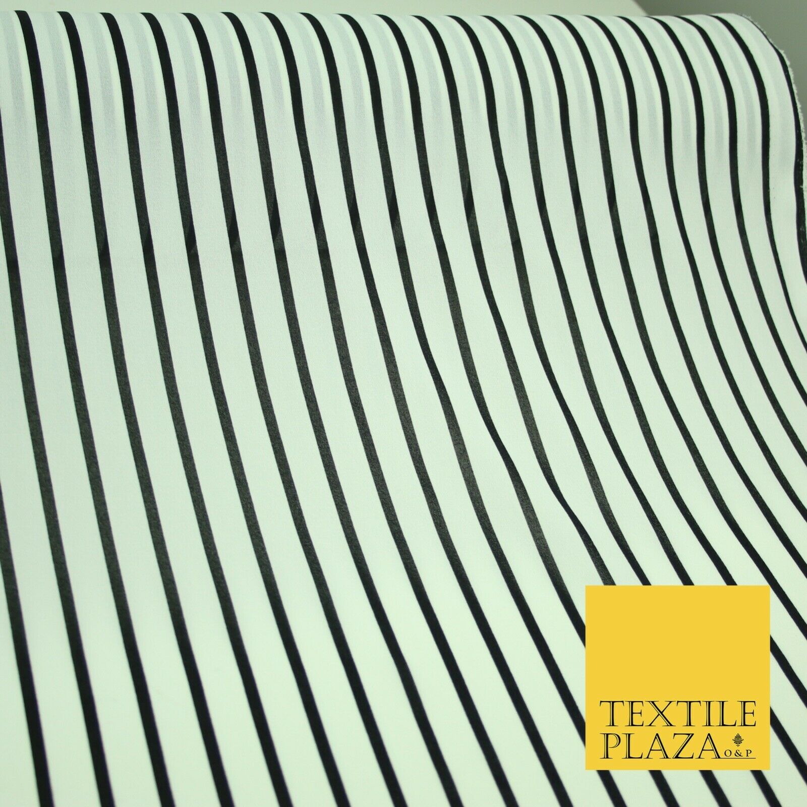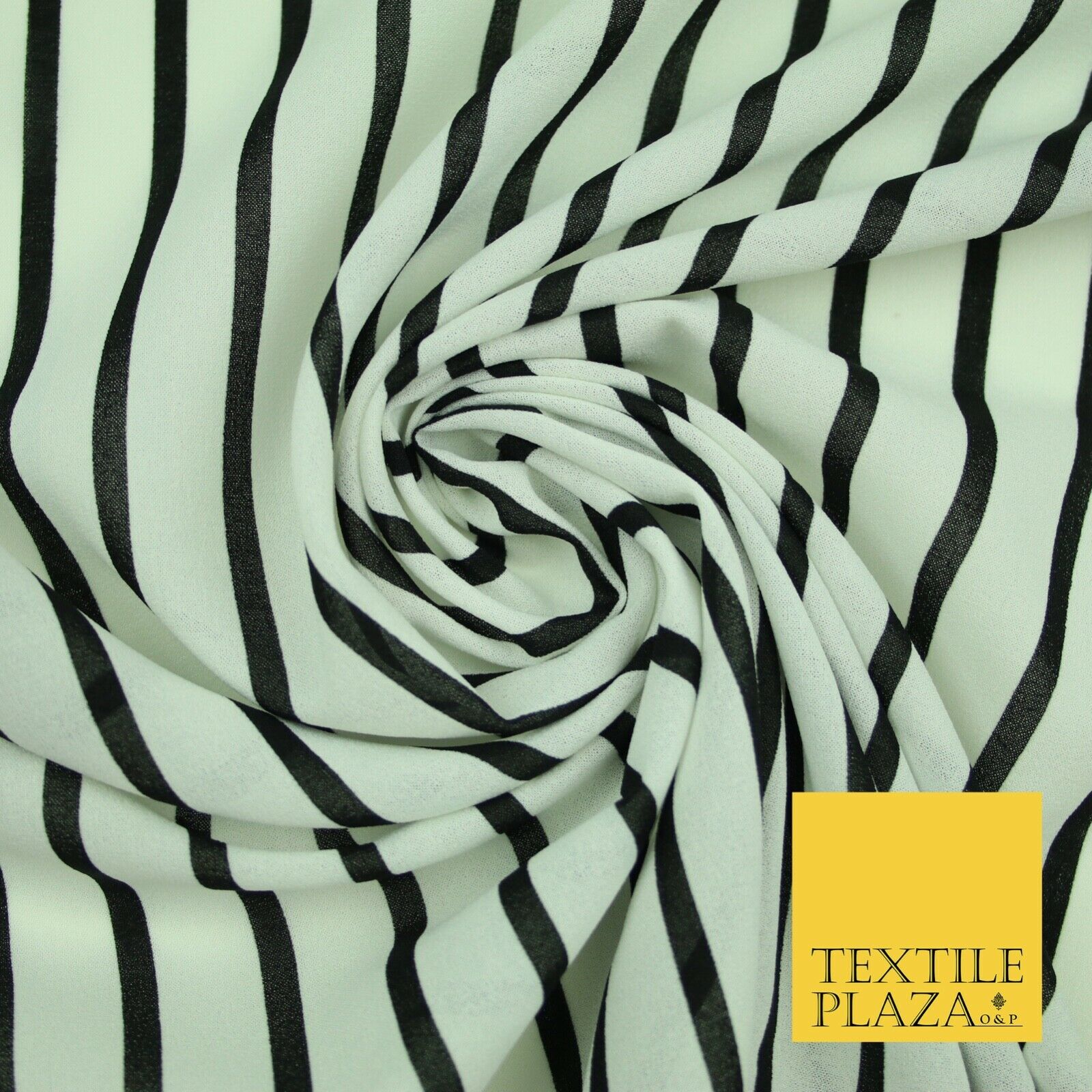 PINSTRIPE BRETON STRIPE Black White Printed Crepe Polyester Dress Fabric 2731