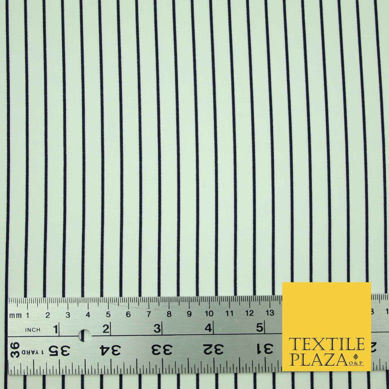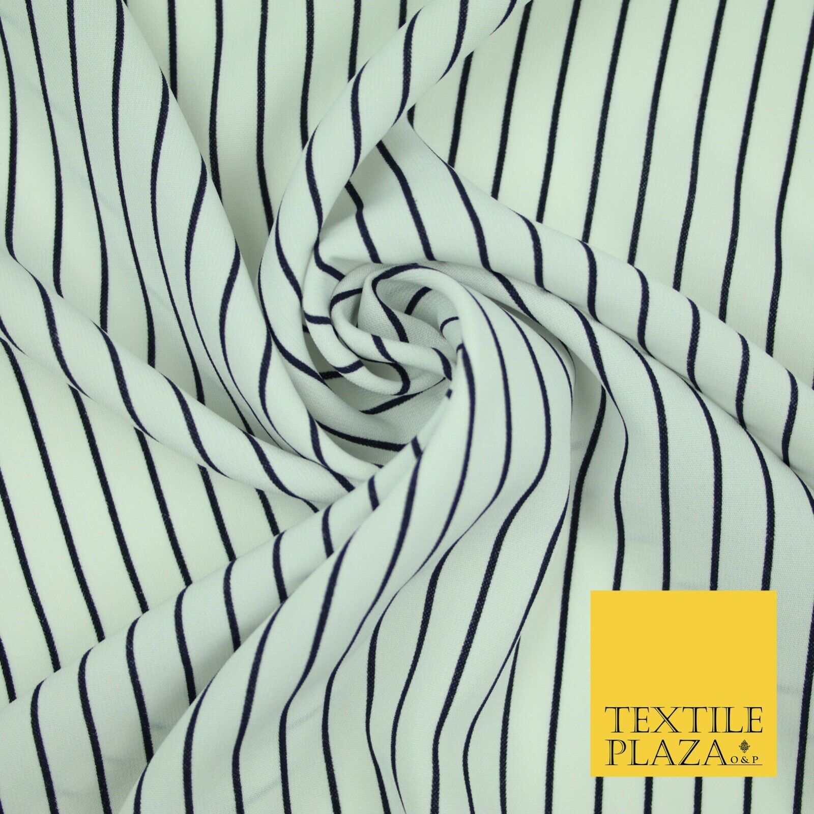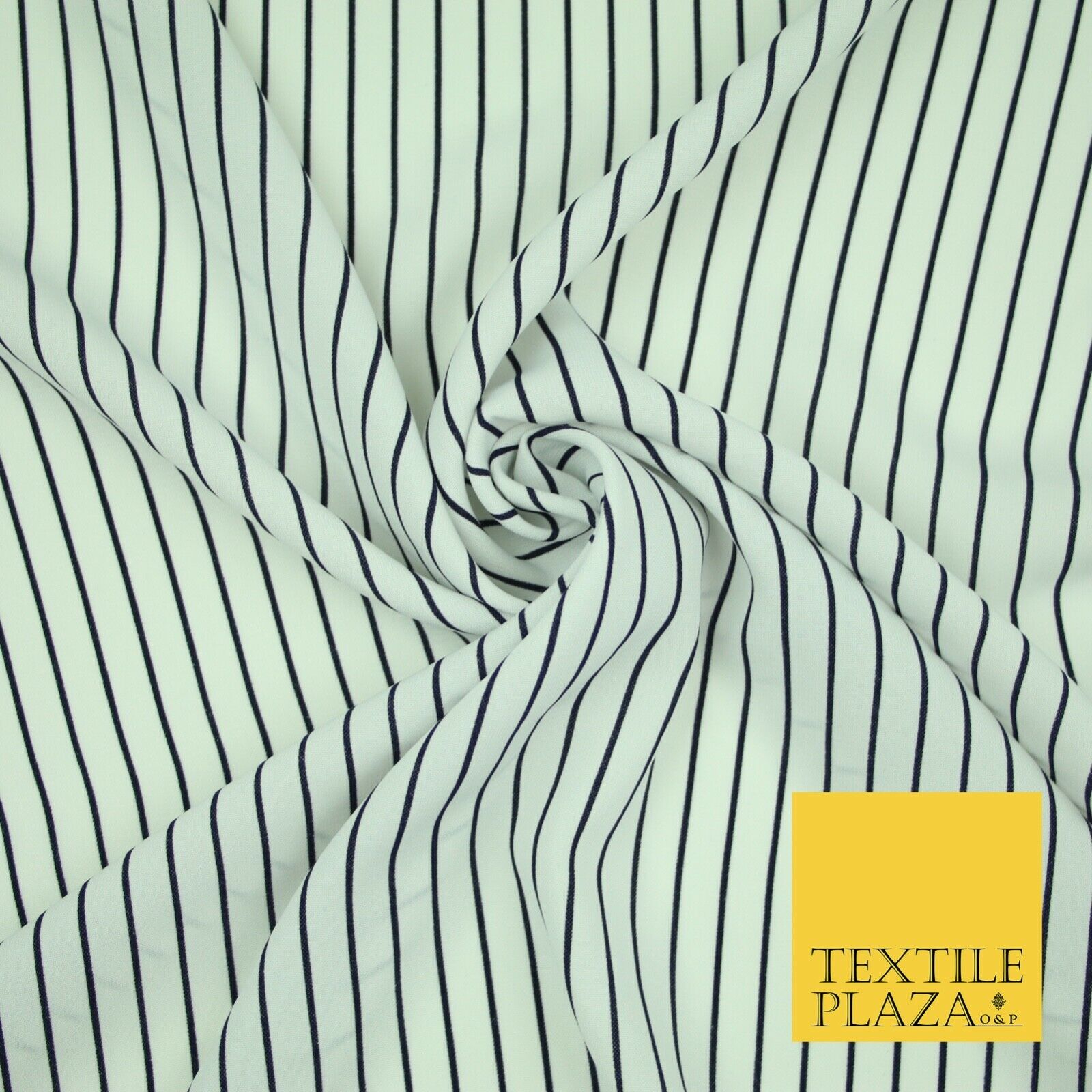 PINSTRIPE BRETON STRIPE Black White Printed Crepe Polyester Dress Fabric 2732