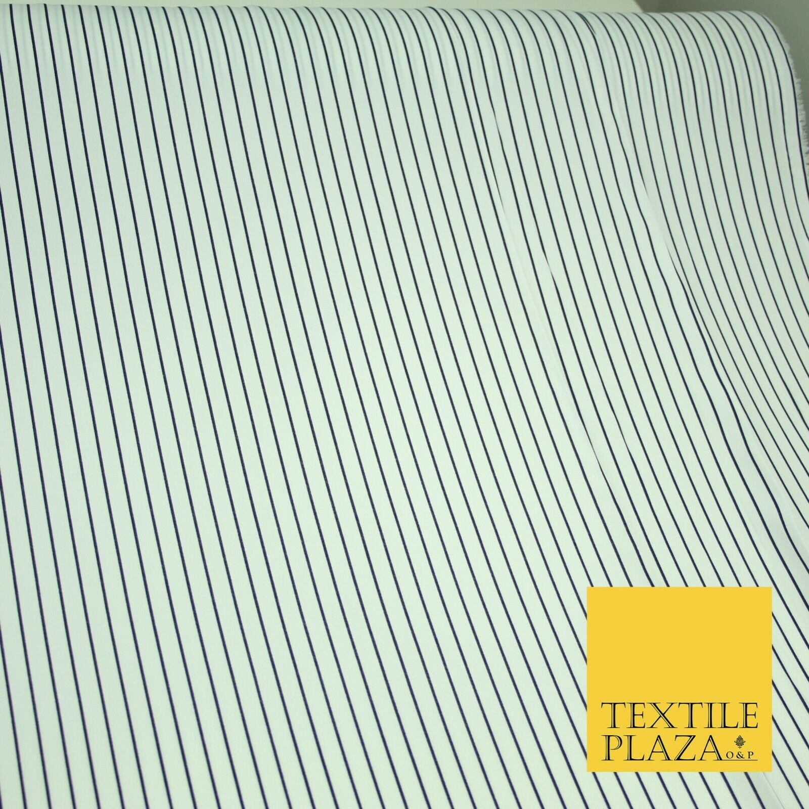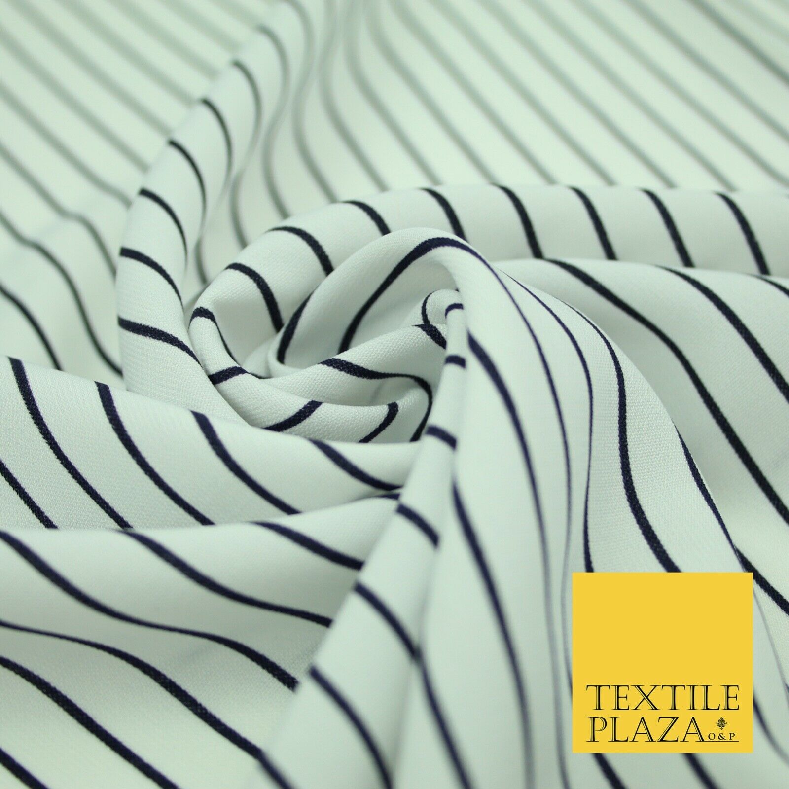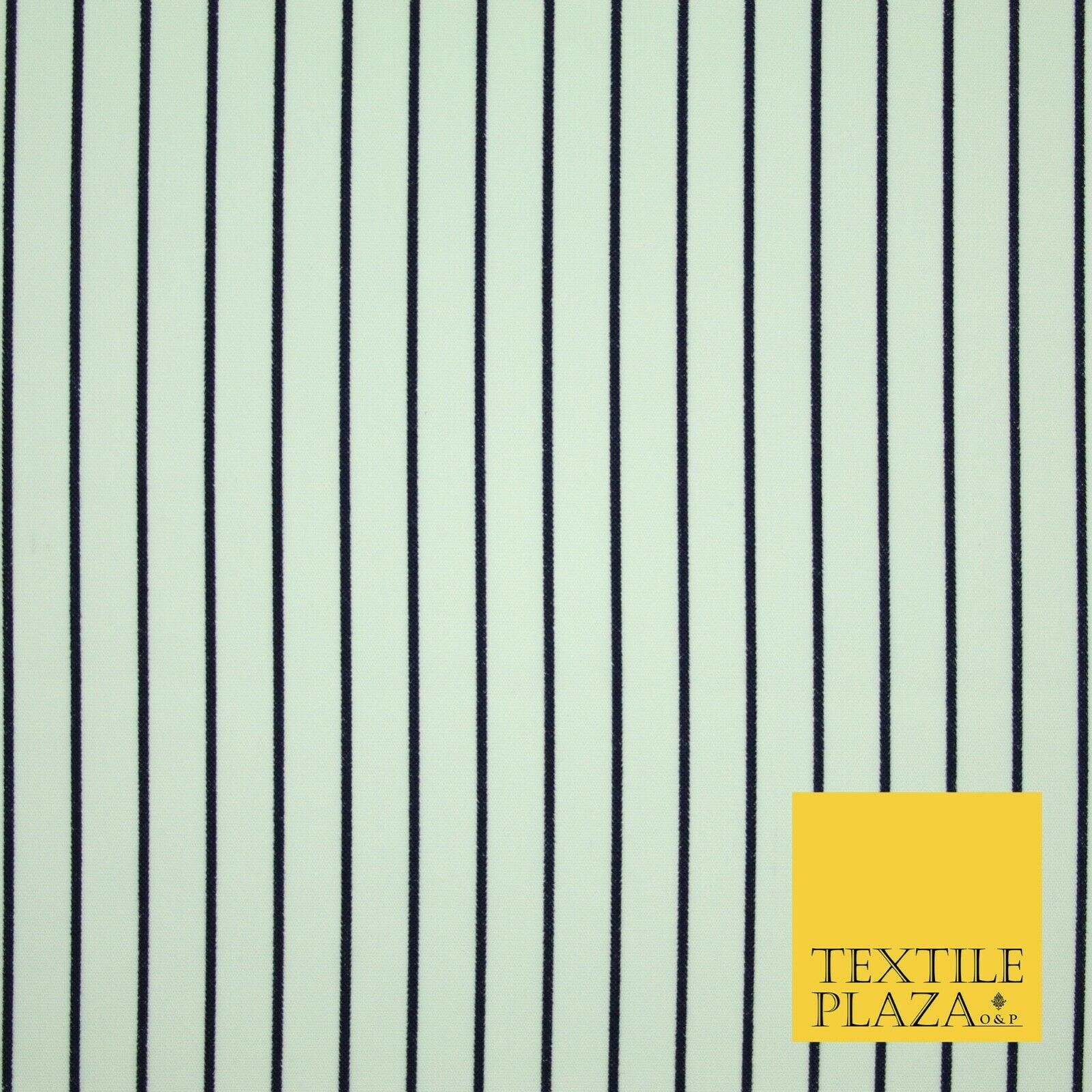 PINSTRIPE BRETON STRIPE Black White Printed Crepe Polyester Dress Fabric 2732