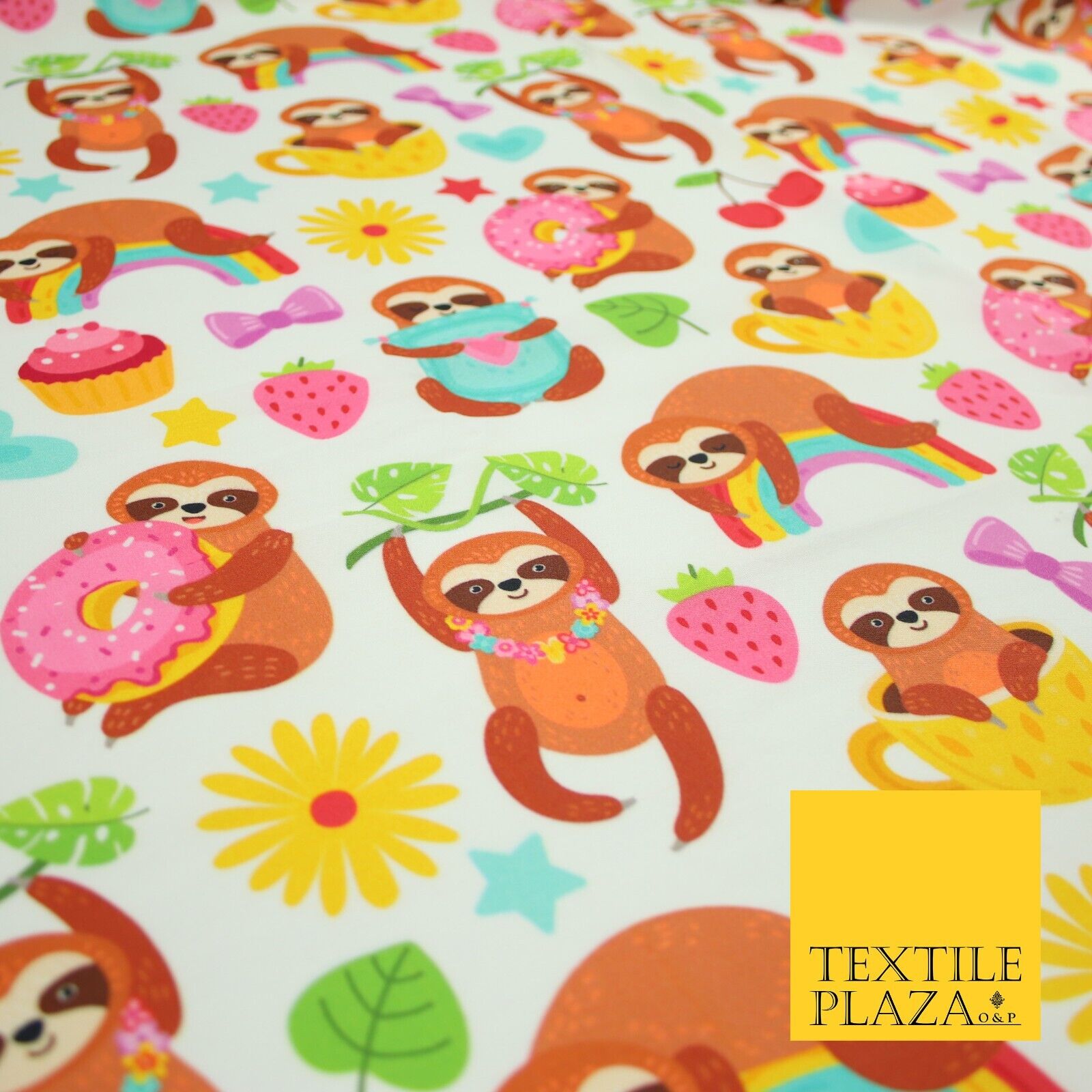 Playful Summer Cheeky Sloth Tea Party Rainbow Printed 100% Cotton Fabric 7341