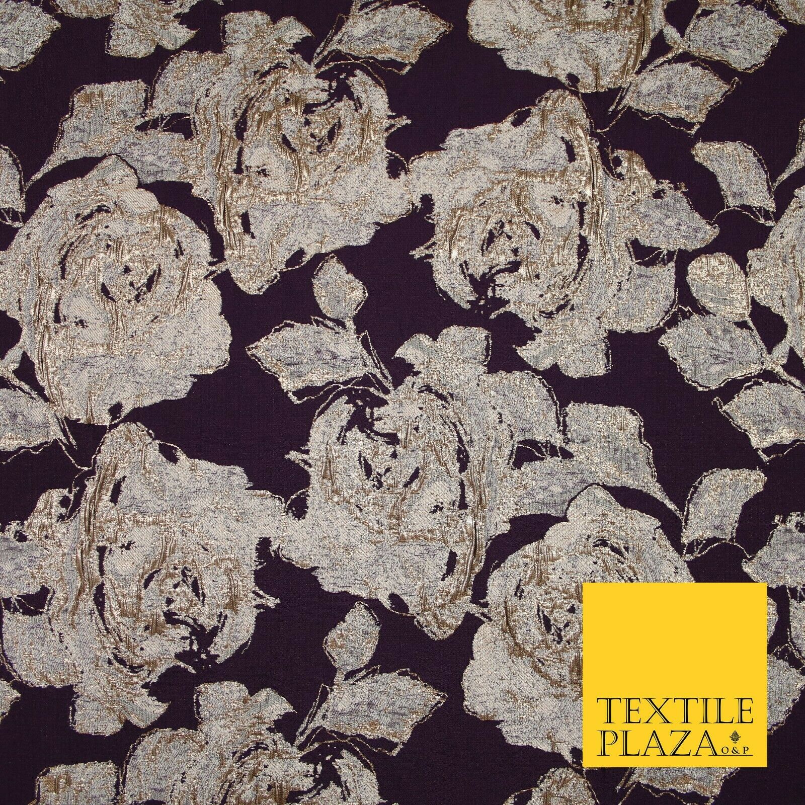 Plum Antique Gold Falling Carnation Floral Metallic Textured Brocade Fabric 7135