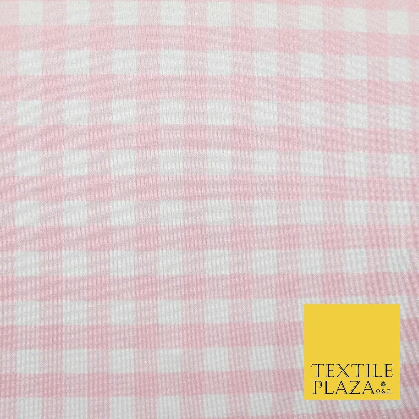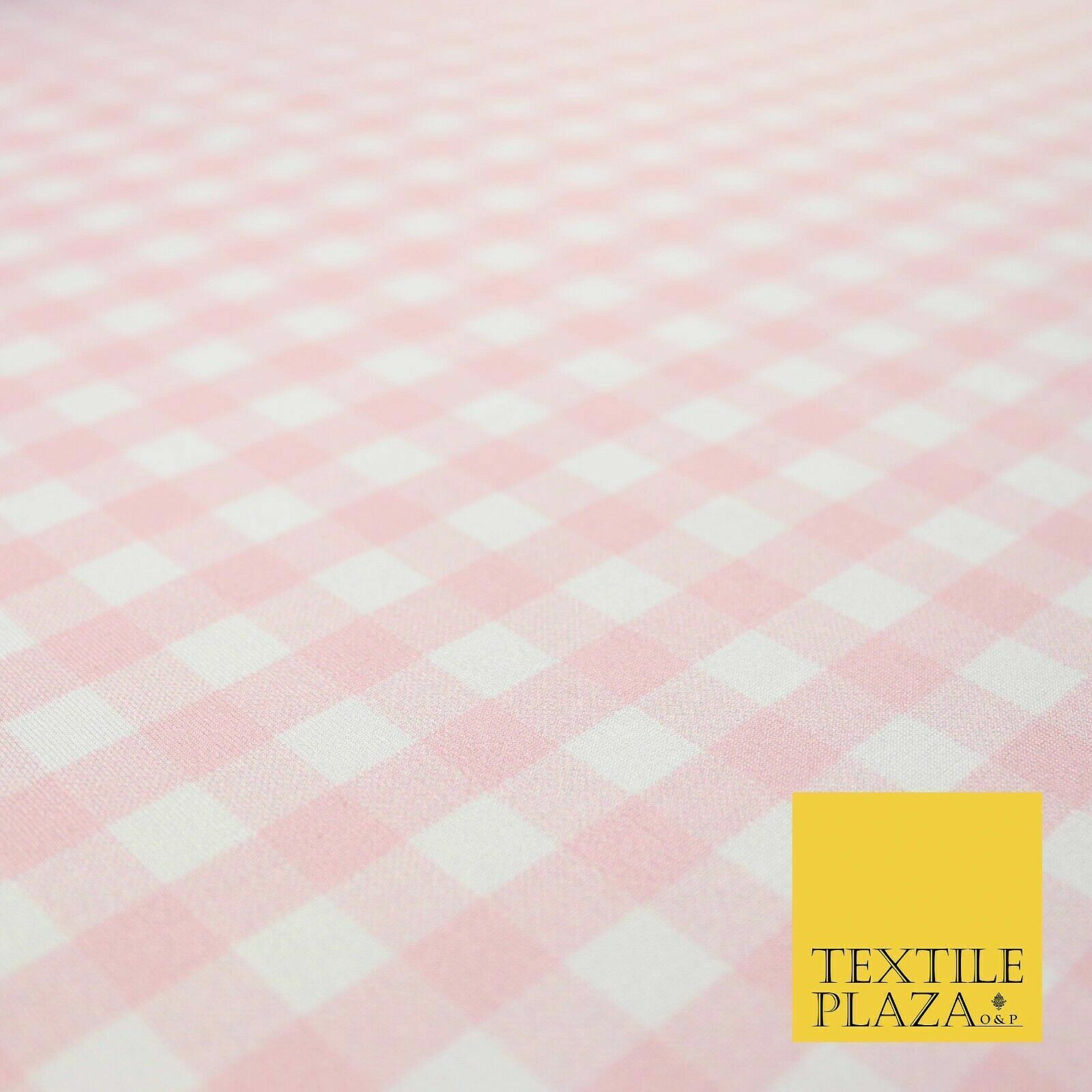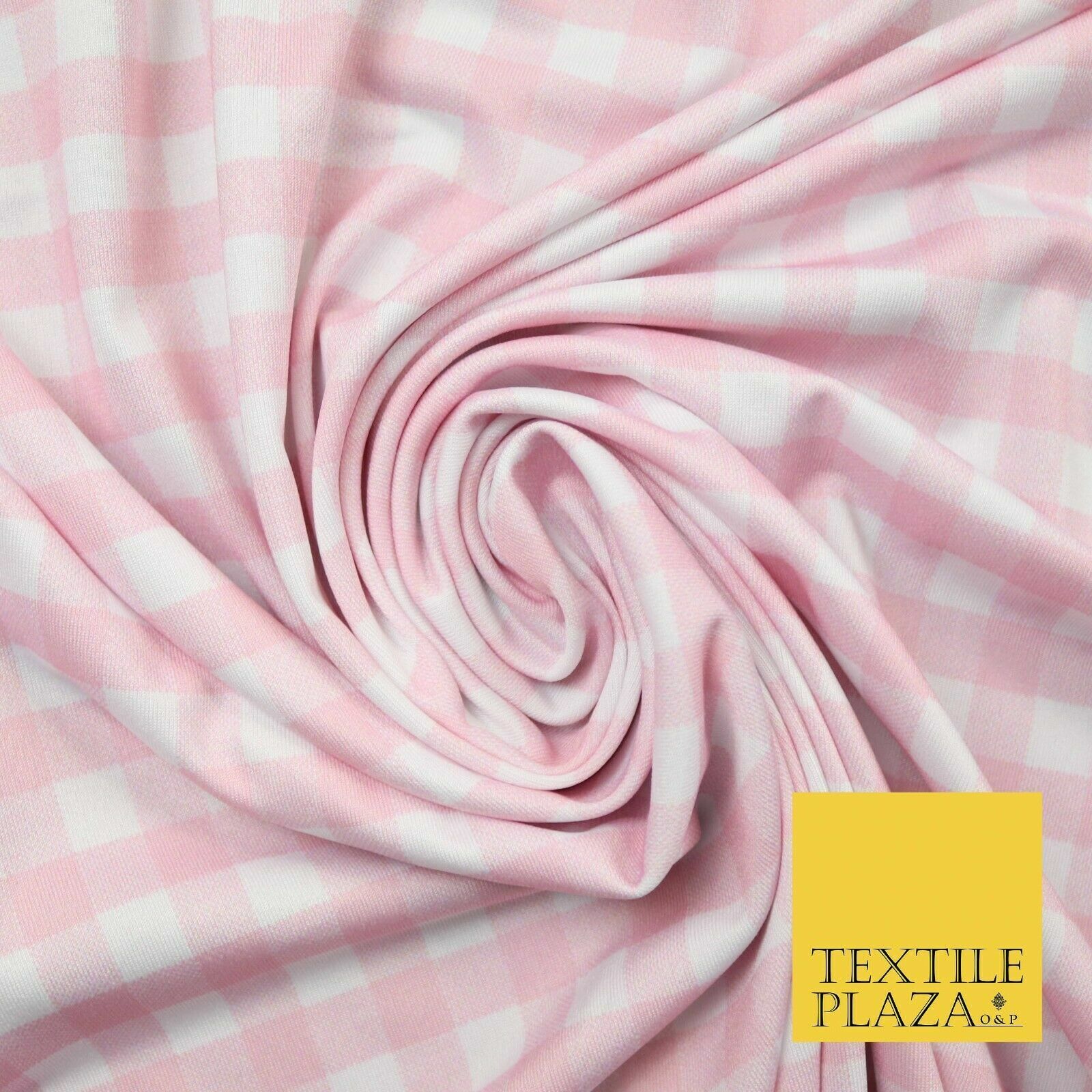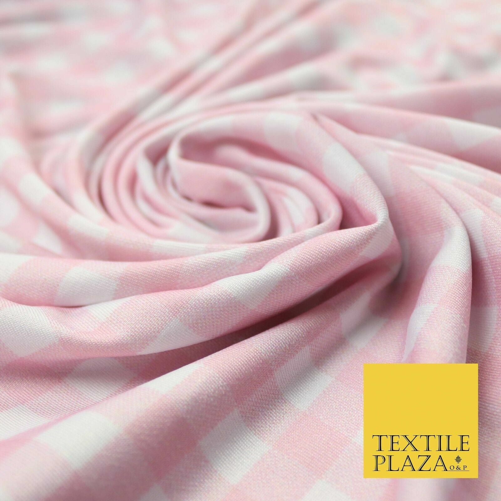 Premium Baby Pink White Gingham Check Printed Scuba Jersey Fabric Craft 57" 4423