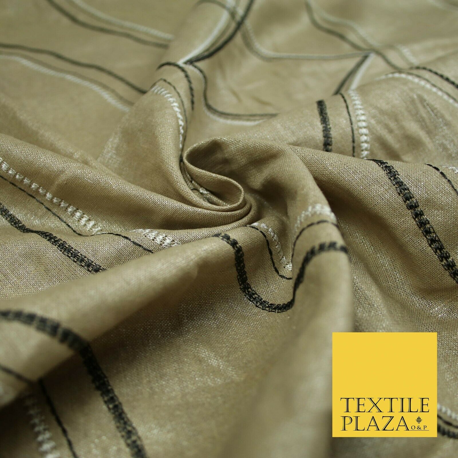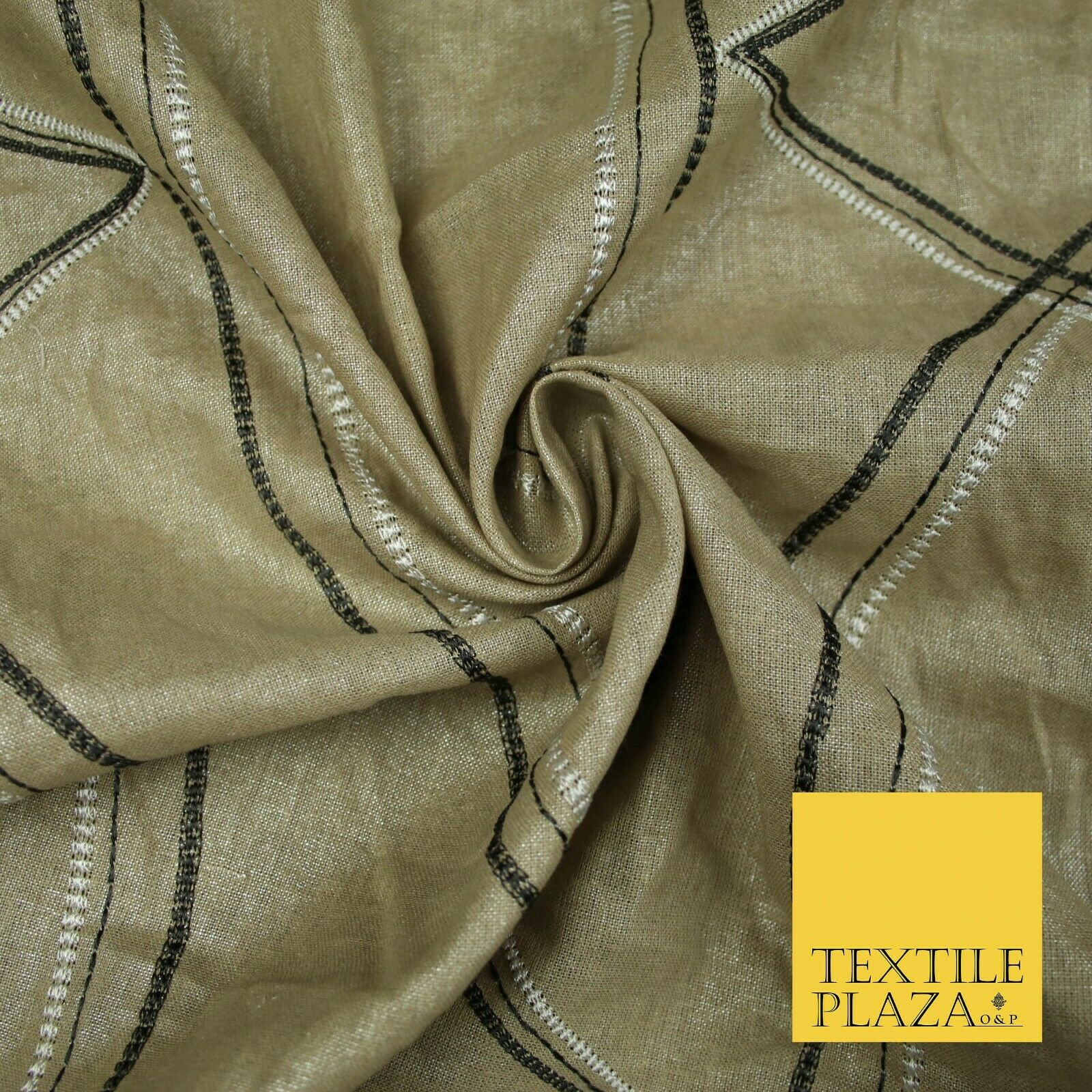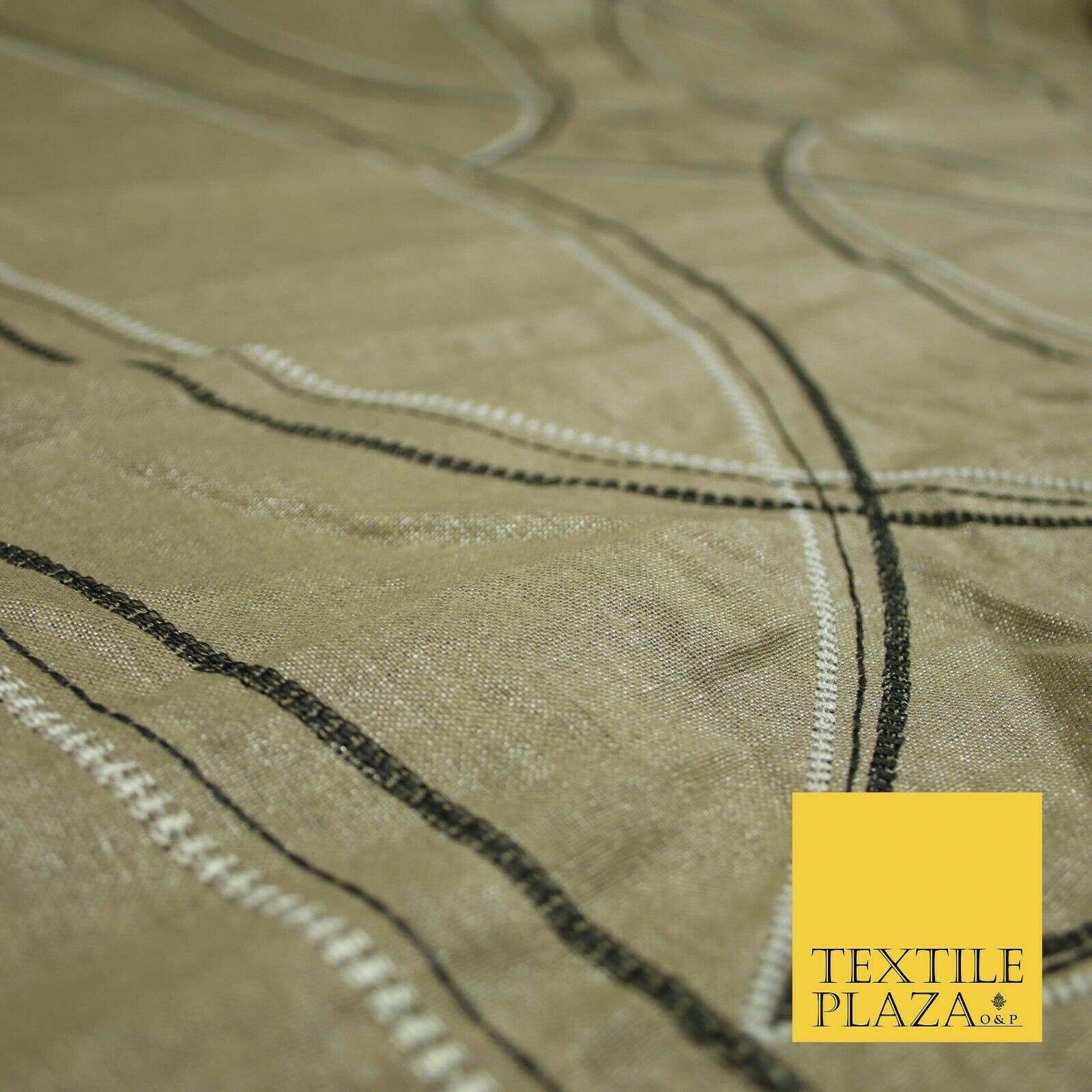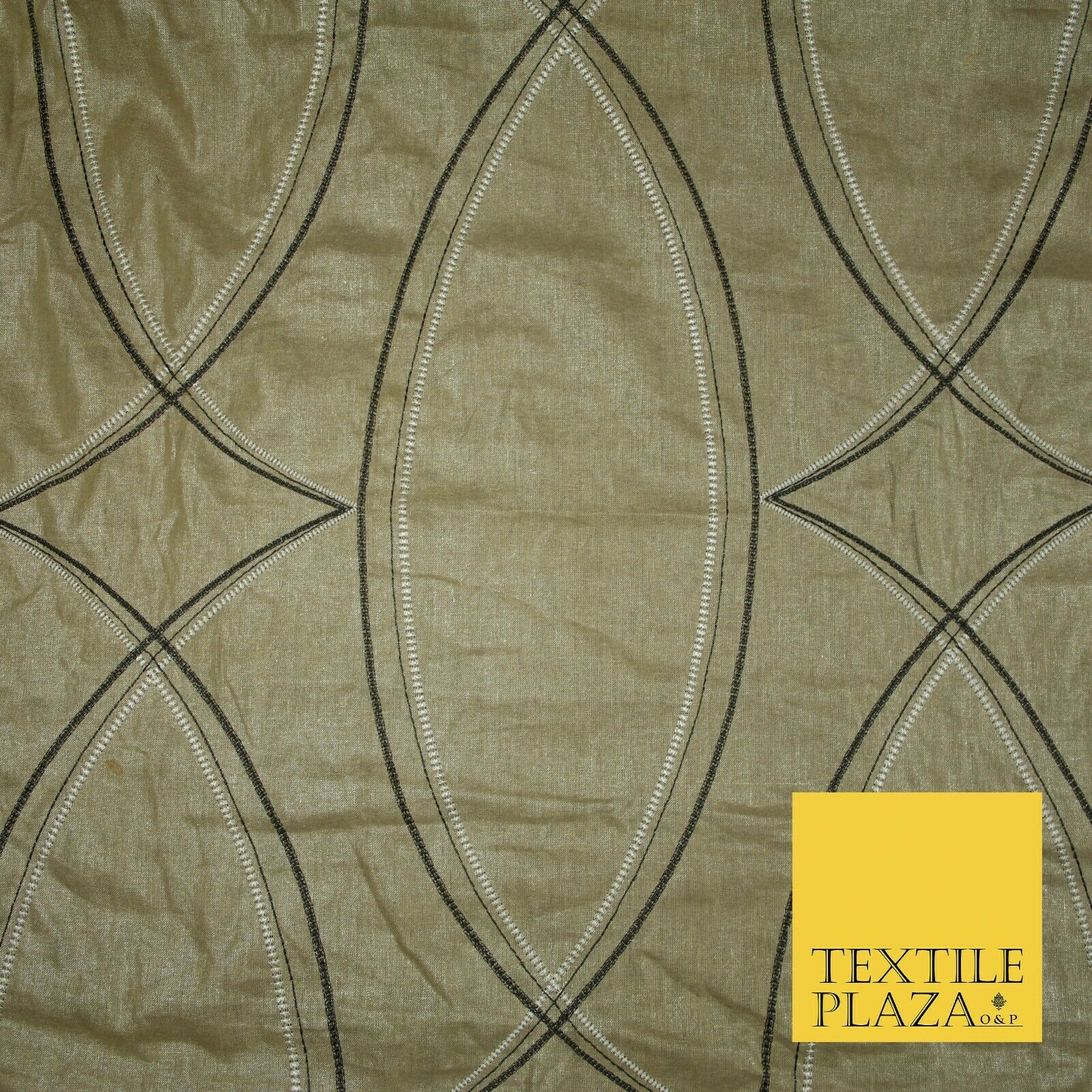 Premium Biscuit Gold Art Deco Embroidered Lurex Linen Upholstery Fabric 53" 4681
