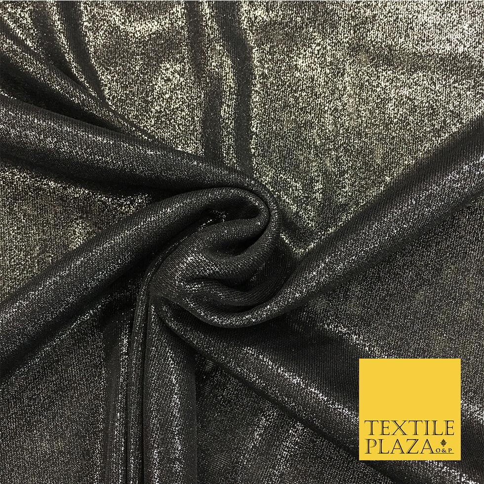 Premium Black Jersey Foil Net Metallic Shimmer Glitter Dancewear Fabric 2314