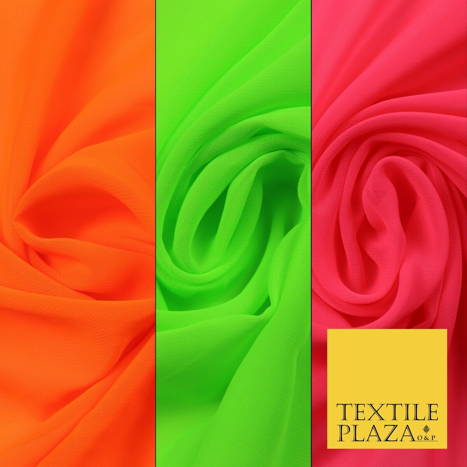 Premium Bright Fluorescent Coloured Plain Chiffon Dress Fabric 58" 3 COLOURS