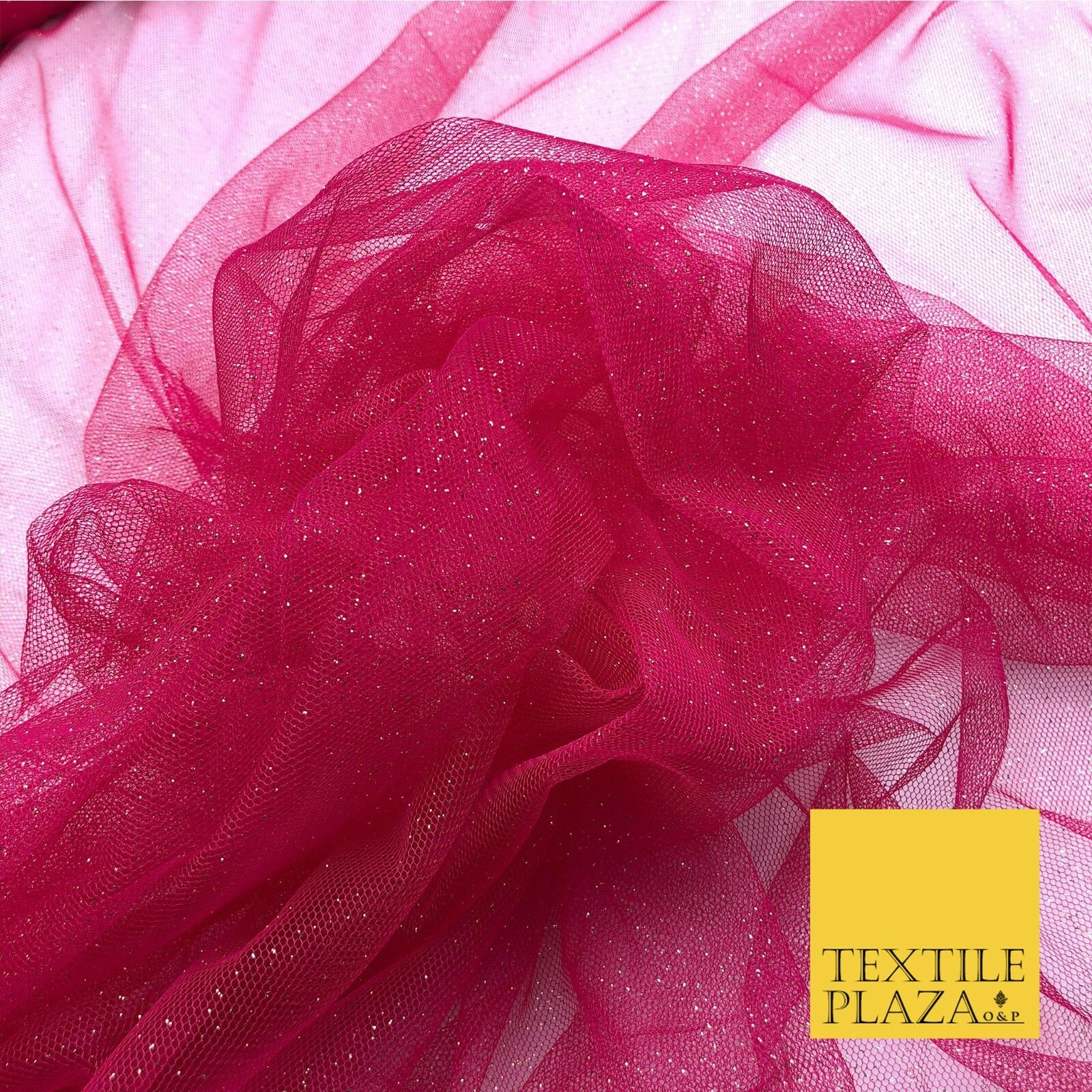 Premium CERISE PINK GLITTER MESH NET Tutu Sparkle Fairy Sheer Craft Dress QF765