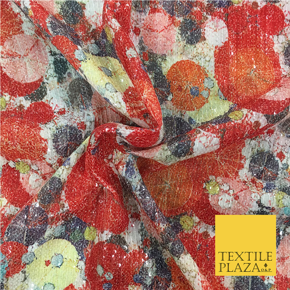 PREMIUM Digital Print Art Colour Splash All Over Sequin Fabric - Party Dress-44"