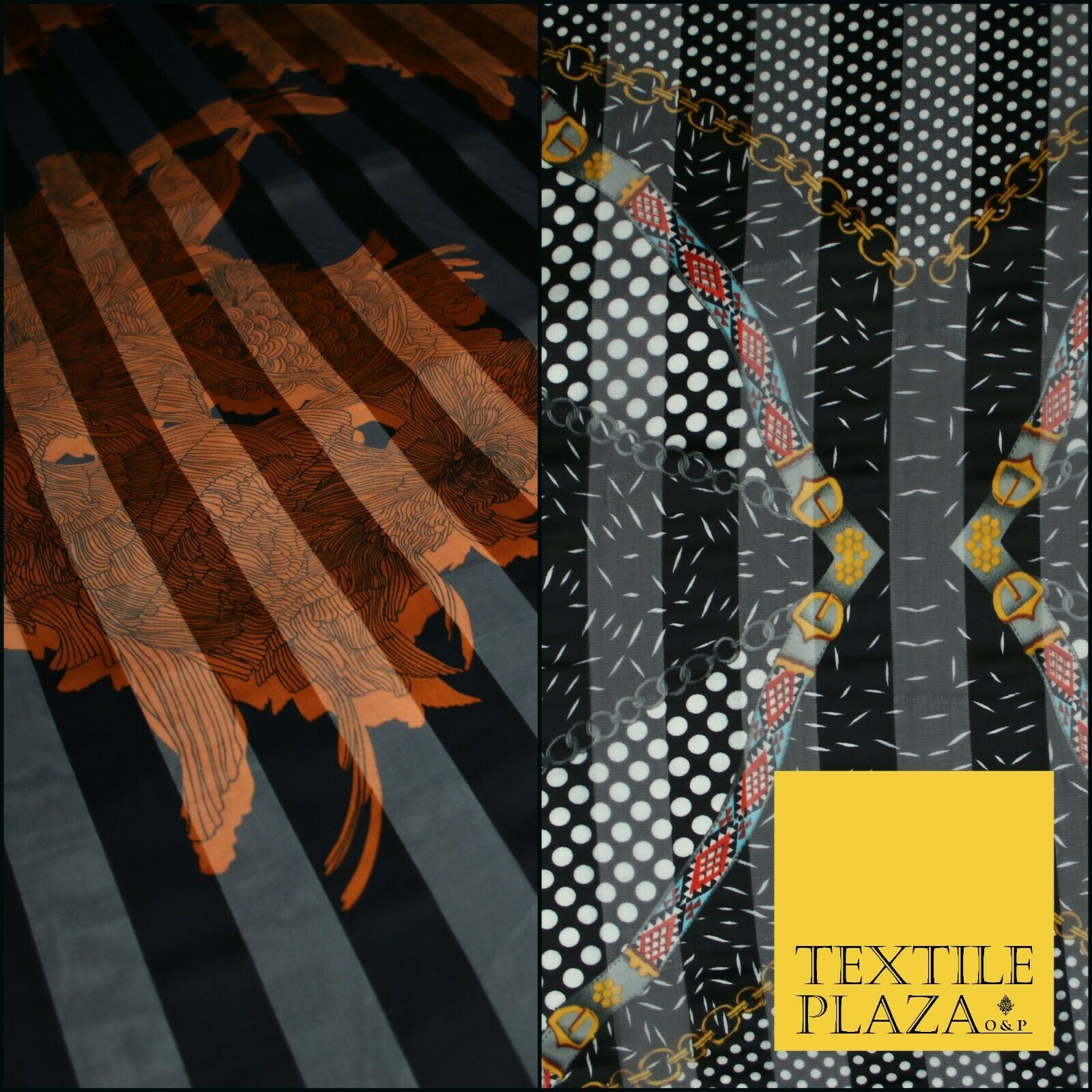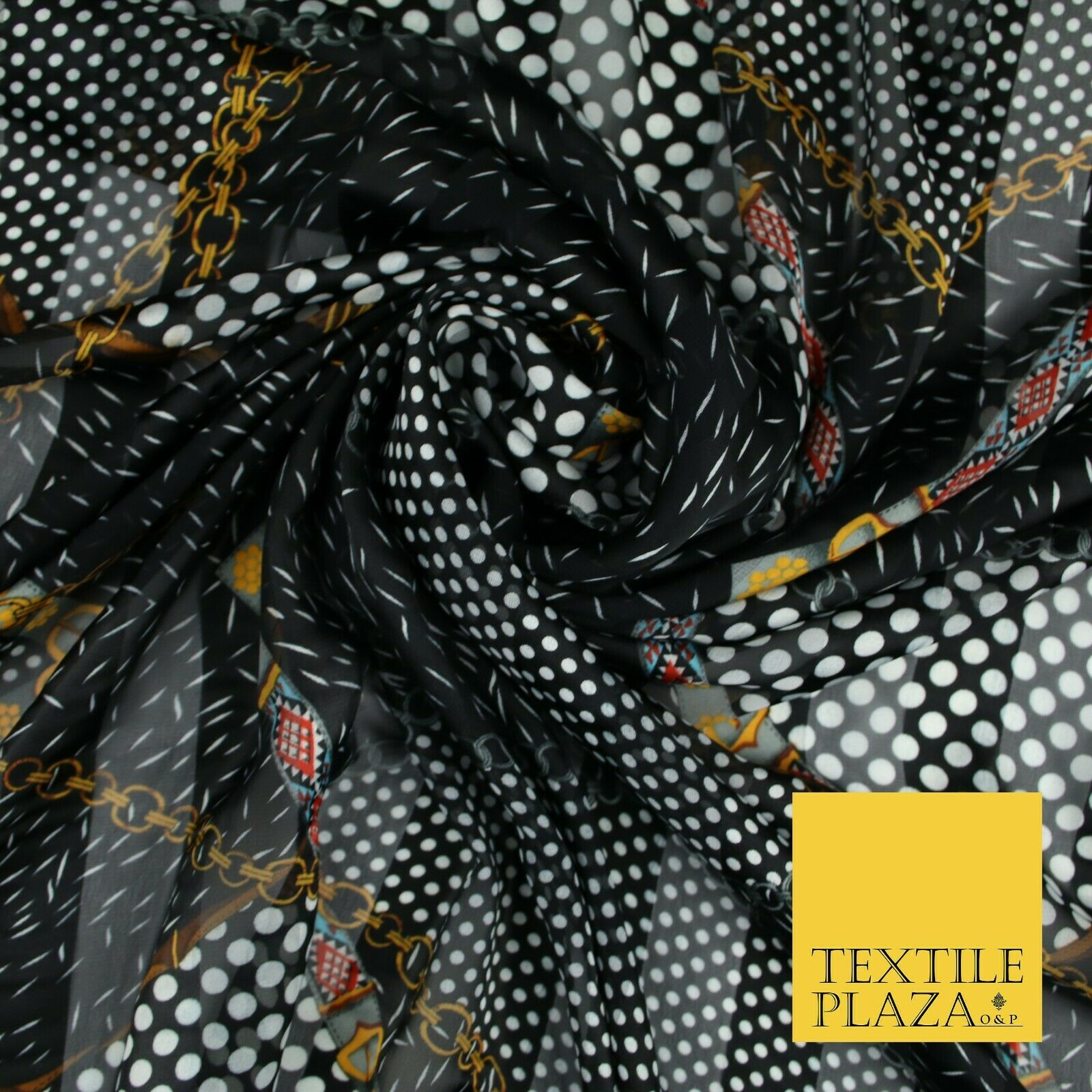 Premium Floral Chain Belt Spotted Stripe Satin Printed Georgette Dress Fabric