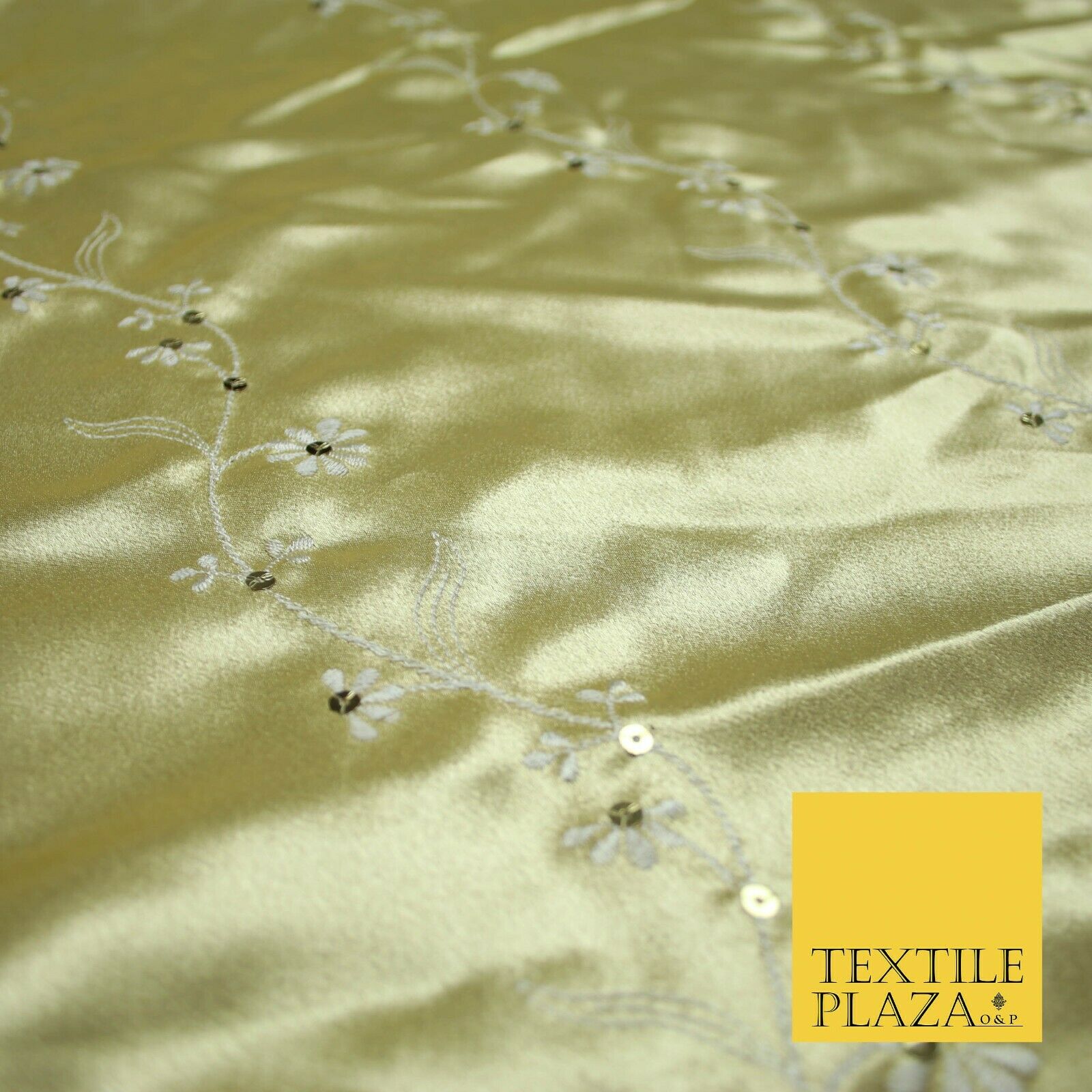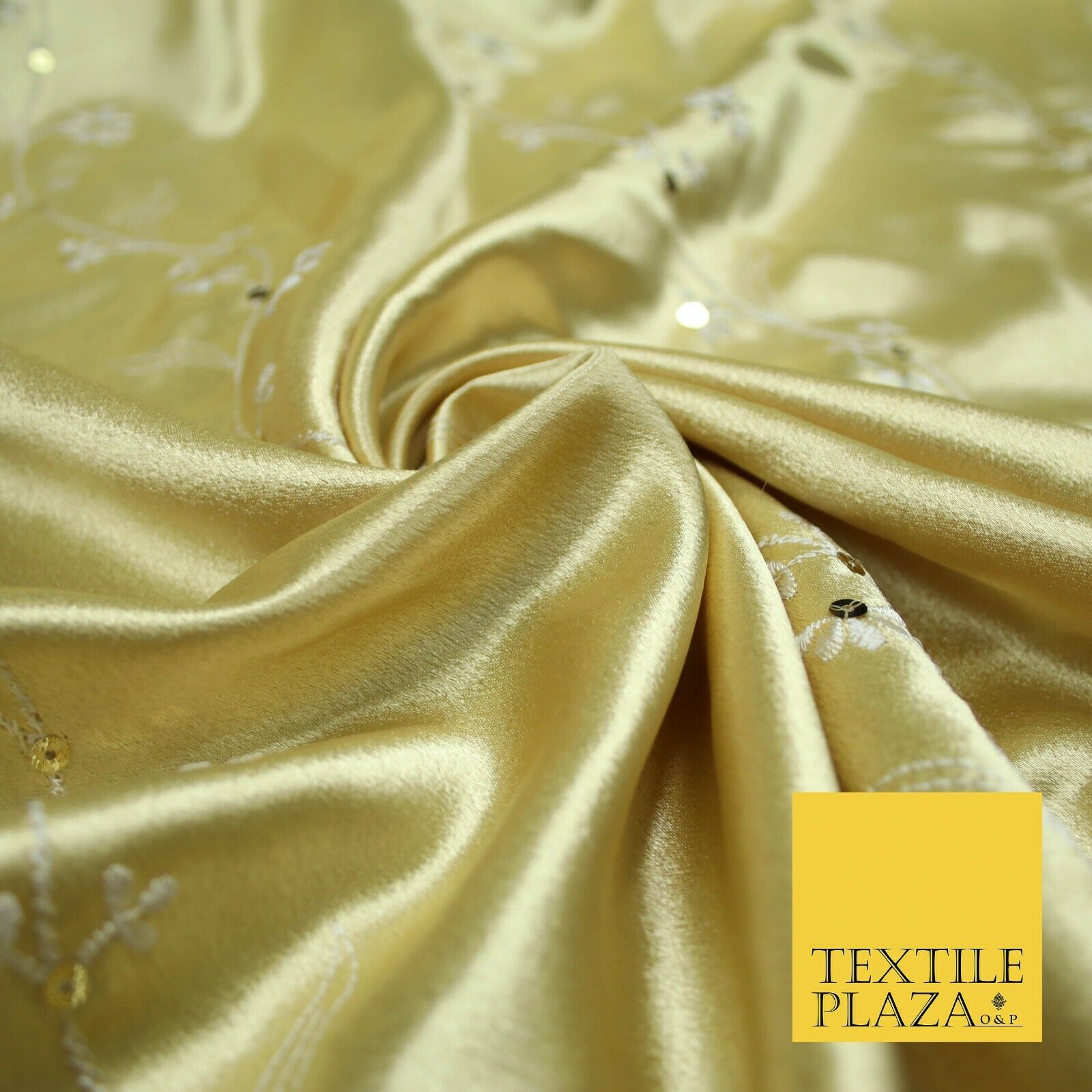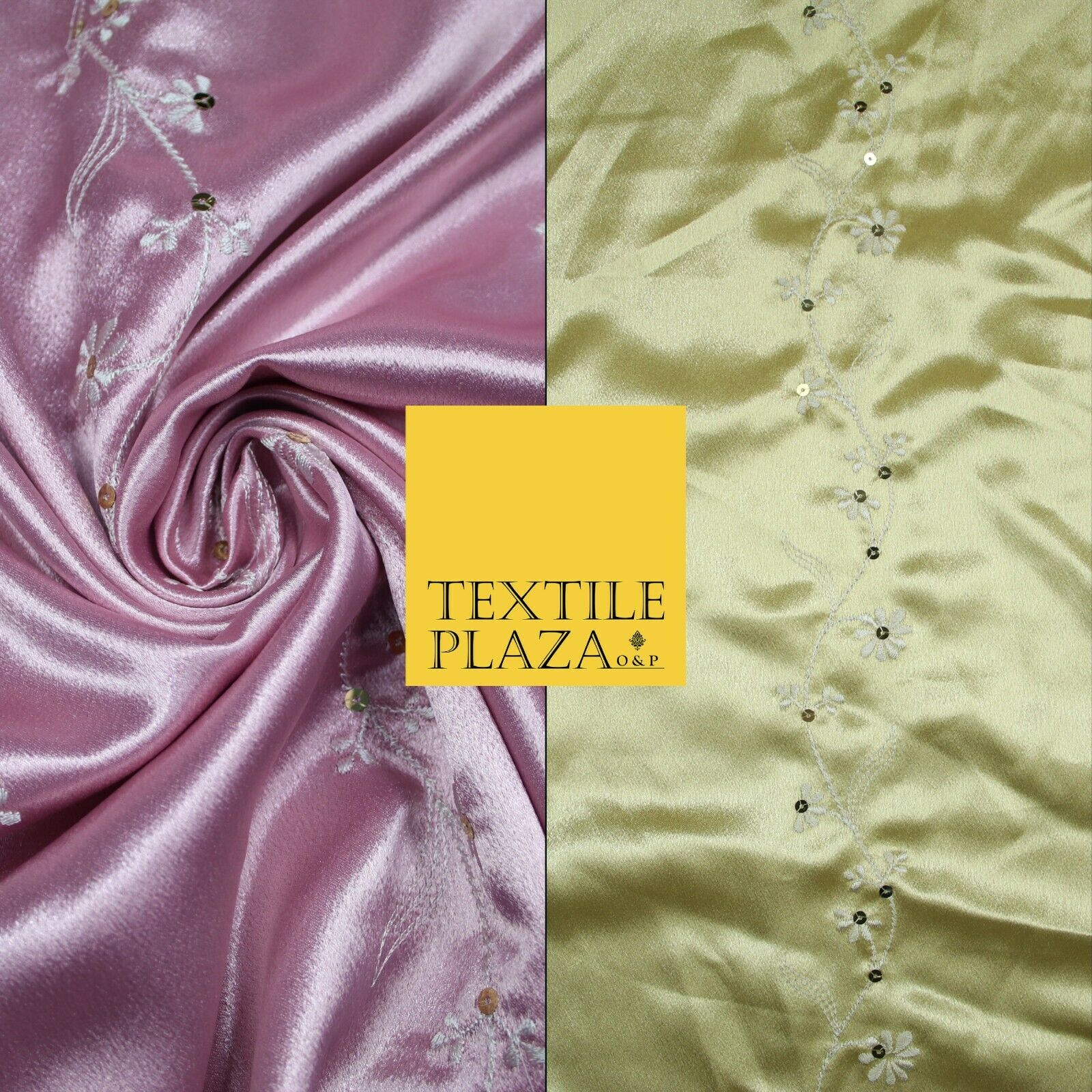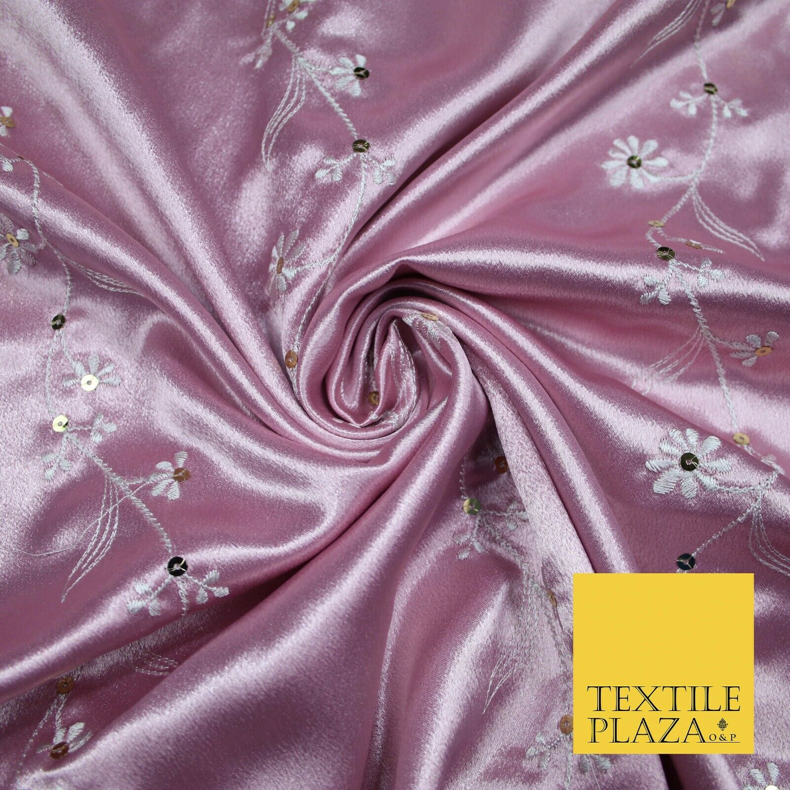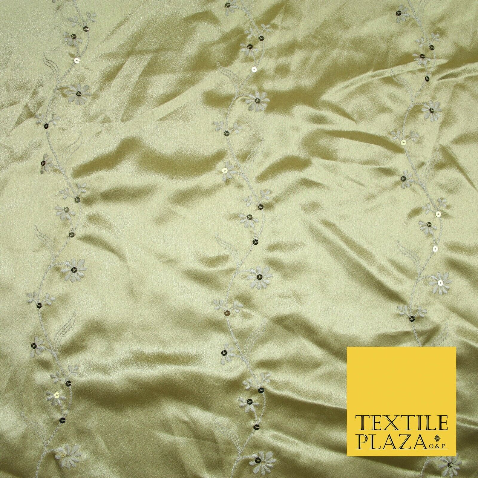 Premium Gold Pink Ivory Floral Striped Embroidered Crepe Back Satin Dress Fabric