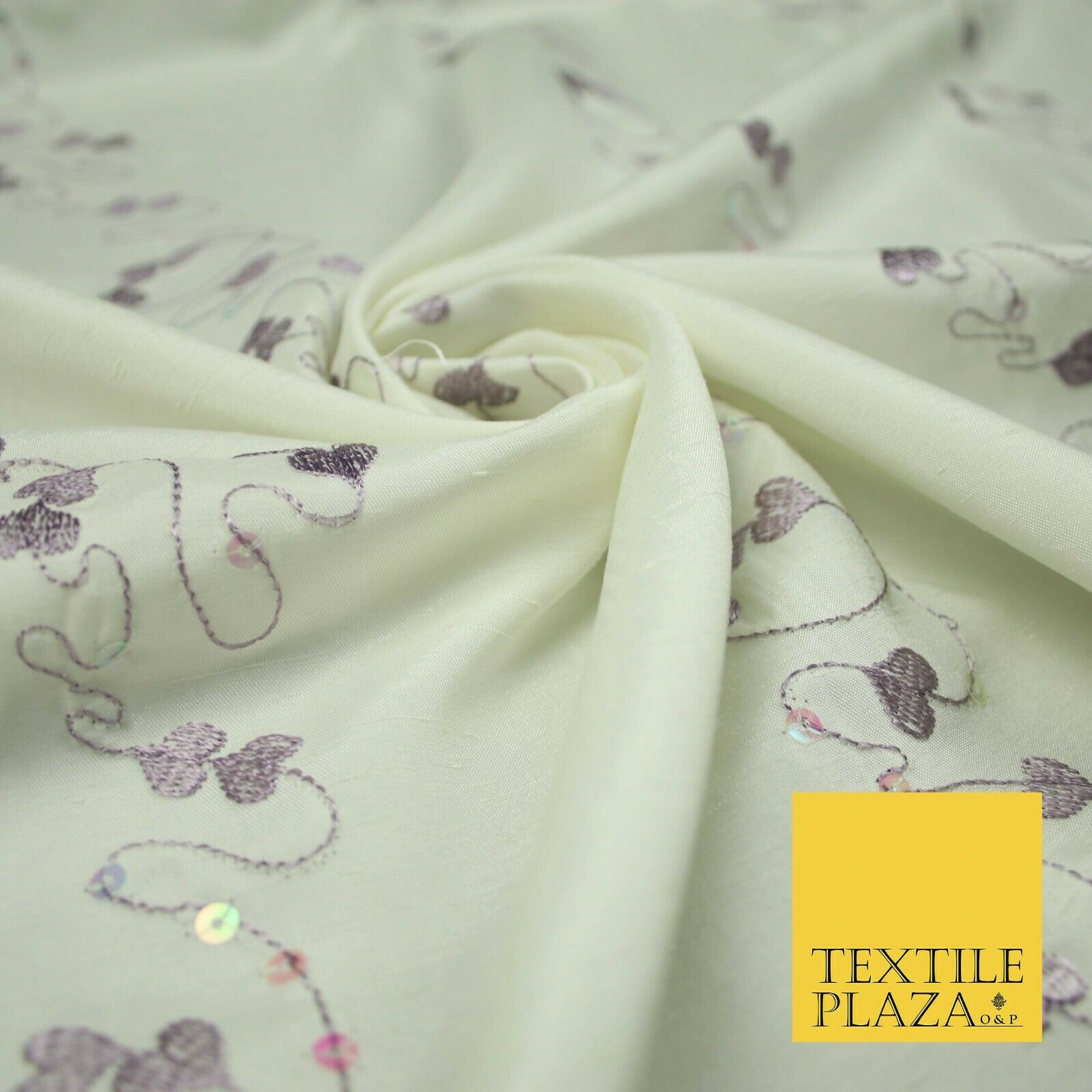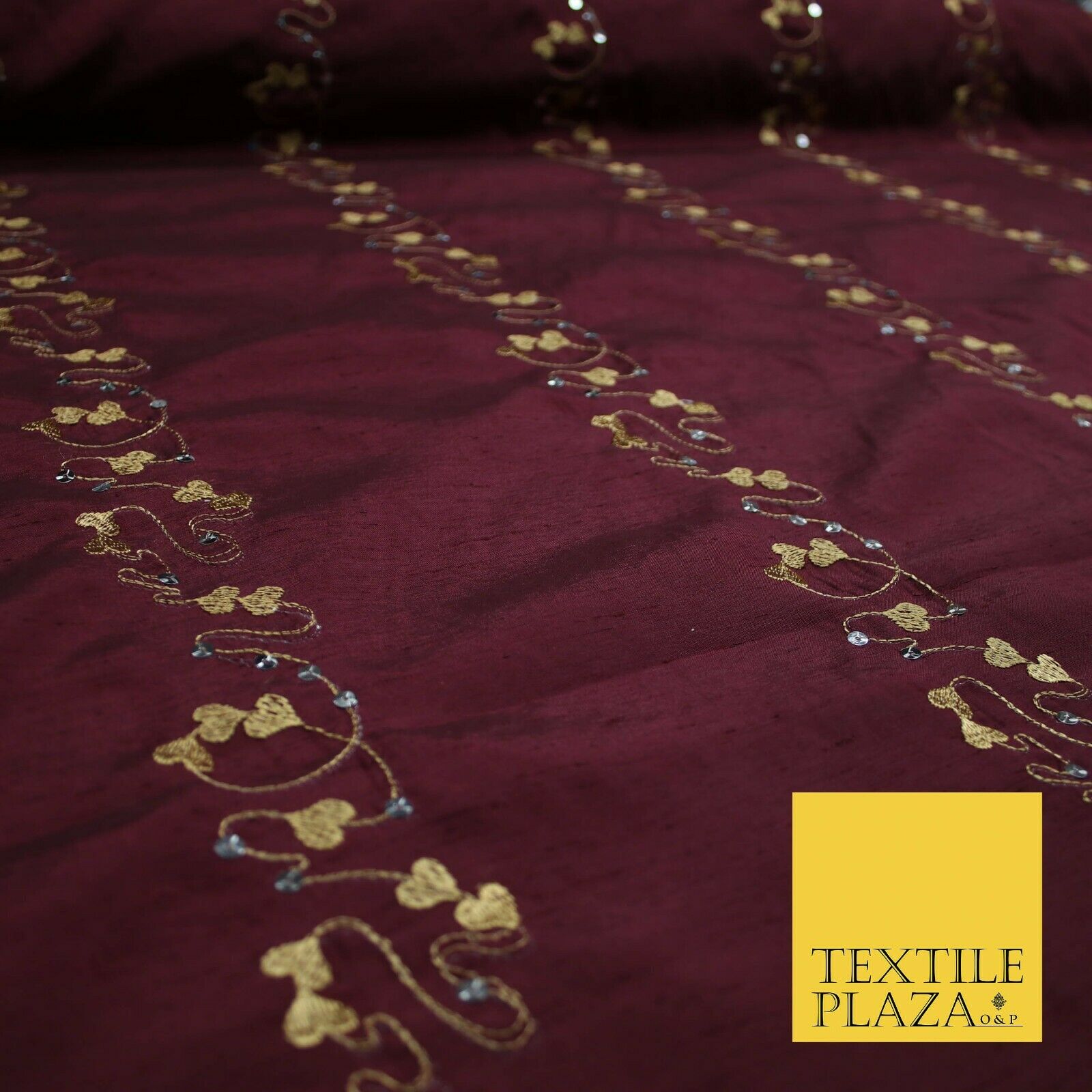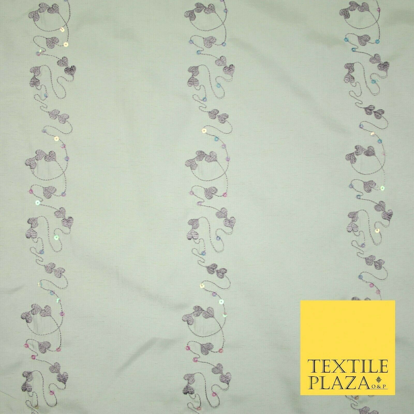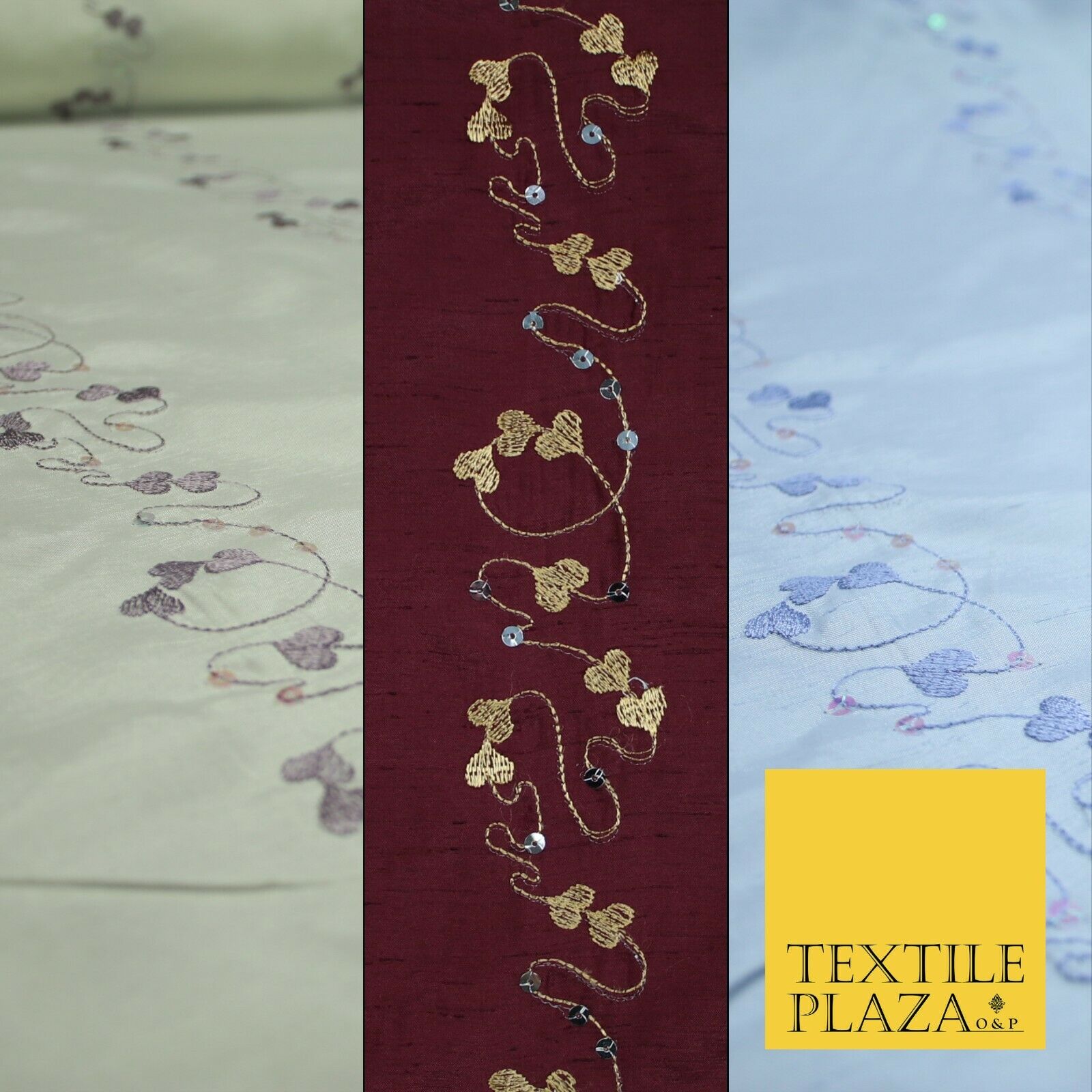 Premium Heart Strings Sequin Striped Embroidered Shantung Raw Silk Dress Fabric