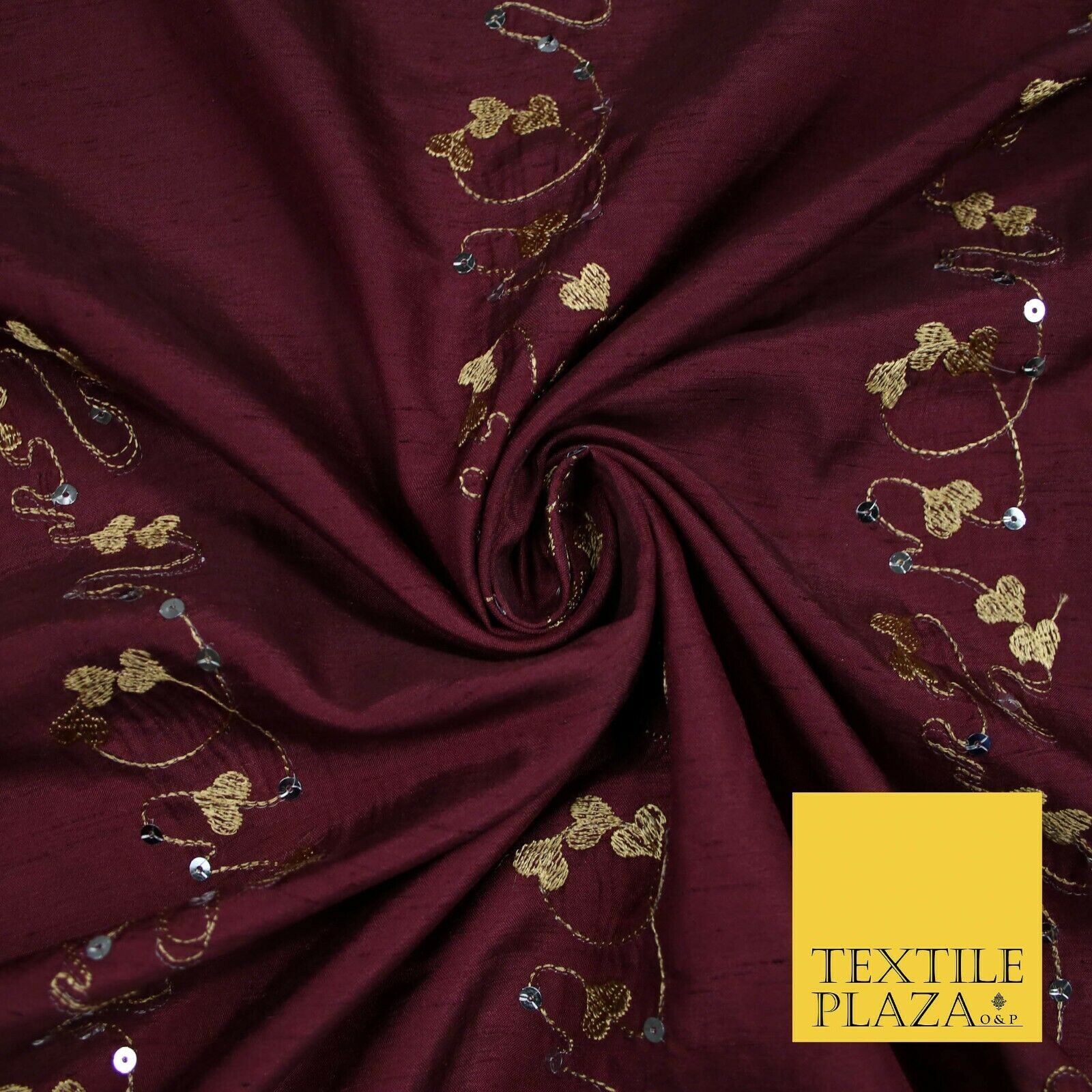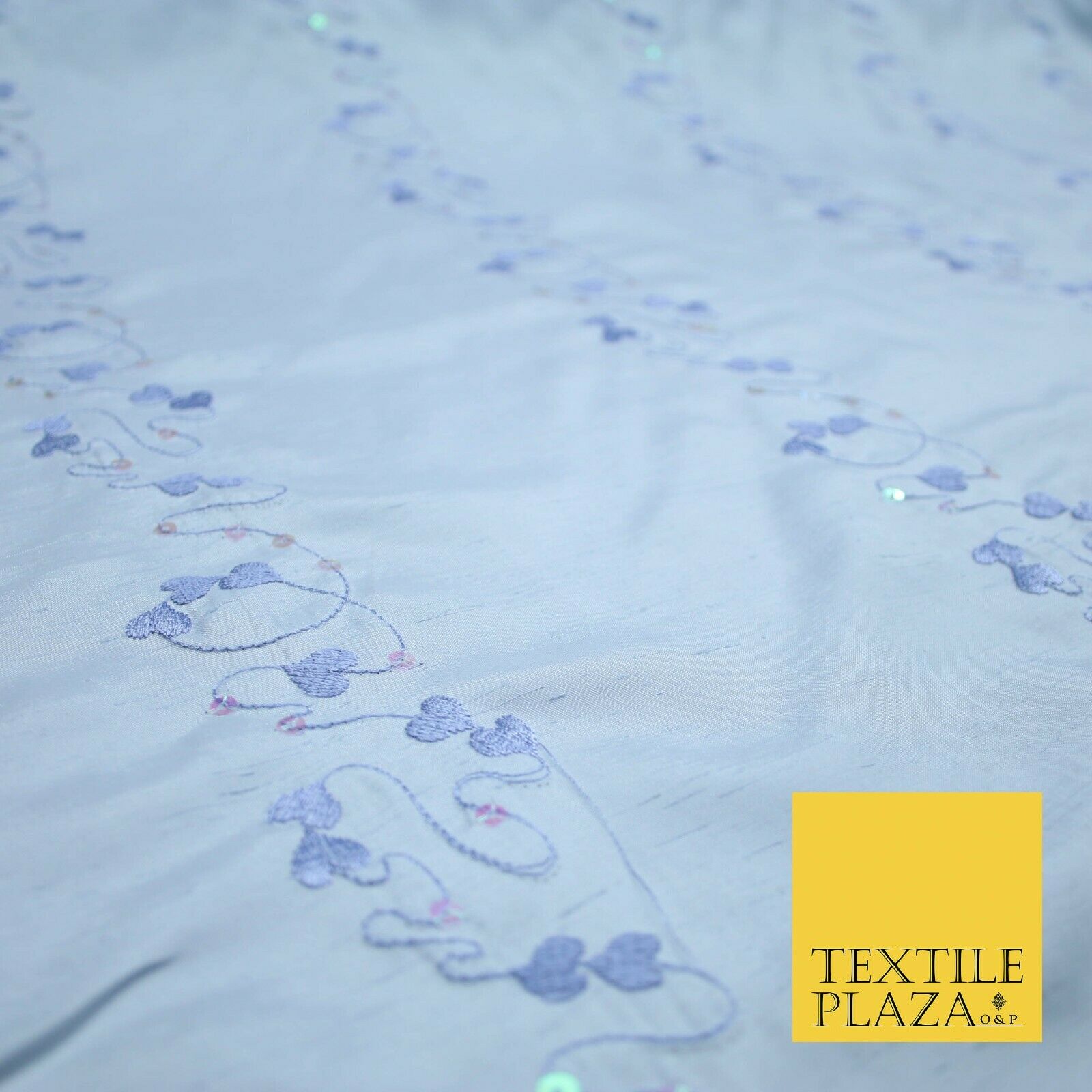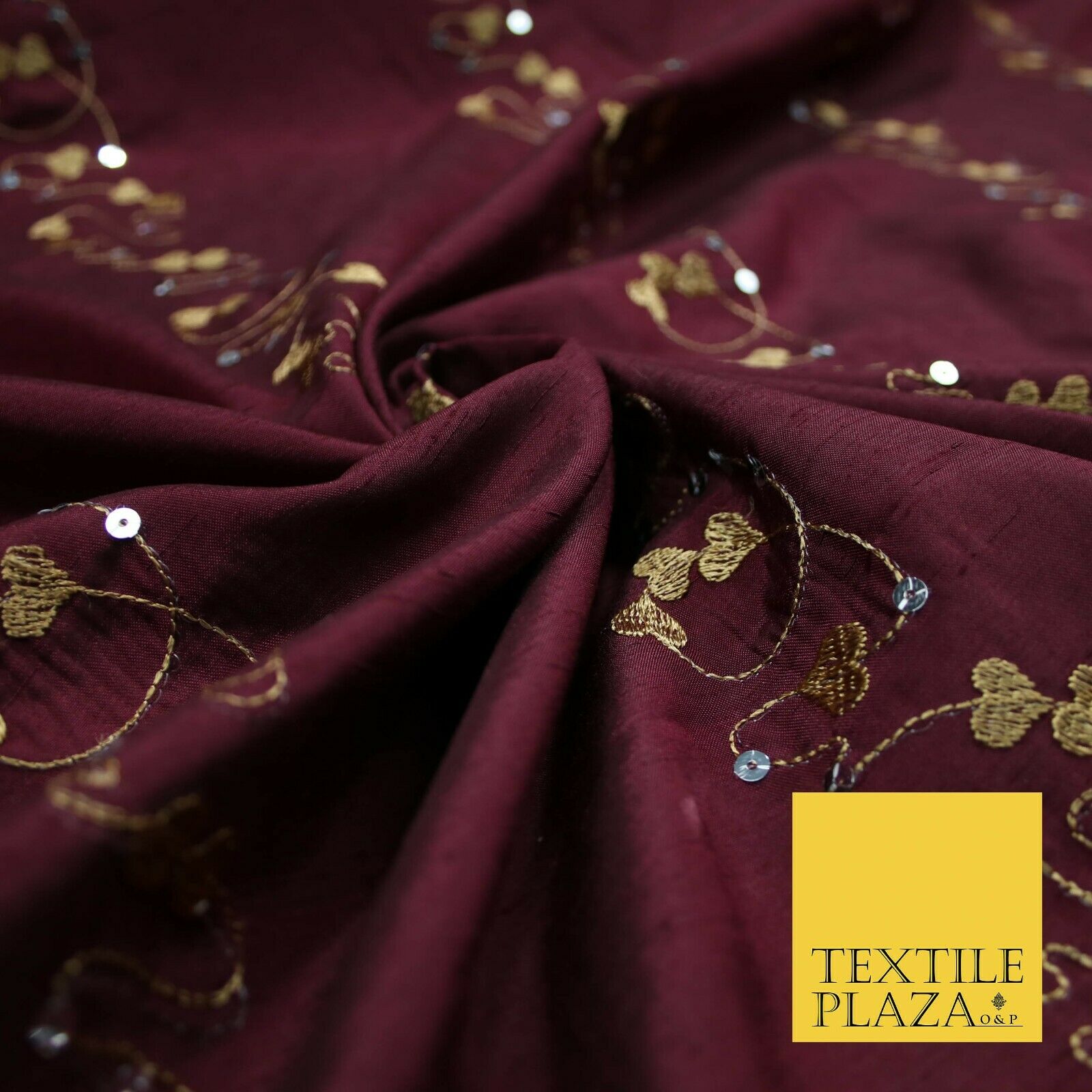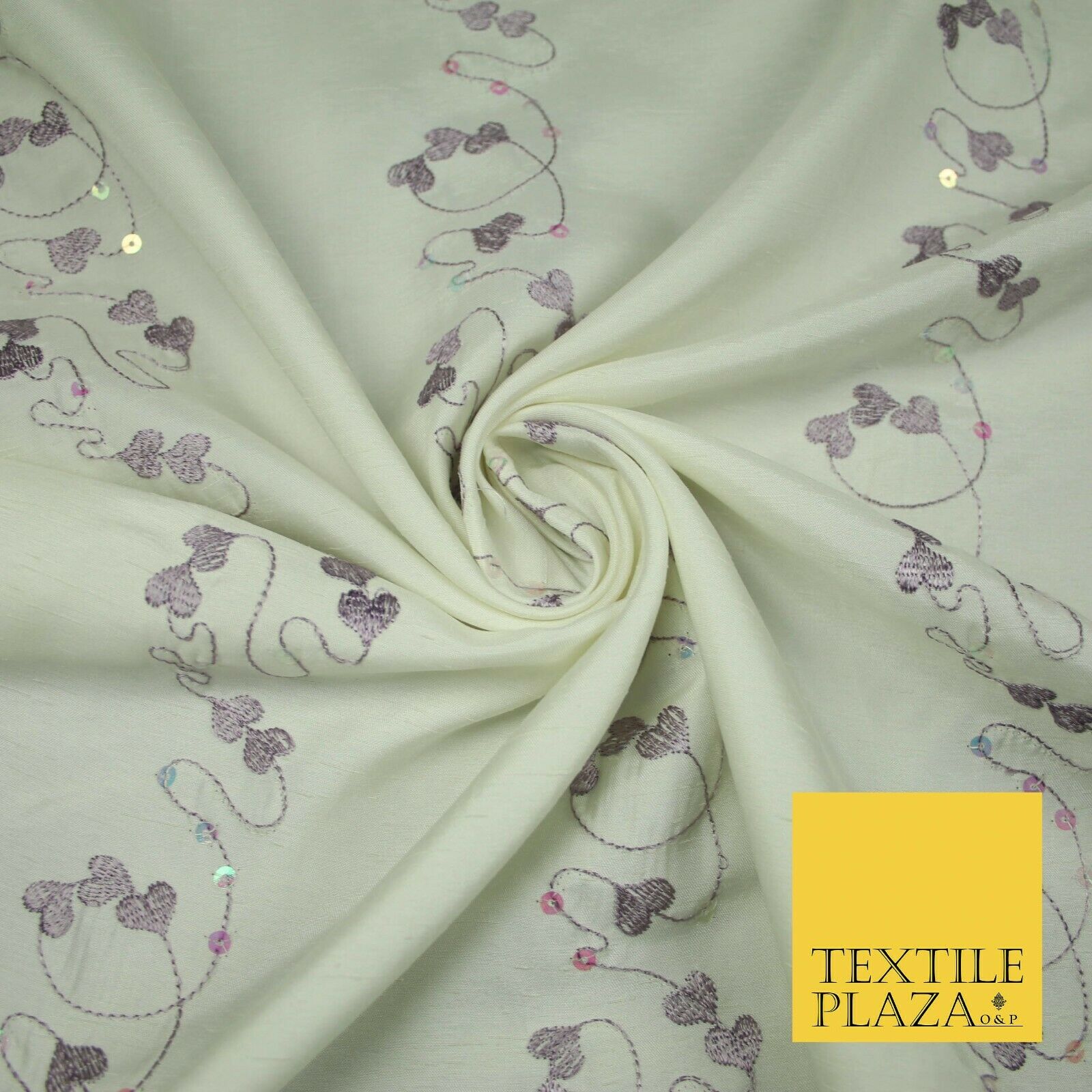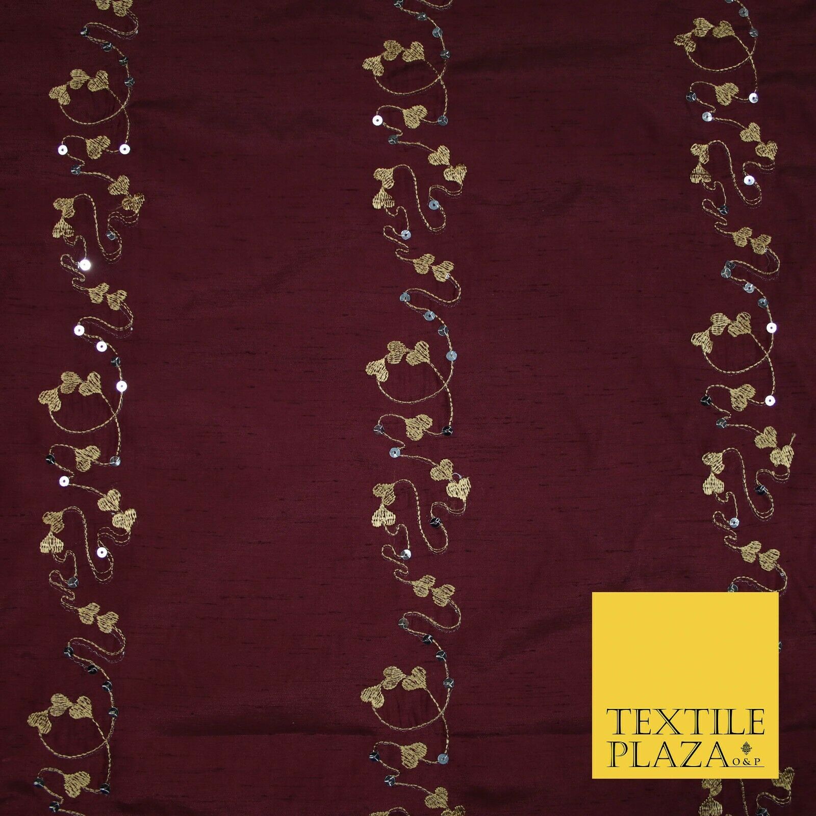Premium Heart Strings Sequin Striped Embroidered Shantung Raw Silk Dress Fabric