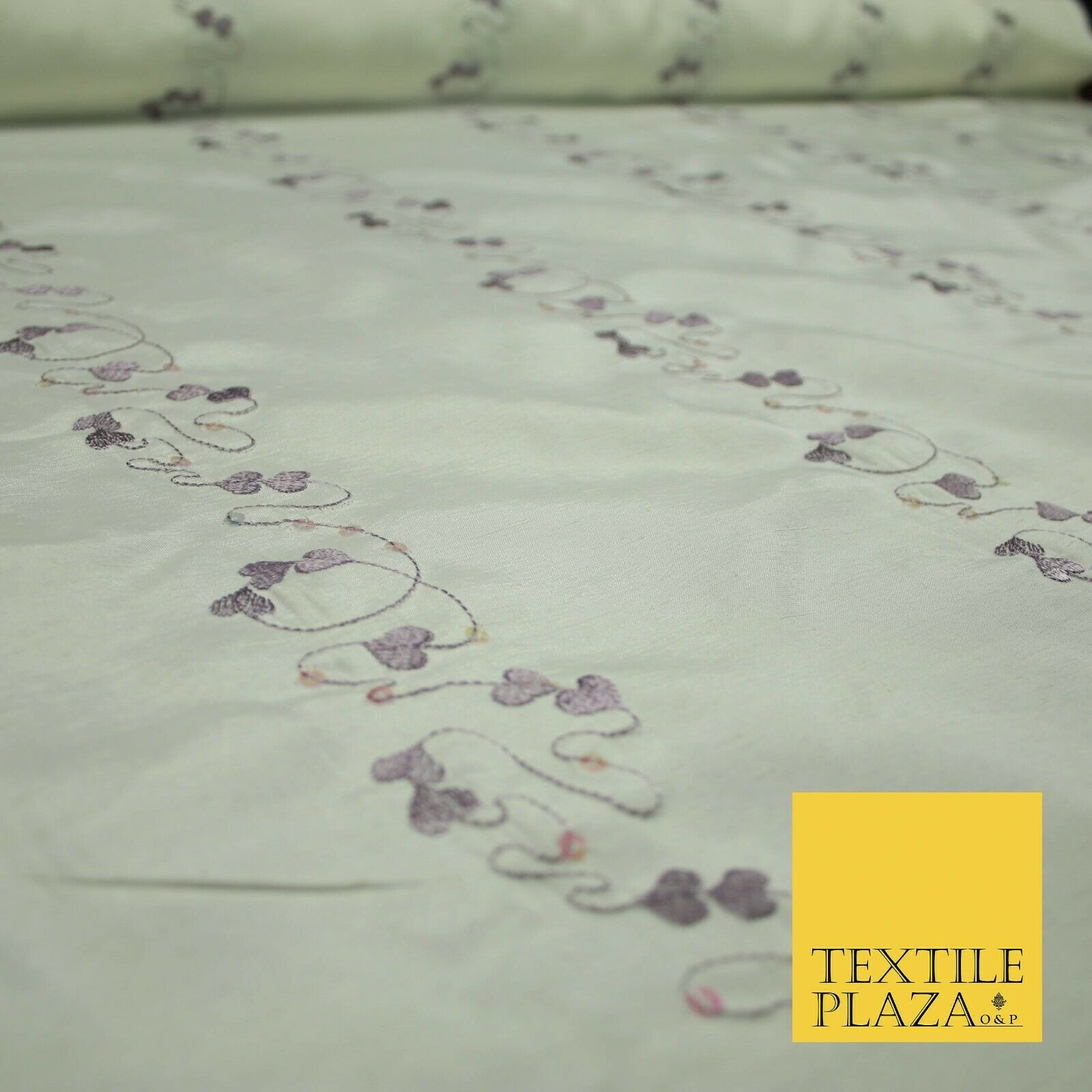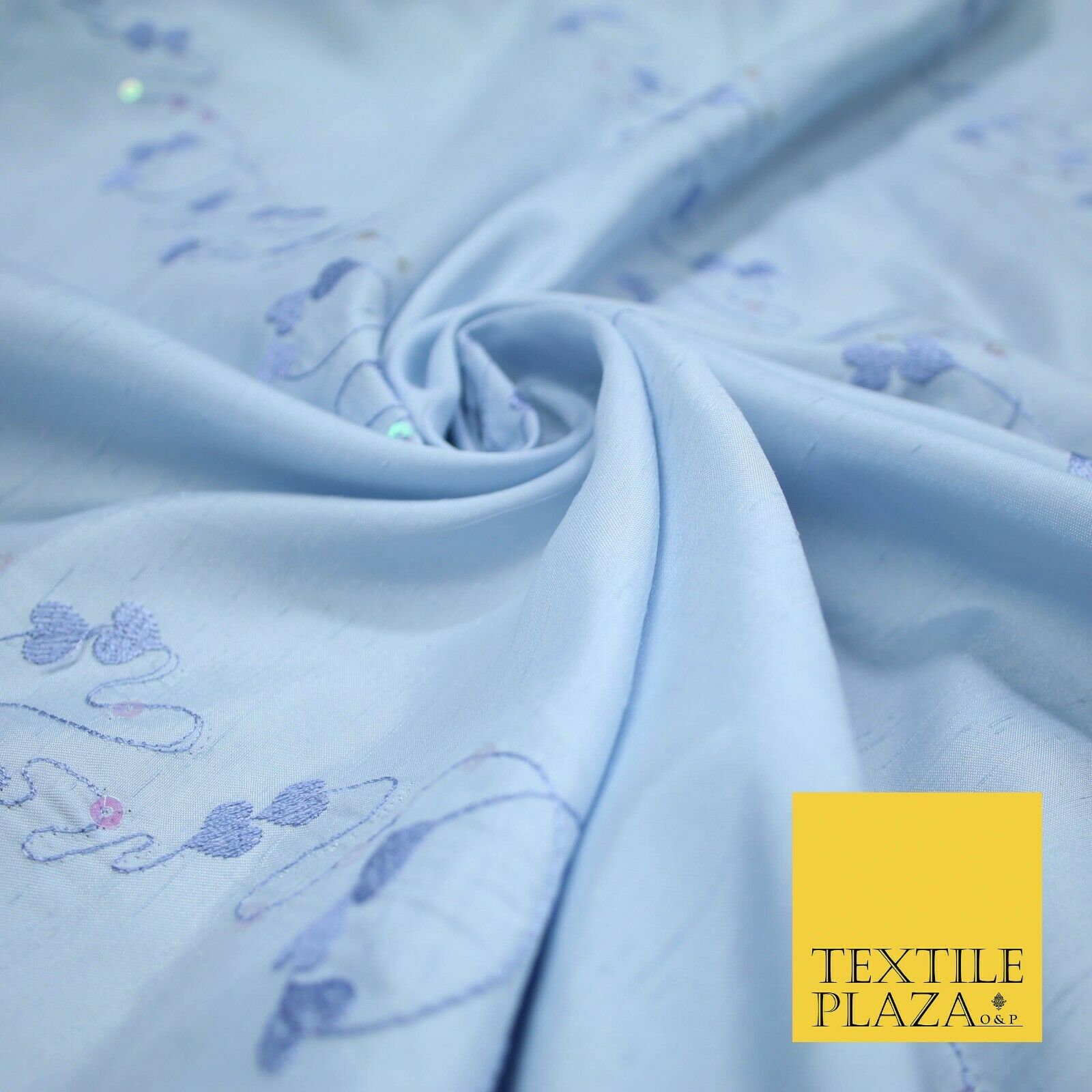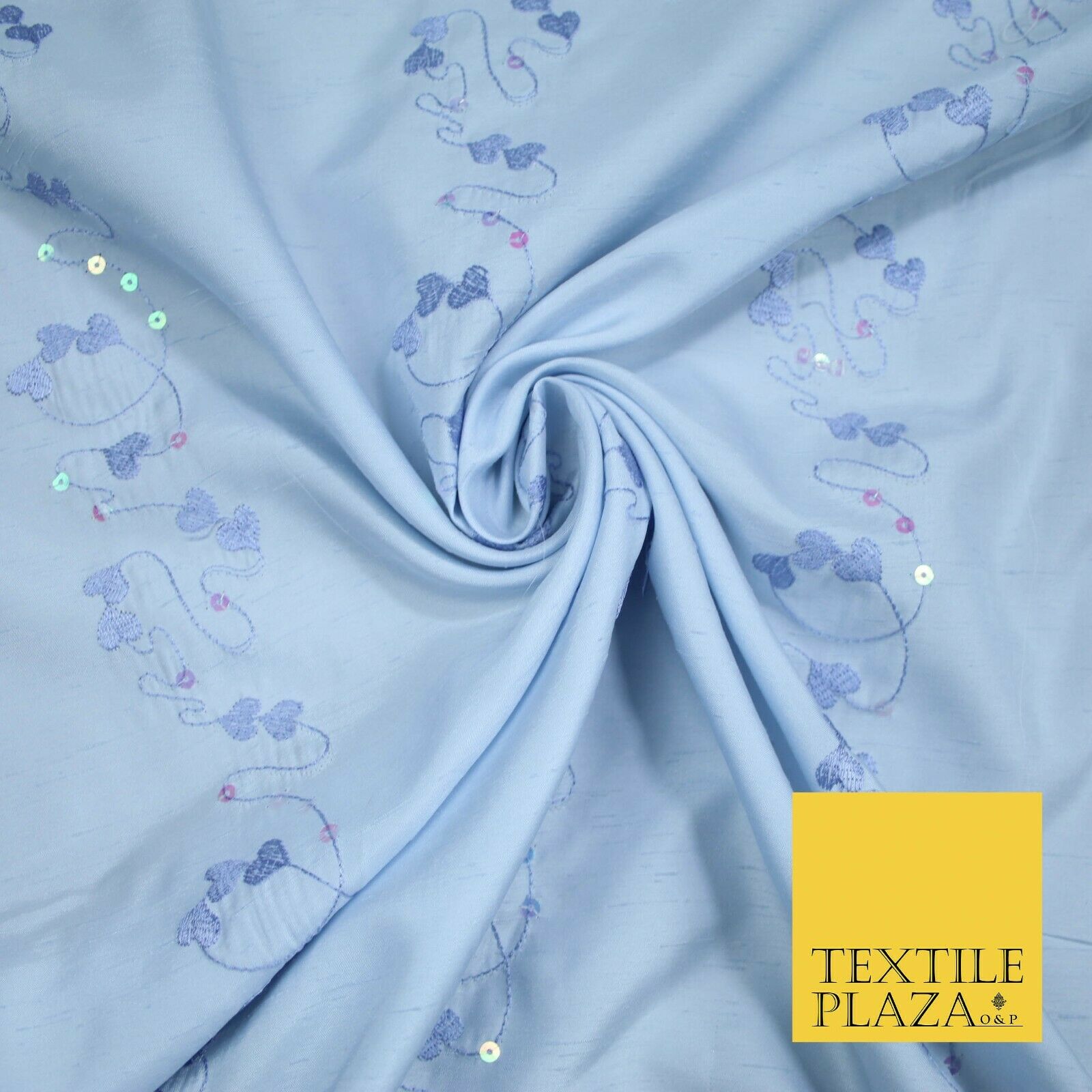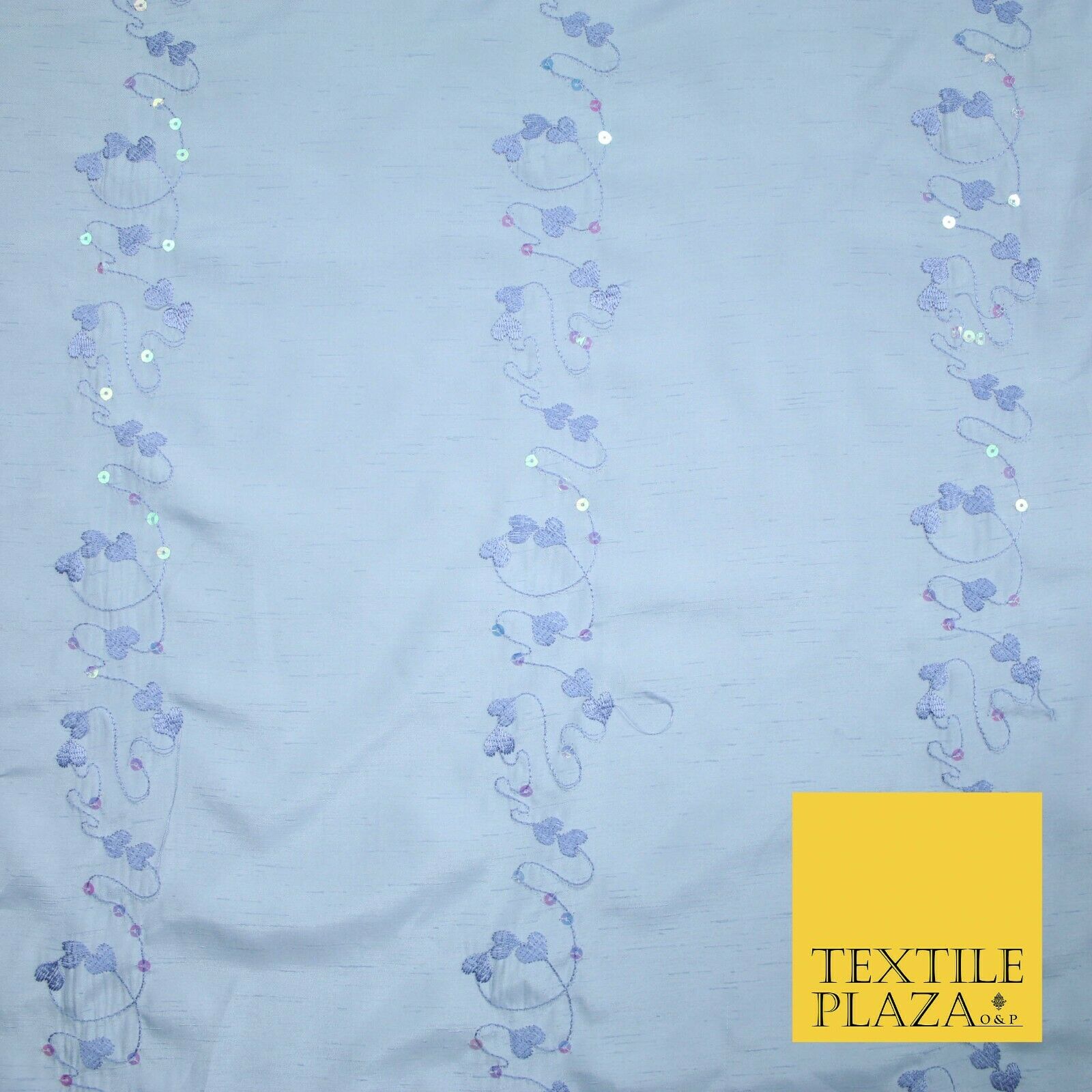 Premium Heart Strings Sequin Striped Embroidered Shantung Raw Silk Dress Fabric