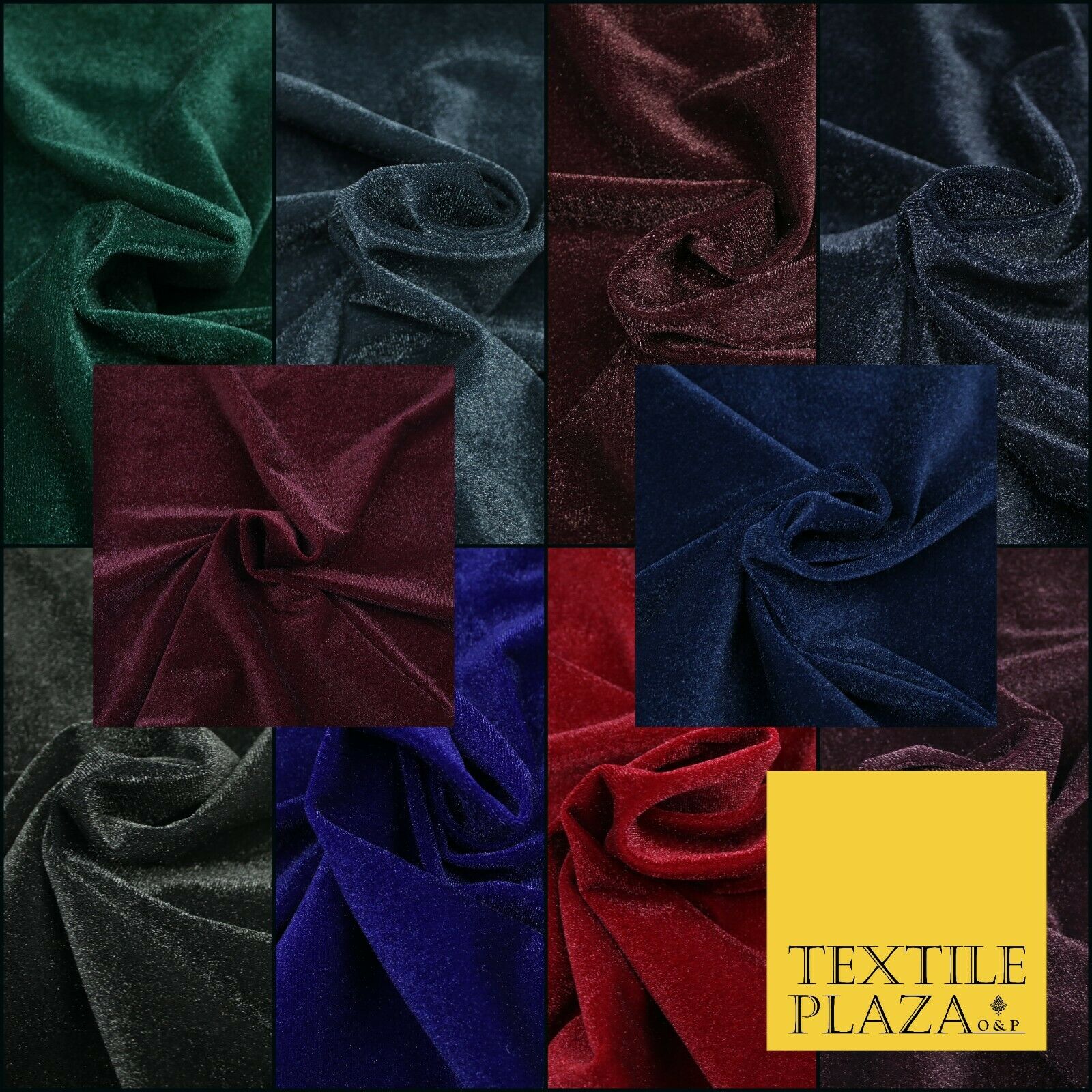 Premium Plain Shimmer Sparkle Velvet Dress Fabric Craft Fashion 2 Way Stretch
