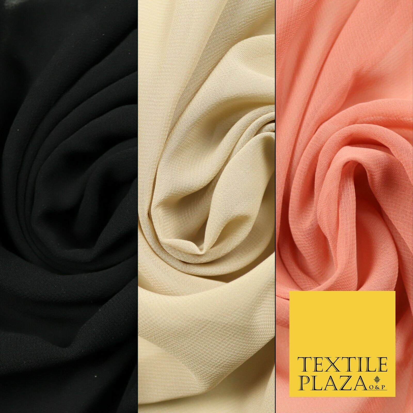 Premium Quality Black Beige Rose Plain Chiffon Dress Sheer Fabric 58" 3 COLOURS