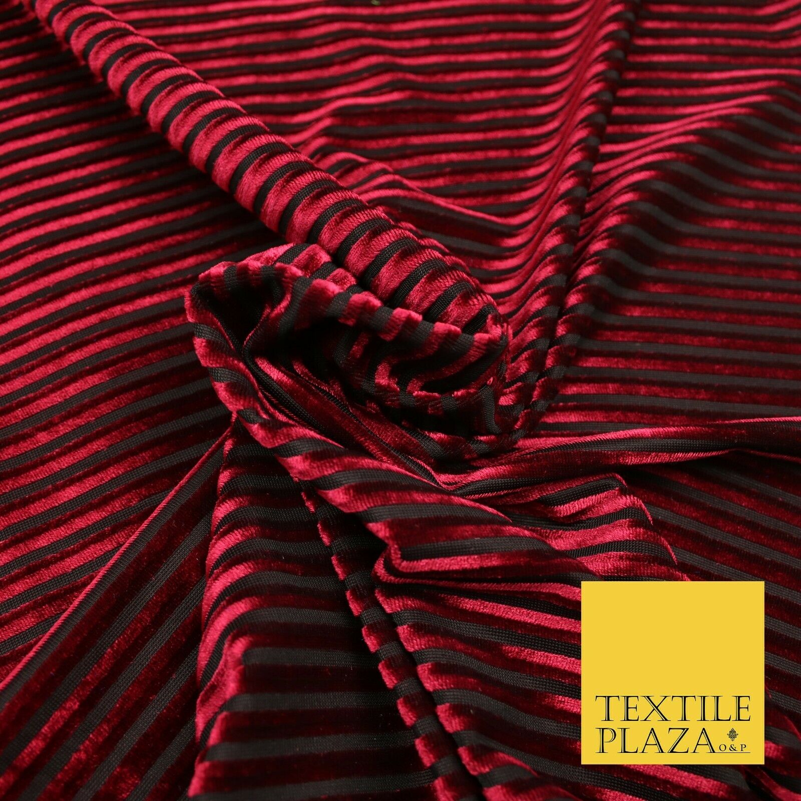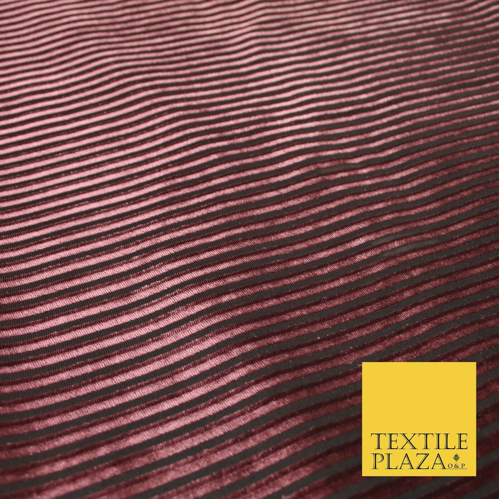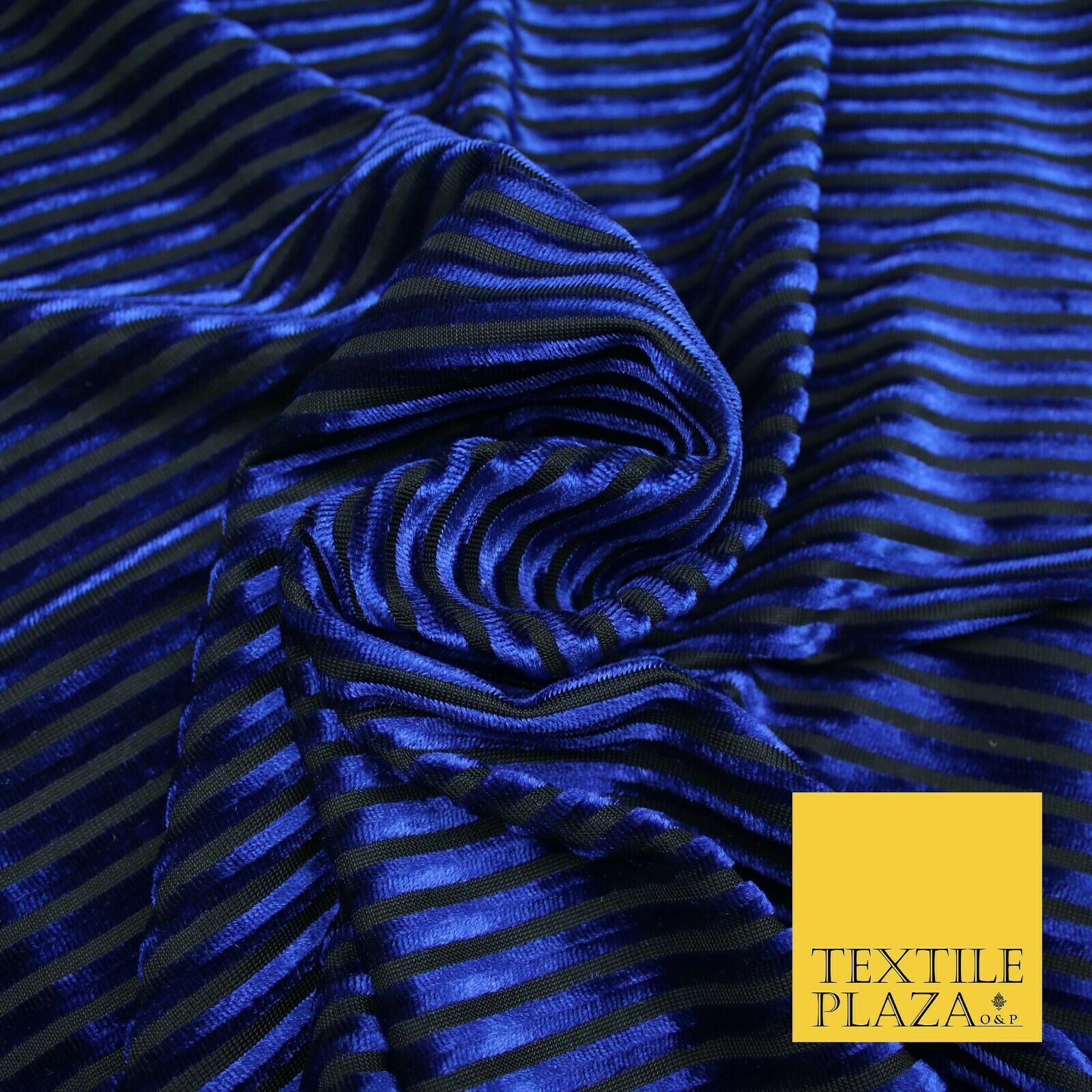 Premium Ribbed Striped Raised Velvet Velour Stretch Black Jersey Dress Fabric