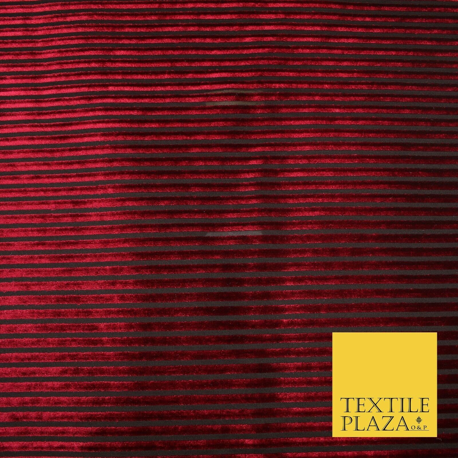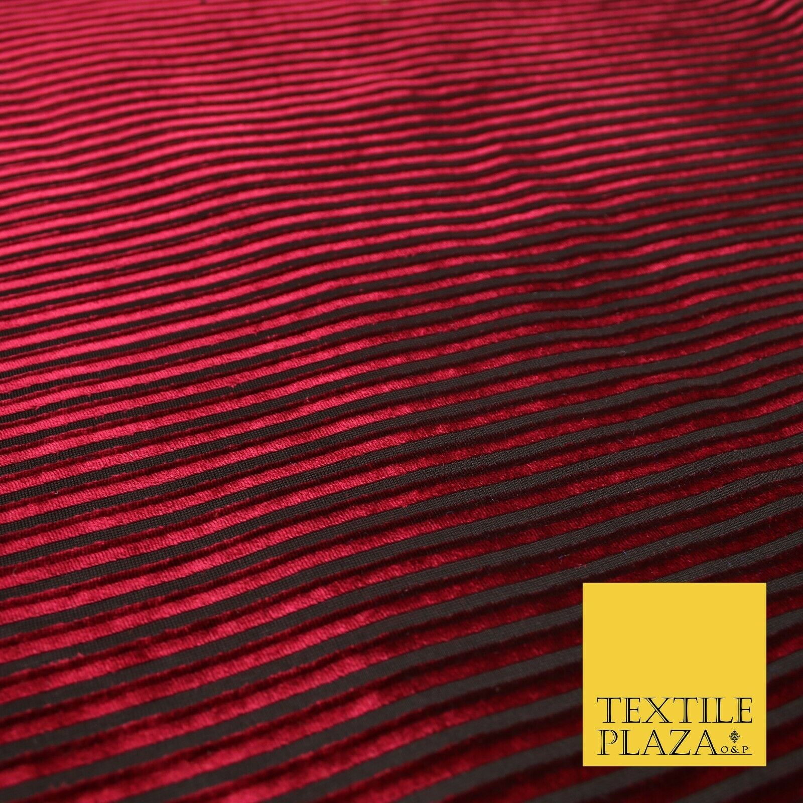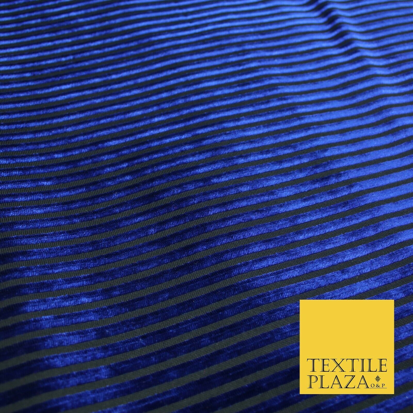 Premium Ribbed Striped Raised Velvet Velour Stretch Black Jersey Dress Fabric