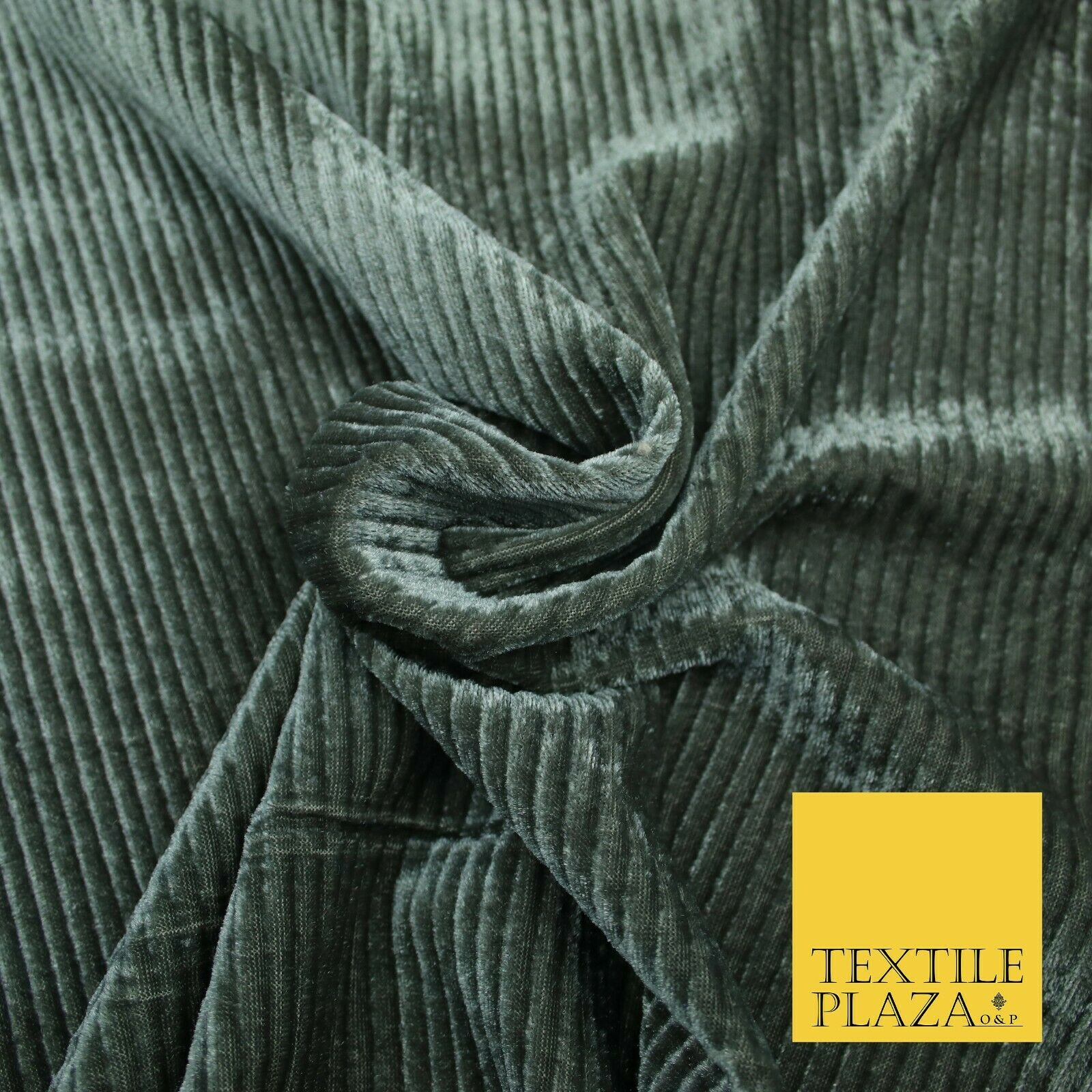 Premium Soft Grey Ribbed Striped Raised Velvet Velour Dress Fabric 1851