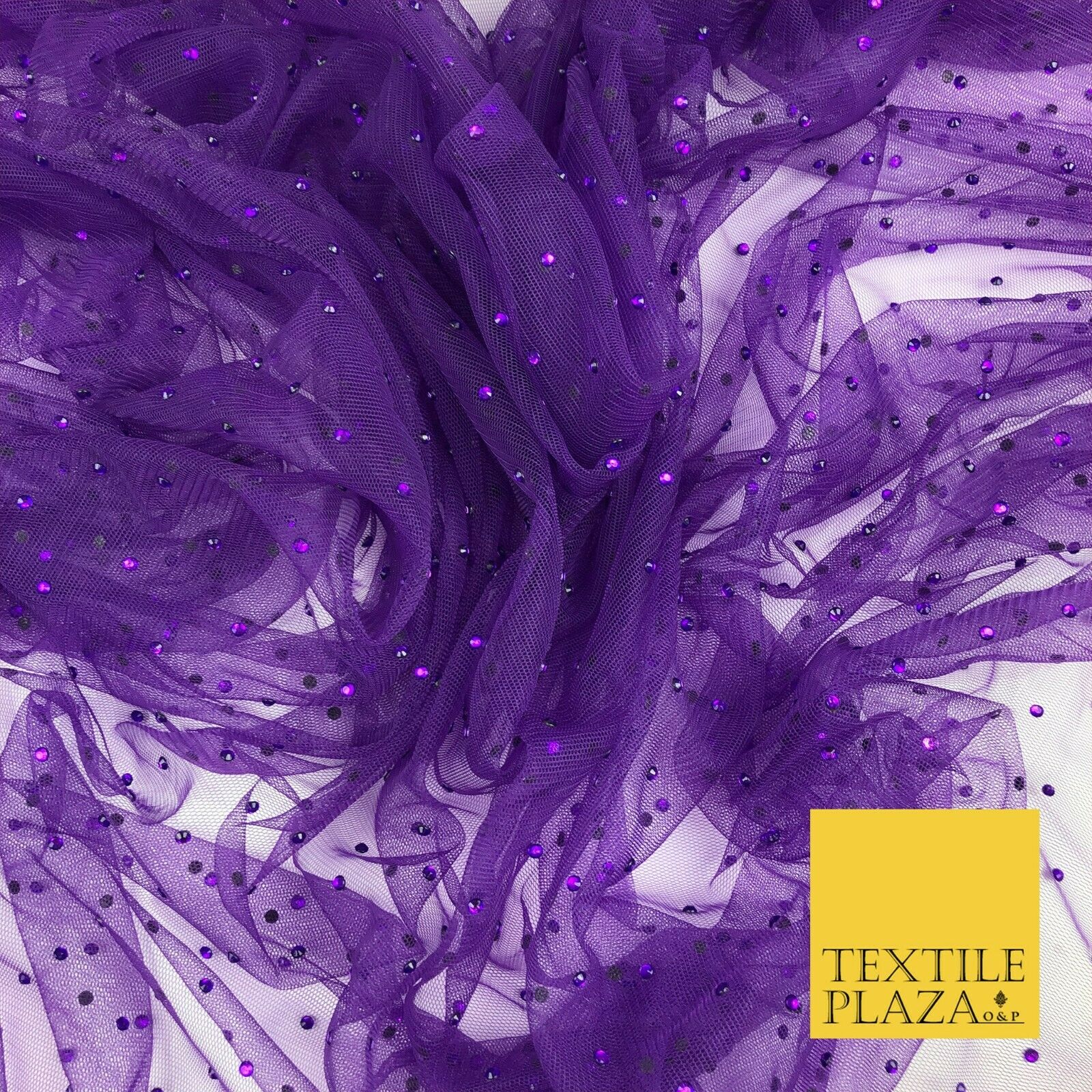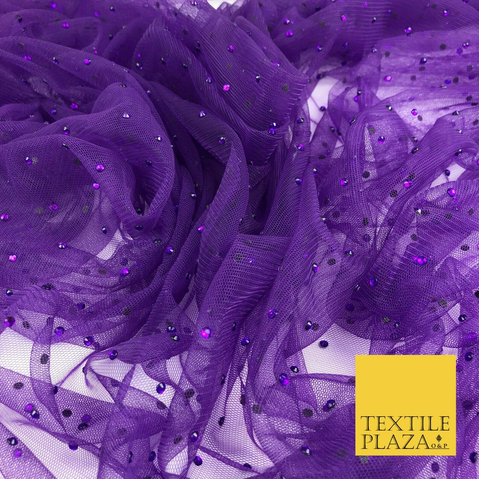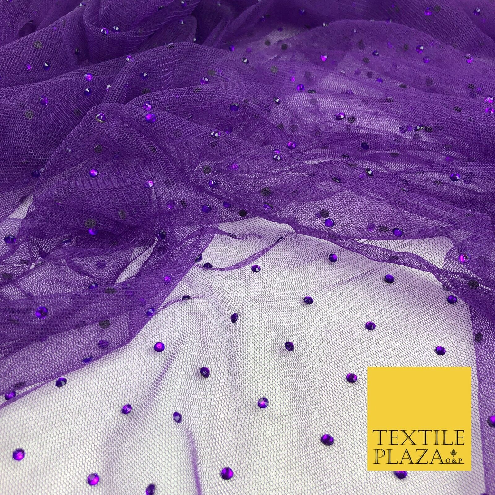 PURPLE Diamonte Multi Stone Mesh Net Fabric Bridal Sheer Craft Dress 1444