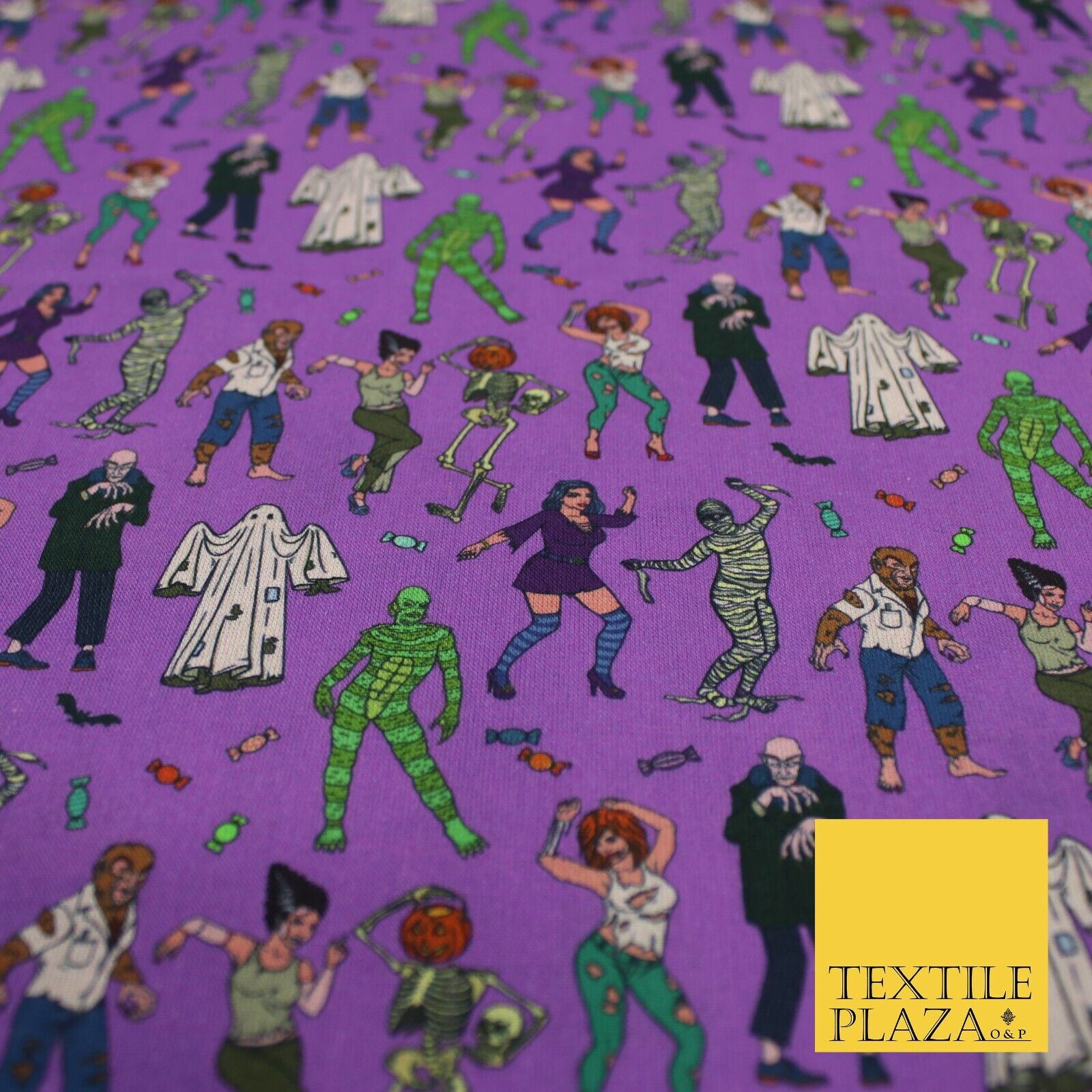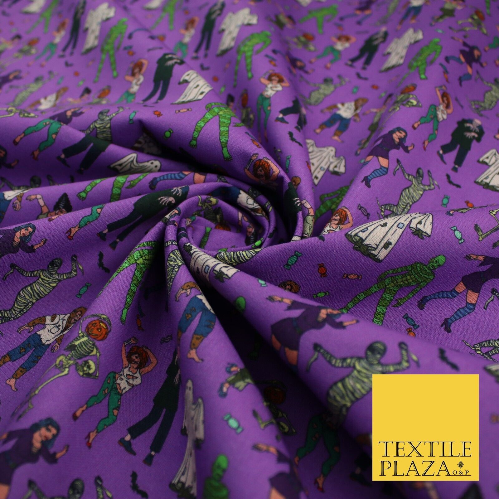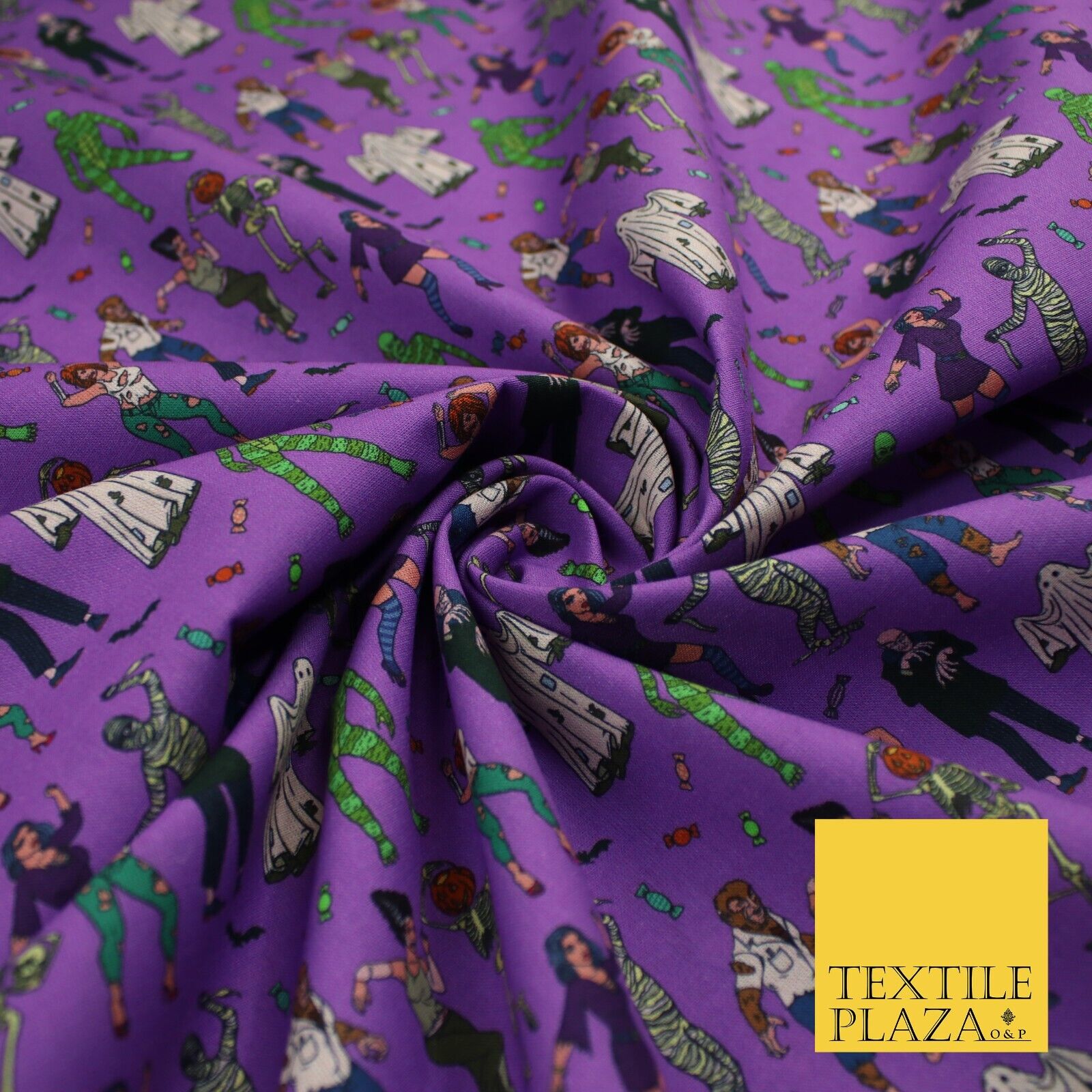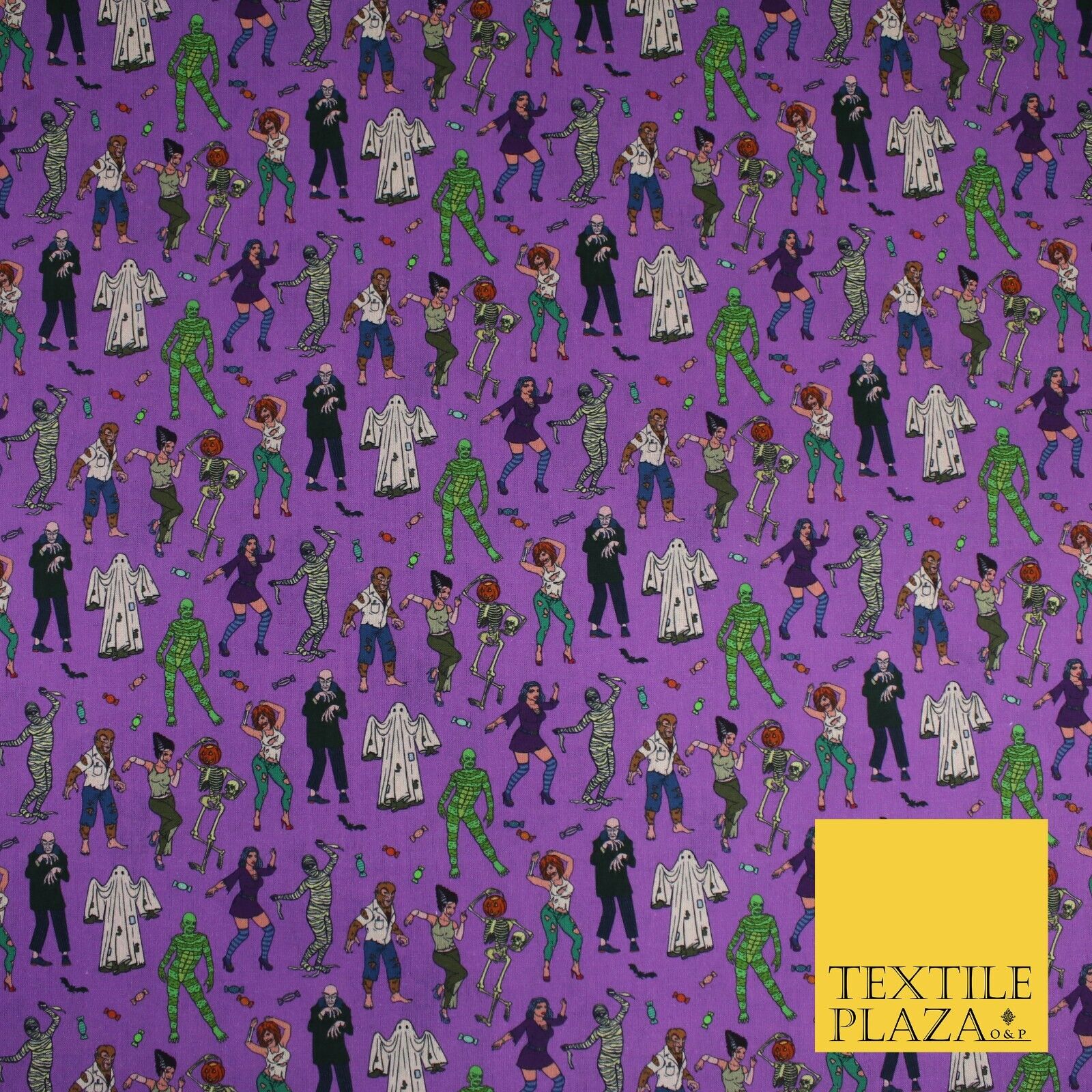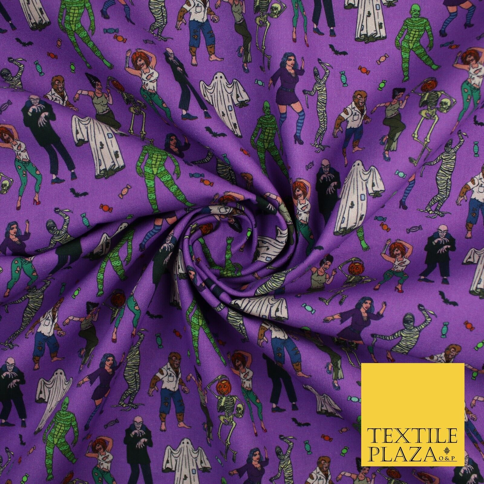 Purple Halloween Ghost Mummy Skeleton 100% Cotton Printed Fabric 58" 10208