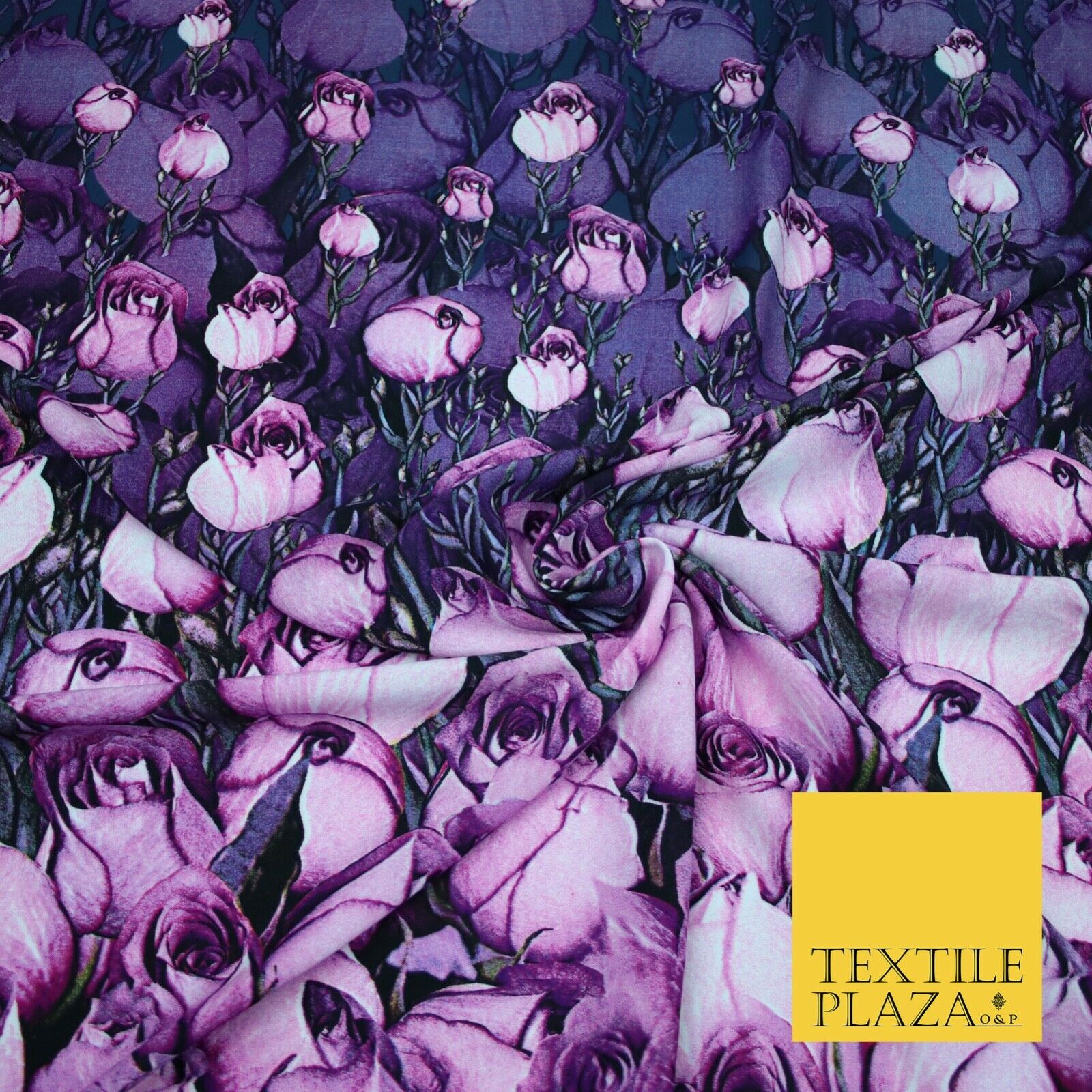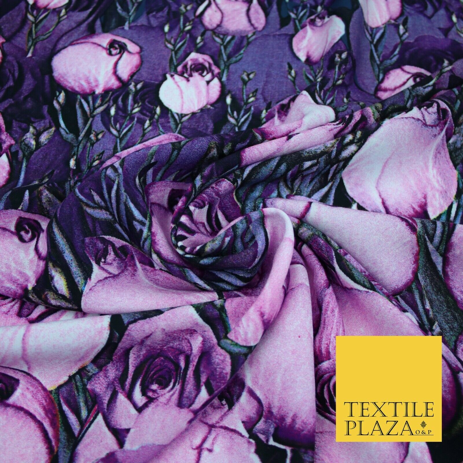 Purple Lilac White Tulip Flower Print Spun Rayon Viscose Dress Fabric Craft 2450