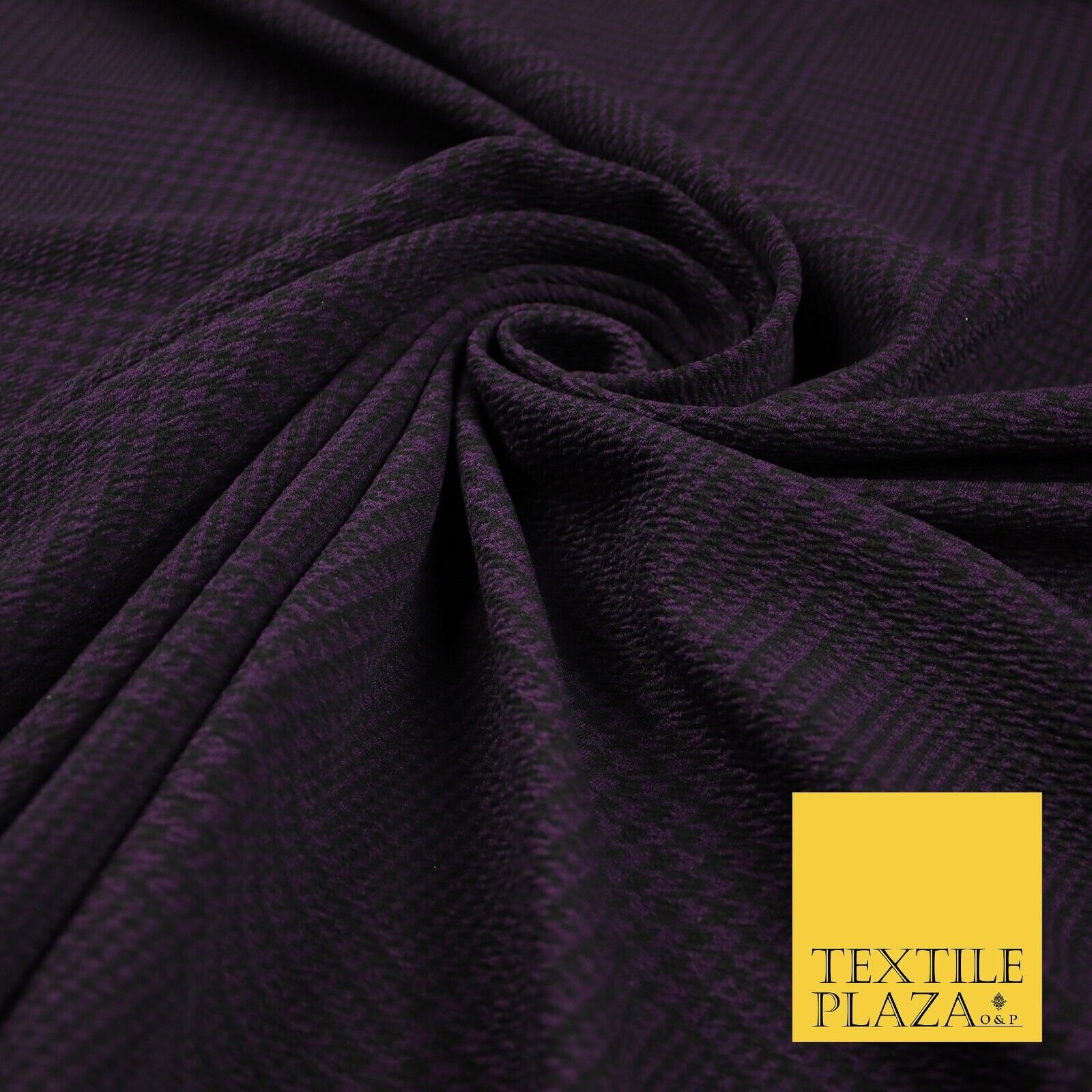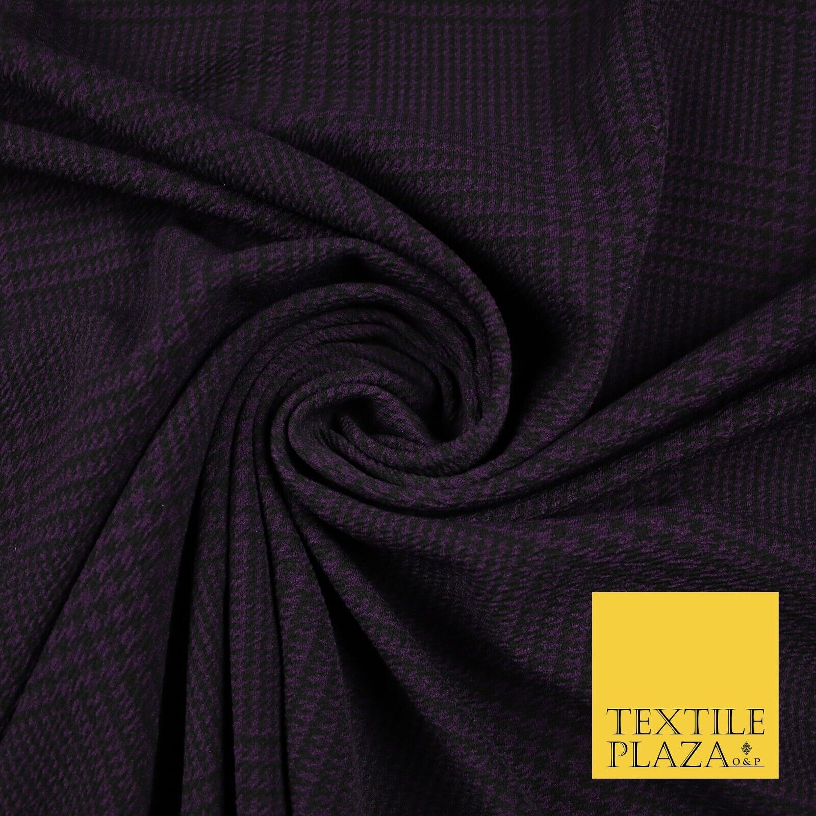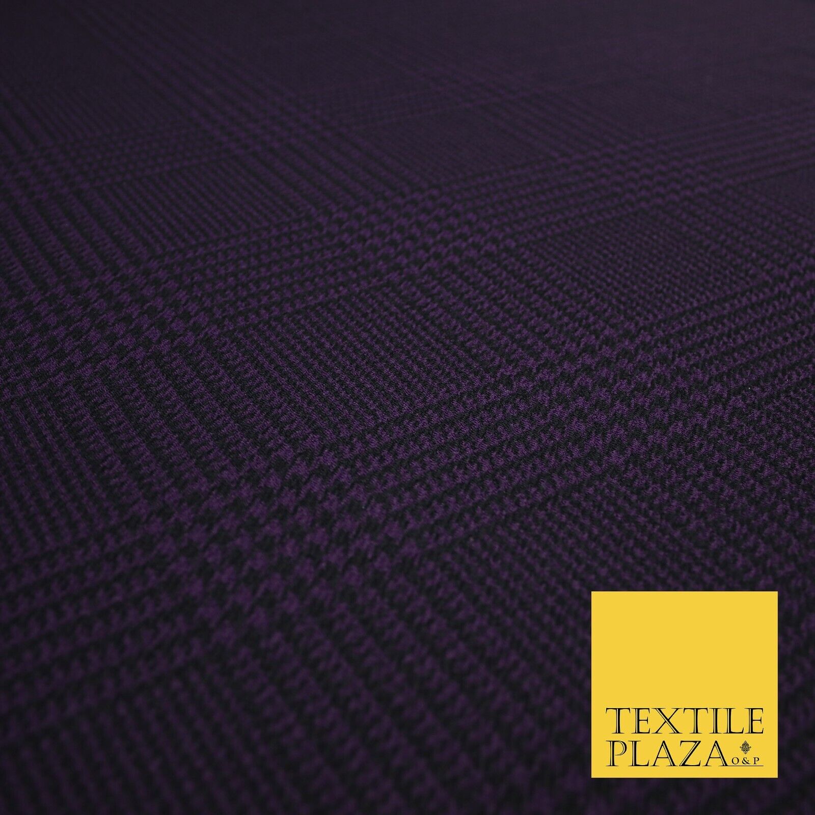 Purple Traditional Check Tartan Print Soft Touch Stretch Jersey Fabric 56" 6612