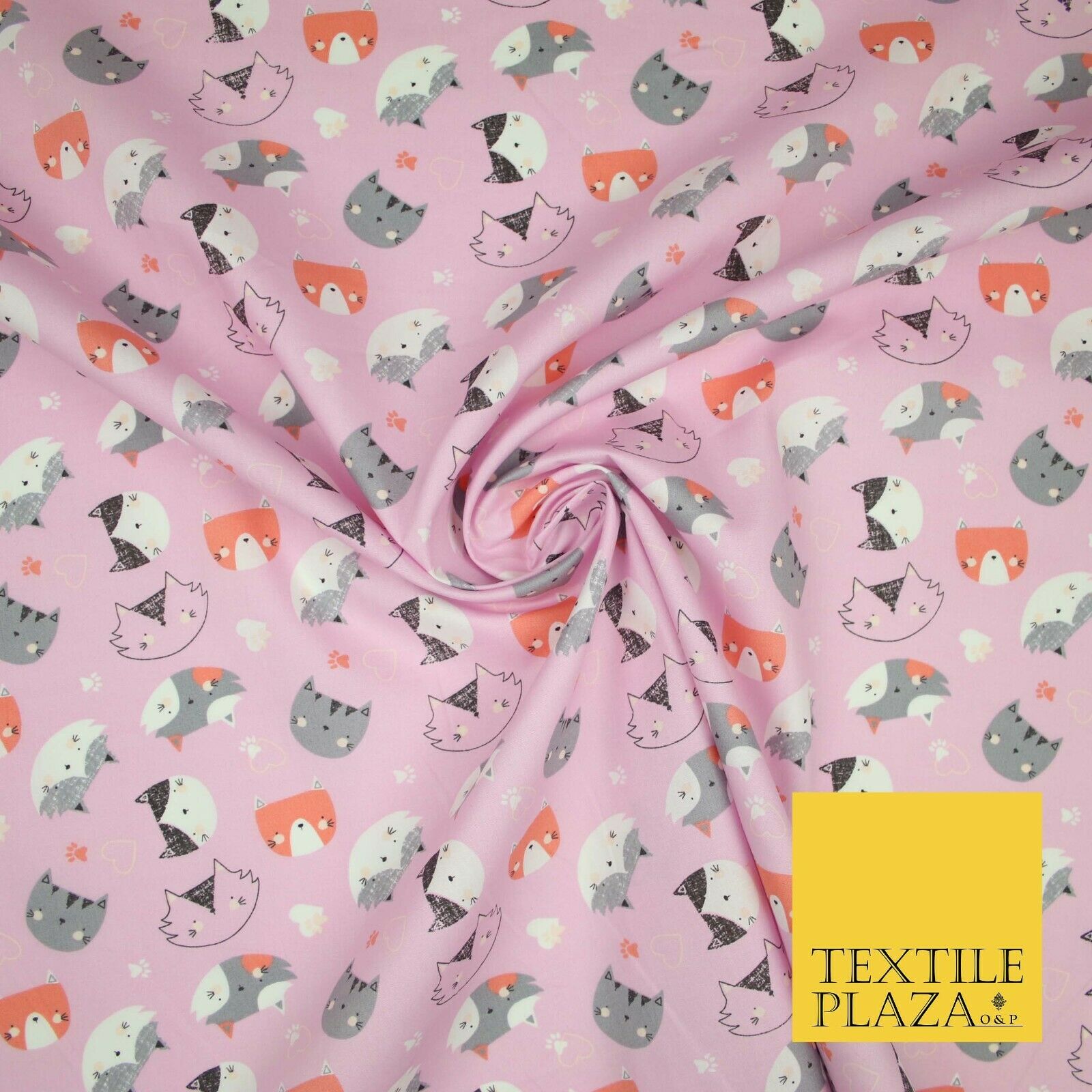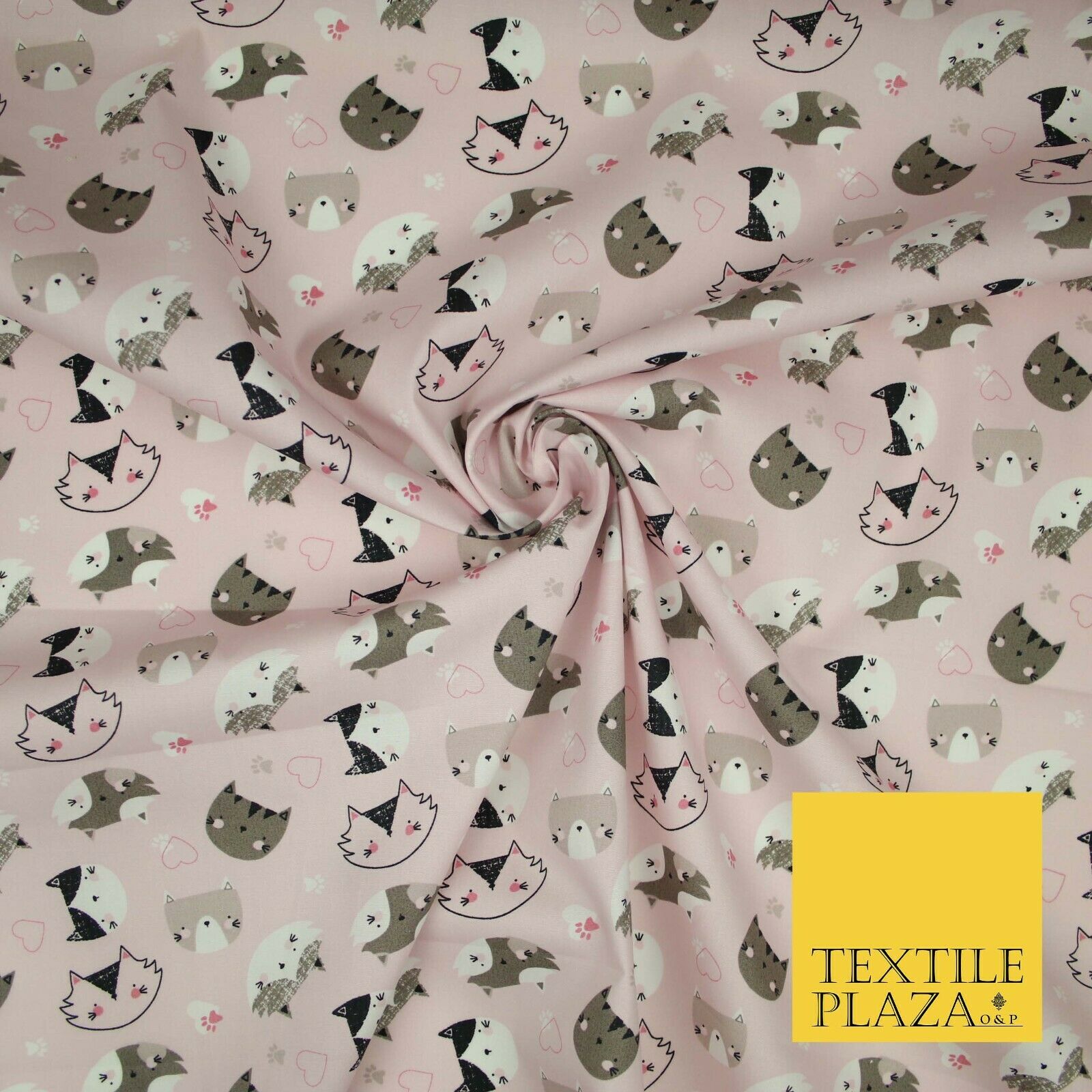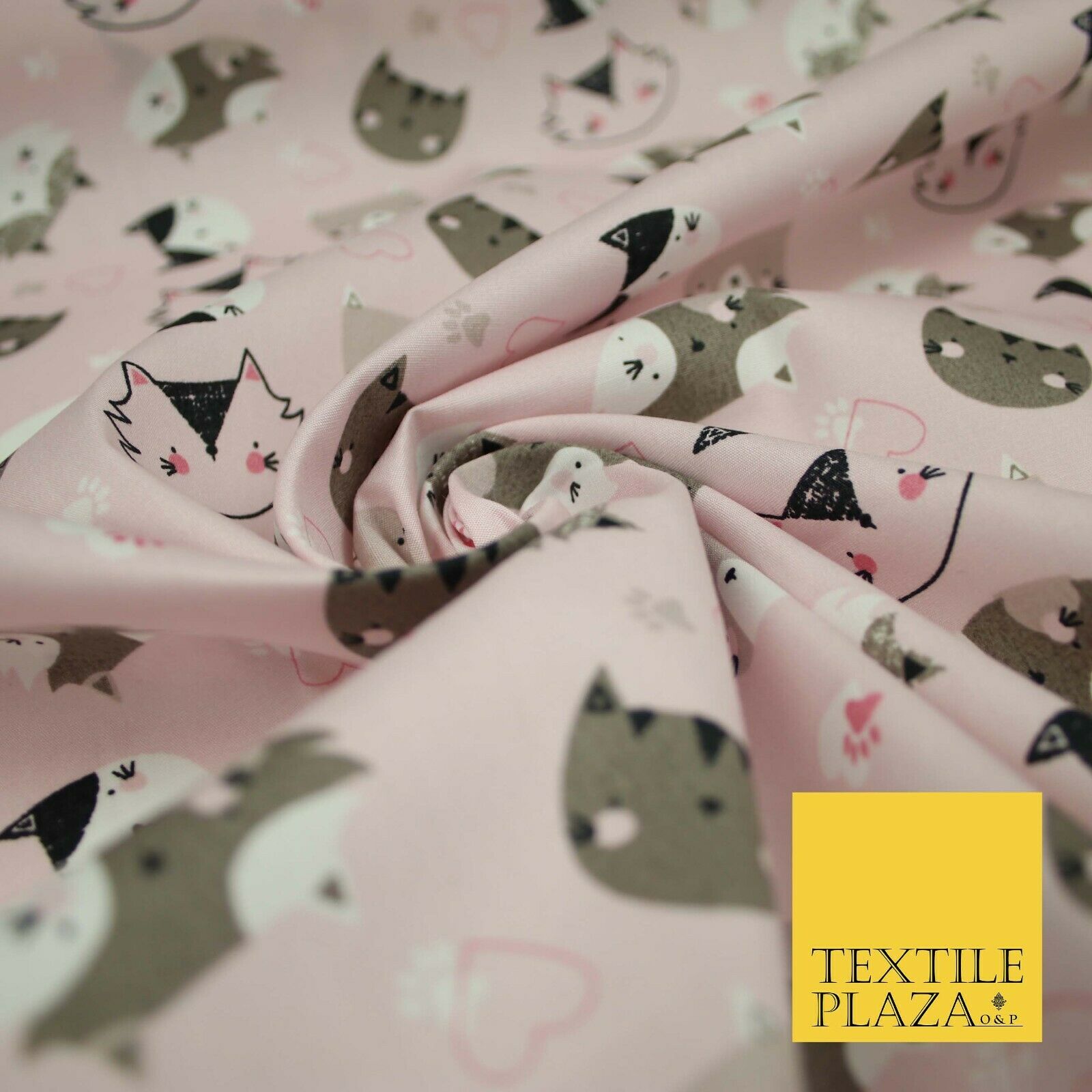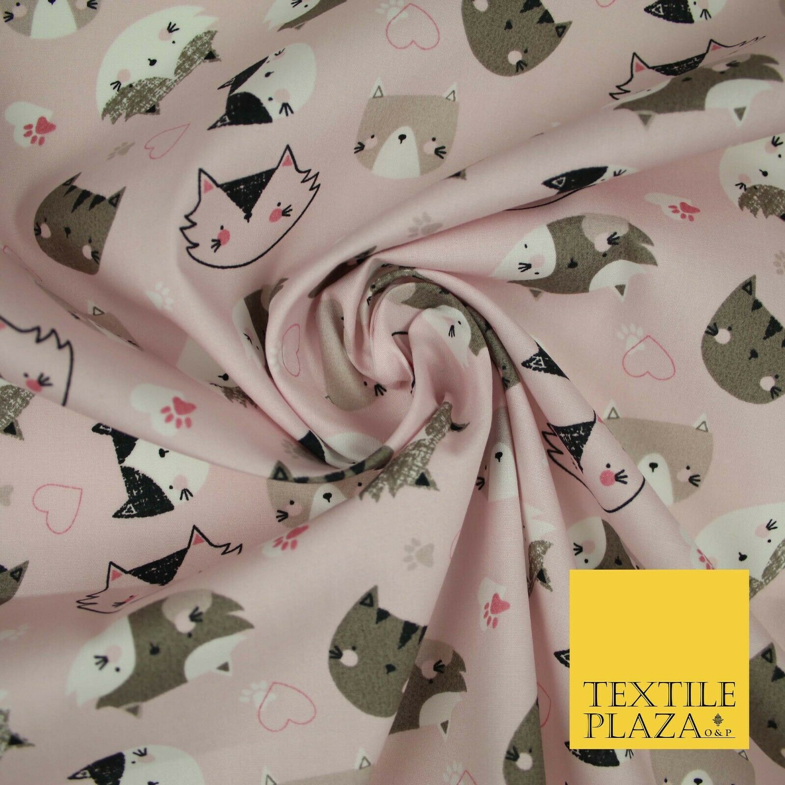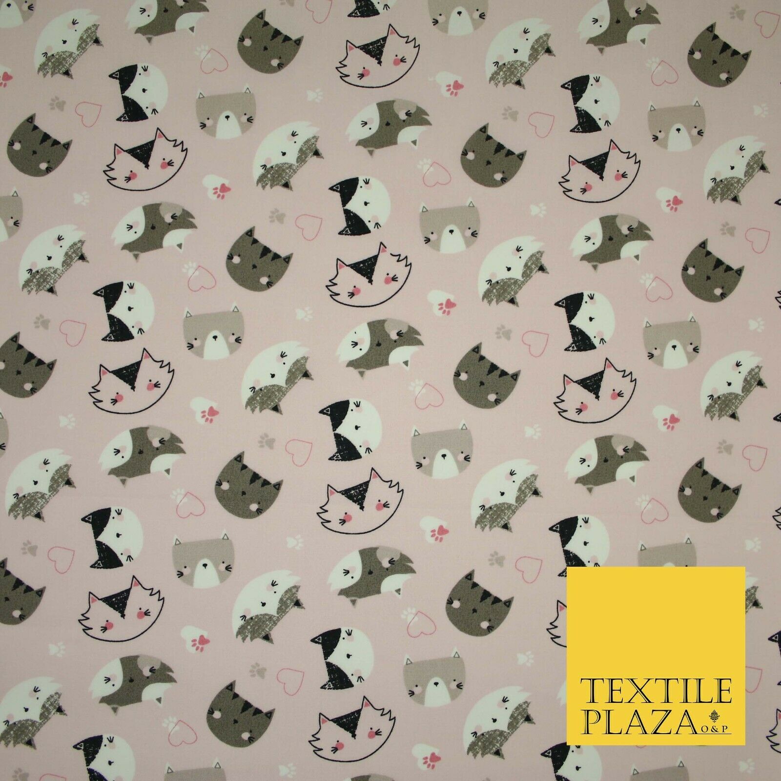 Pussycats Hearts Paws Printed 100% Cotton Poplin Fabric Craft Face Masks Dress