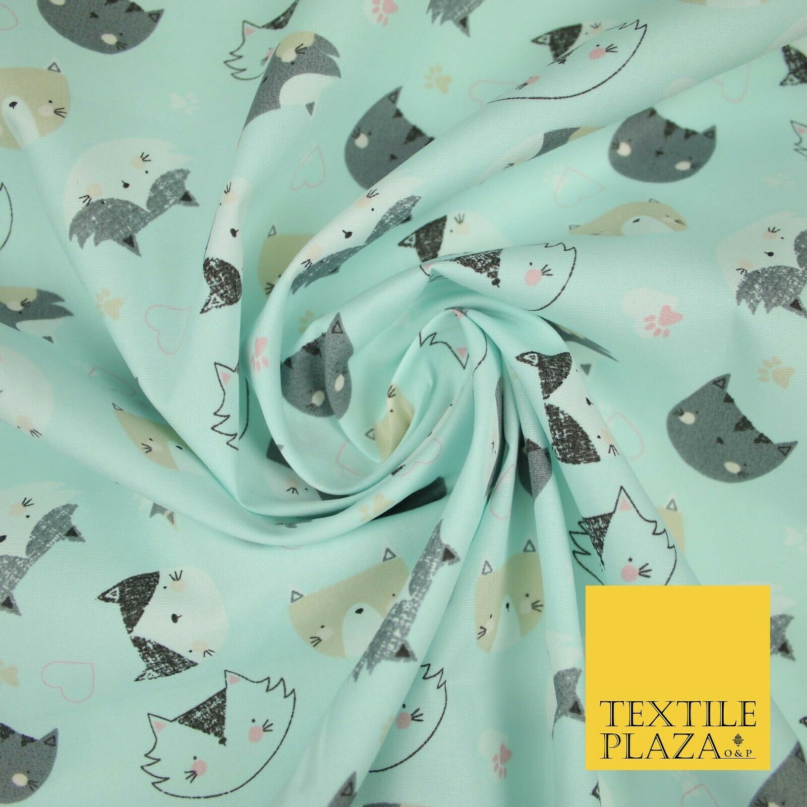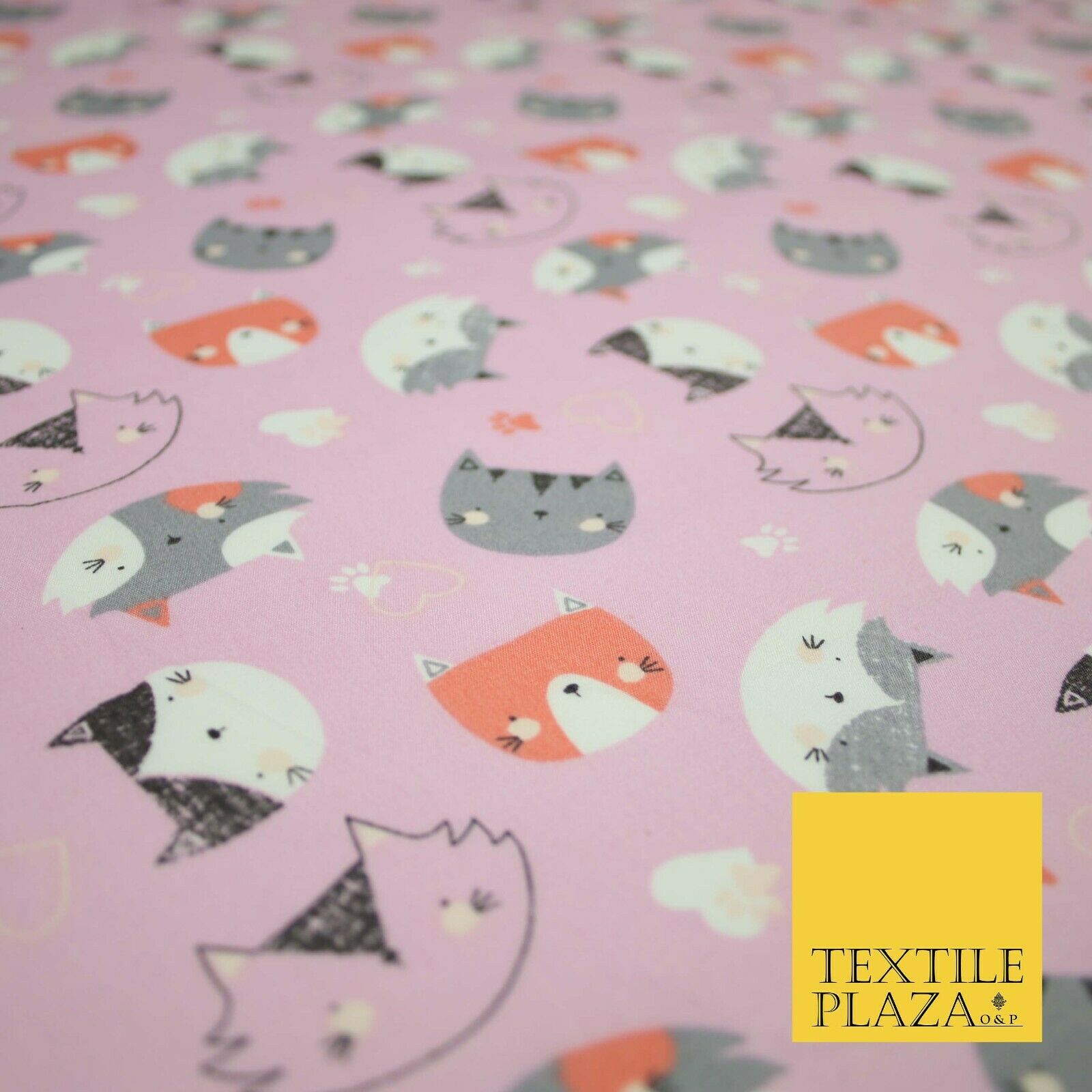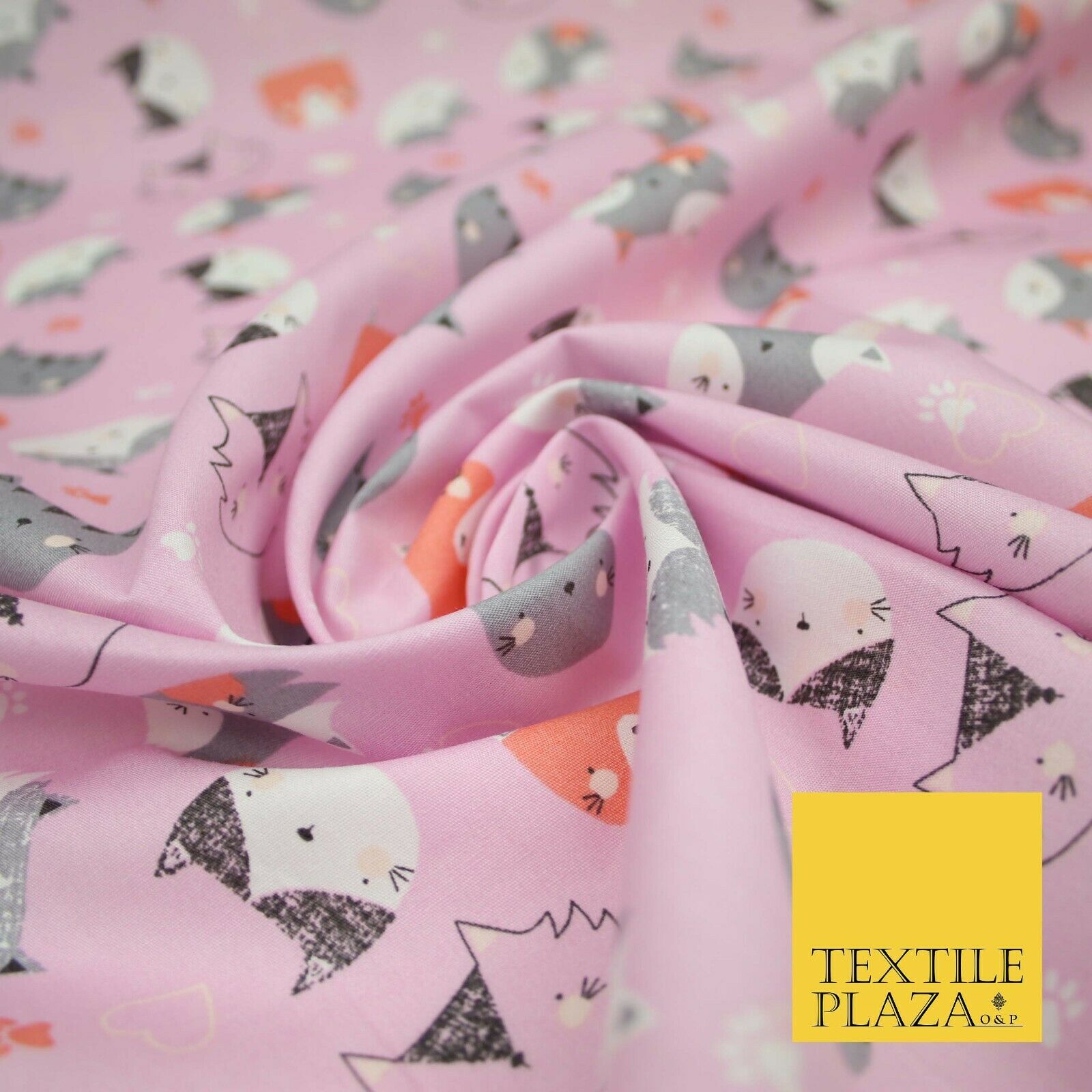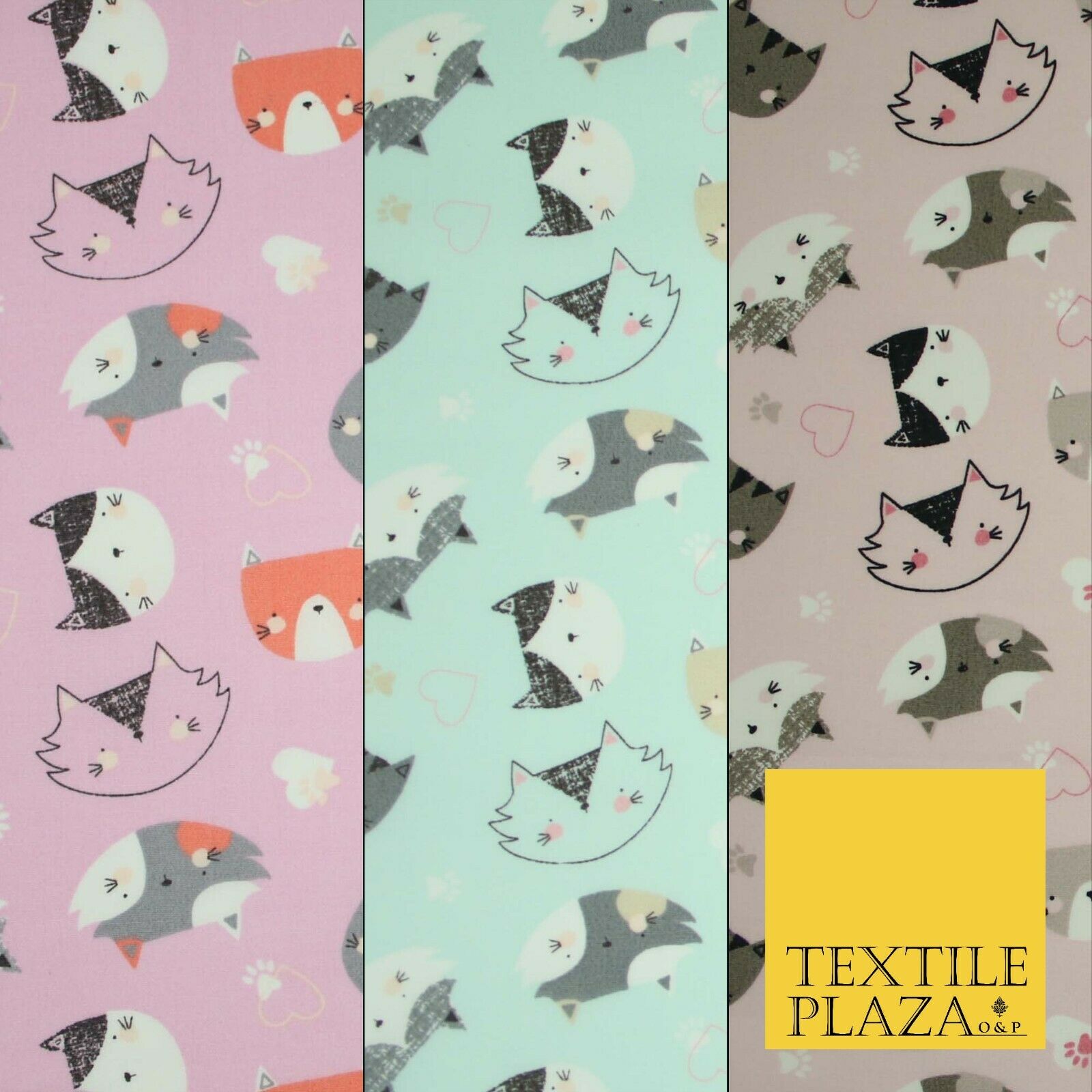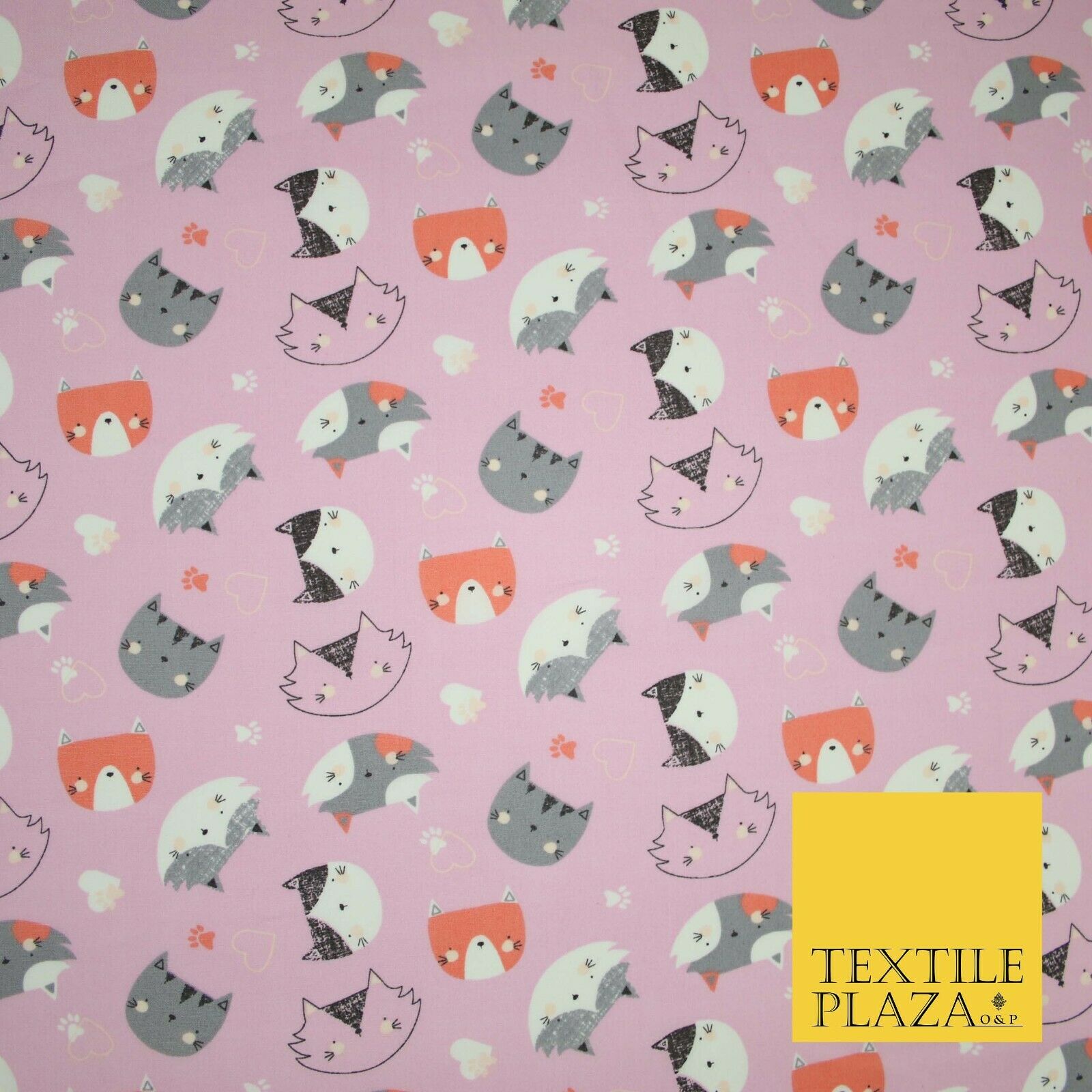 Pussycats Hearts Paws Printed 100% Cotton Poplin Fabric Craft Face Masks Dress