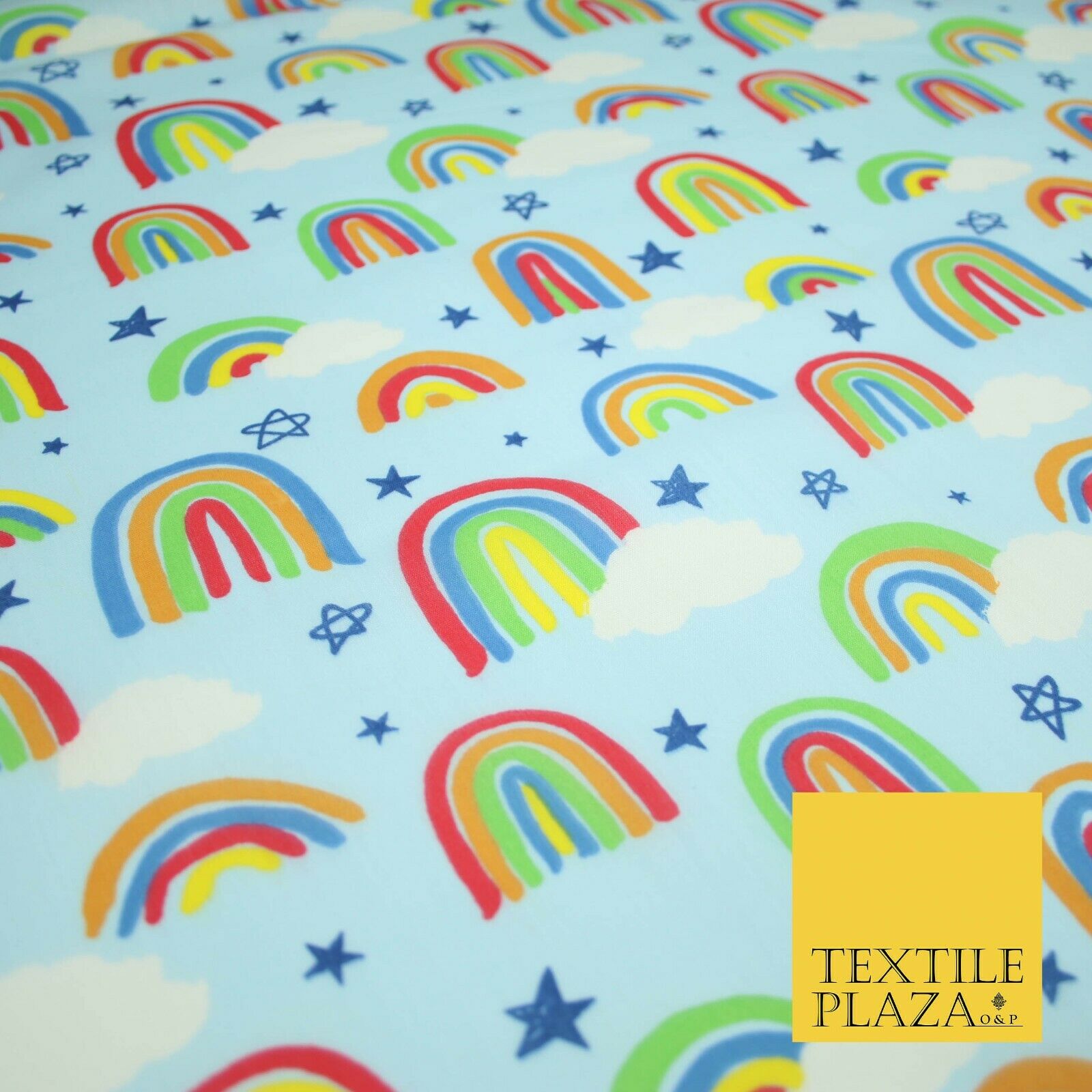 Rainbow Clouds Sky Stars Printed Polycotton Dress Craft Fabric NHS 44" 3 COLOURS