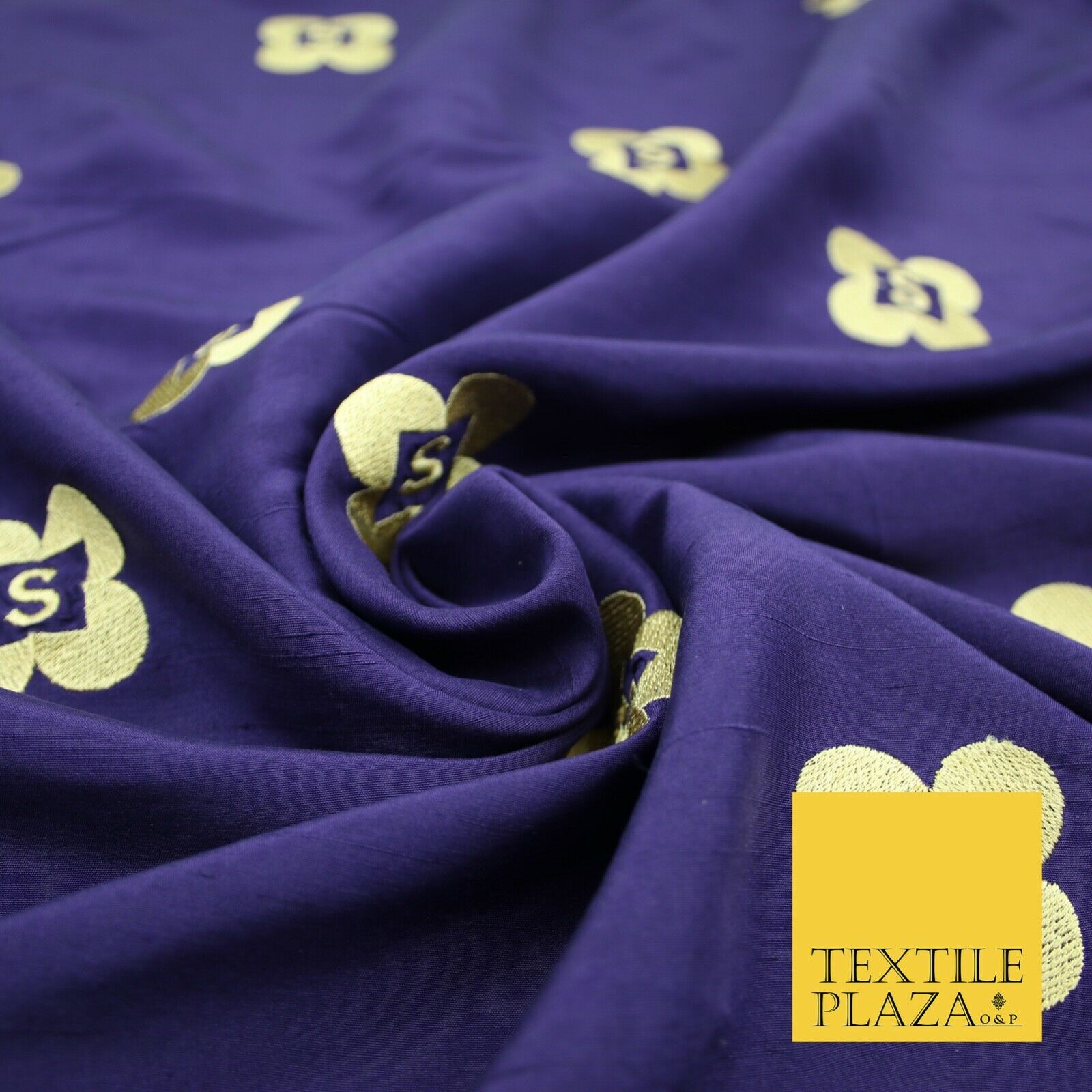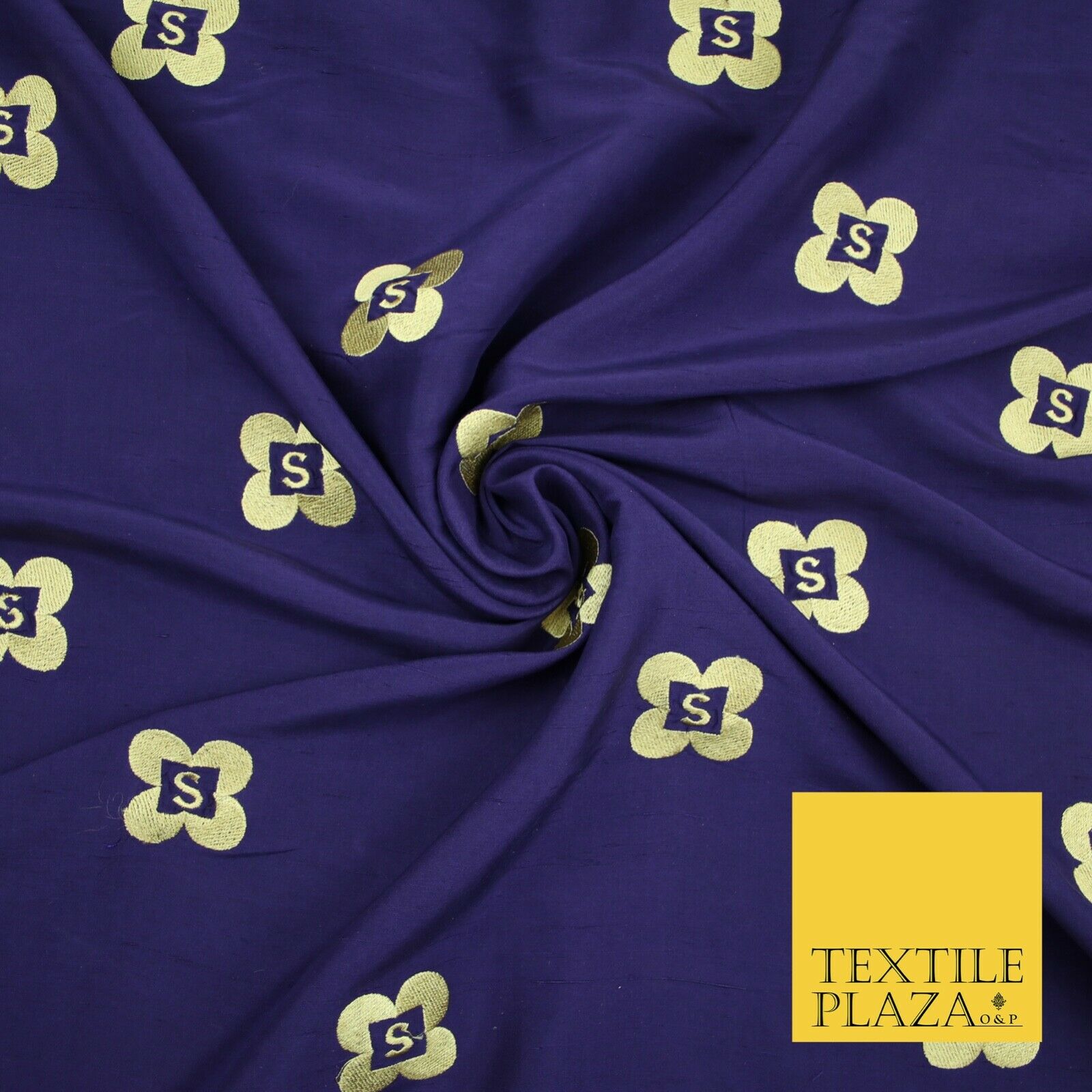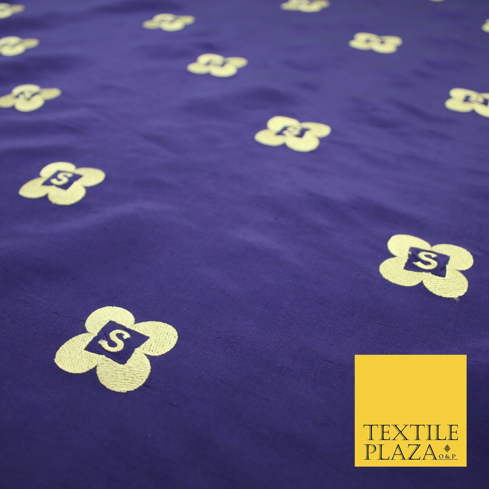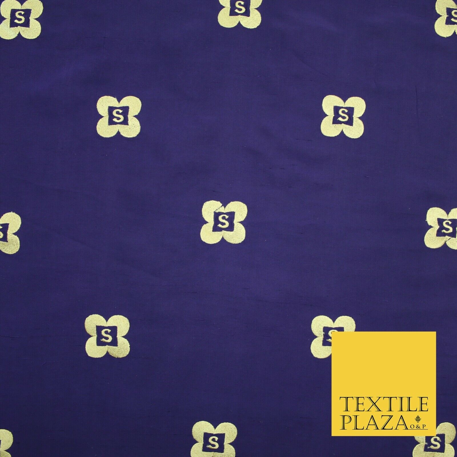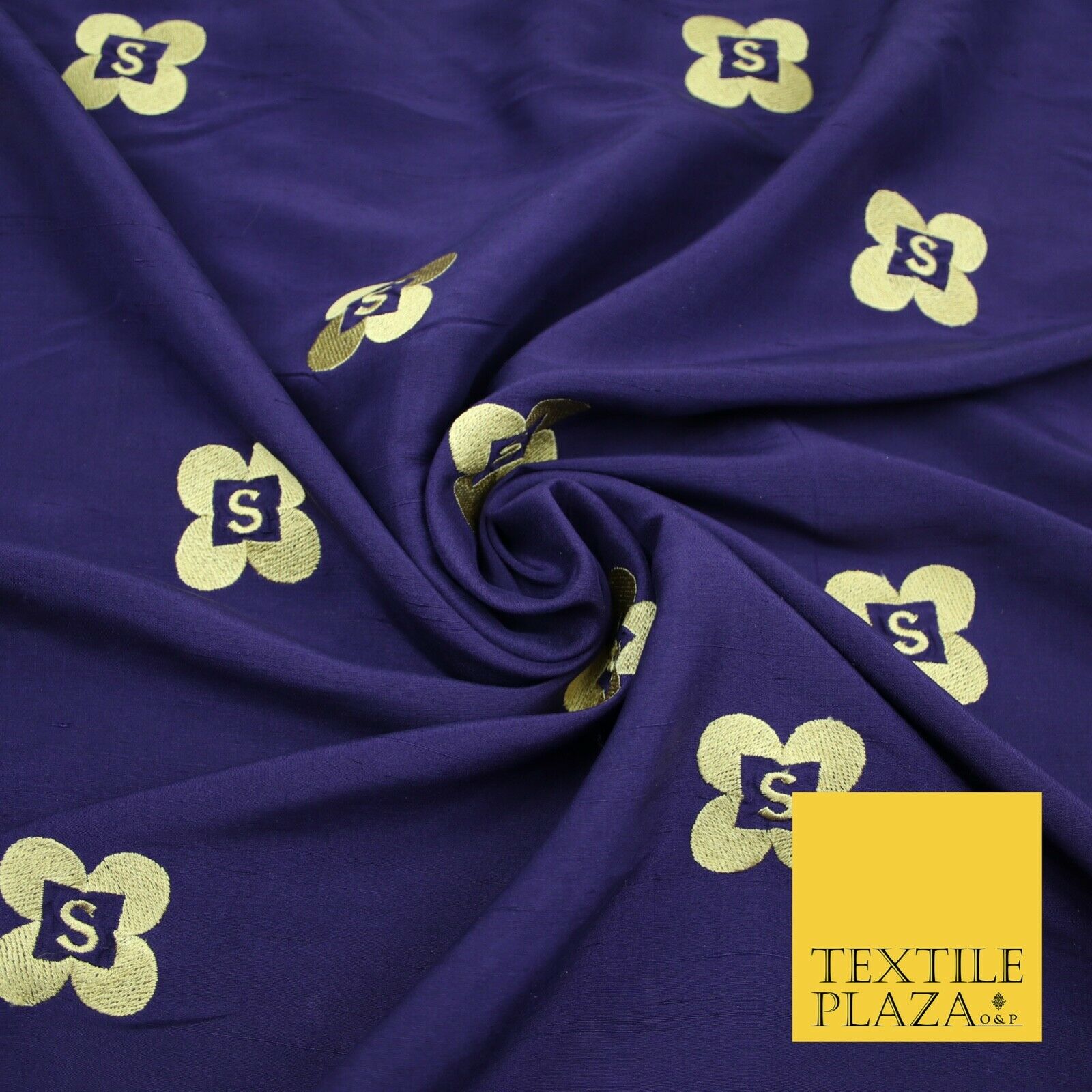 Rare Purple S Personalised 100% Pure Silk Gold Embroidery Indian Fabric "S" 2523