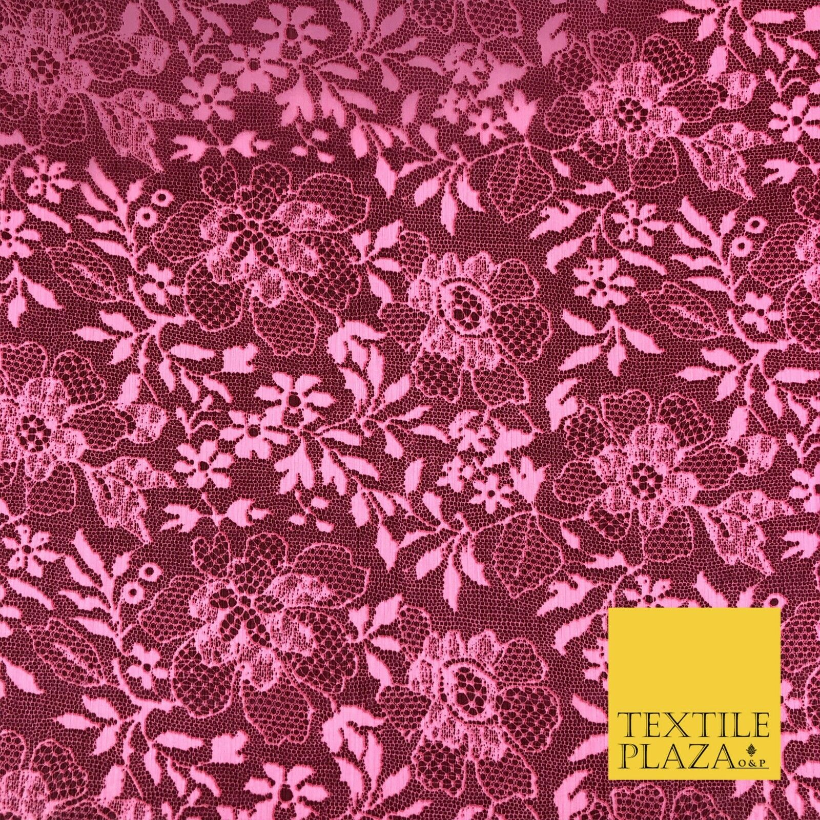RASPBERRY PINK Floral Webbed Flower Printed Chiffon Dress Scarf Fabric 58" 1344