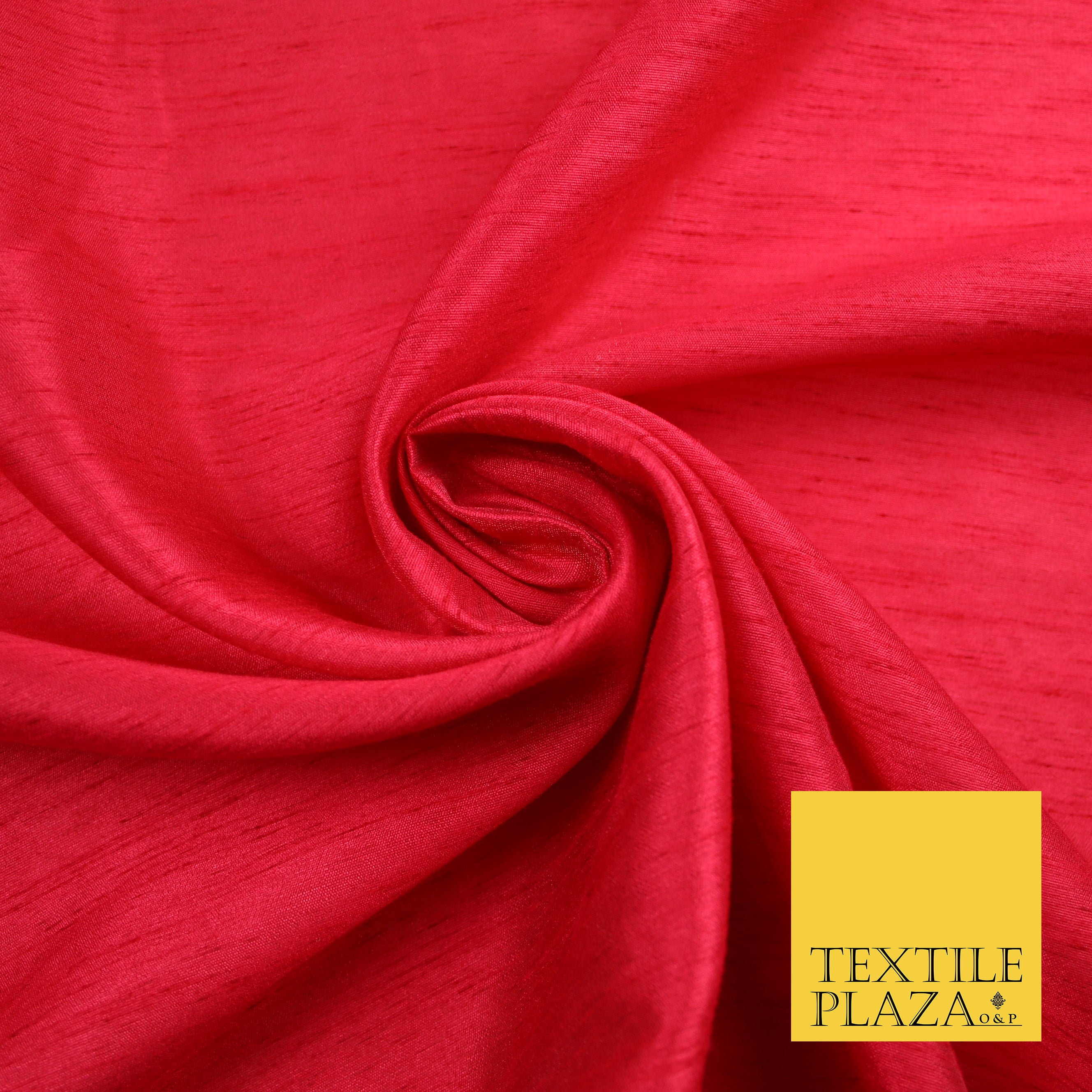 RASPBERRY PINK Plain Dyed Faux Dupion Raw Silk Polyester Dress Fabric Material 7967