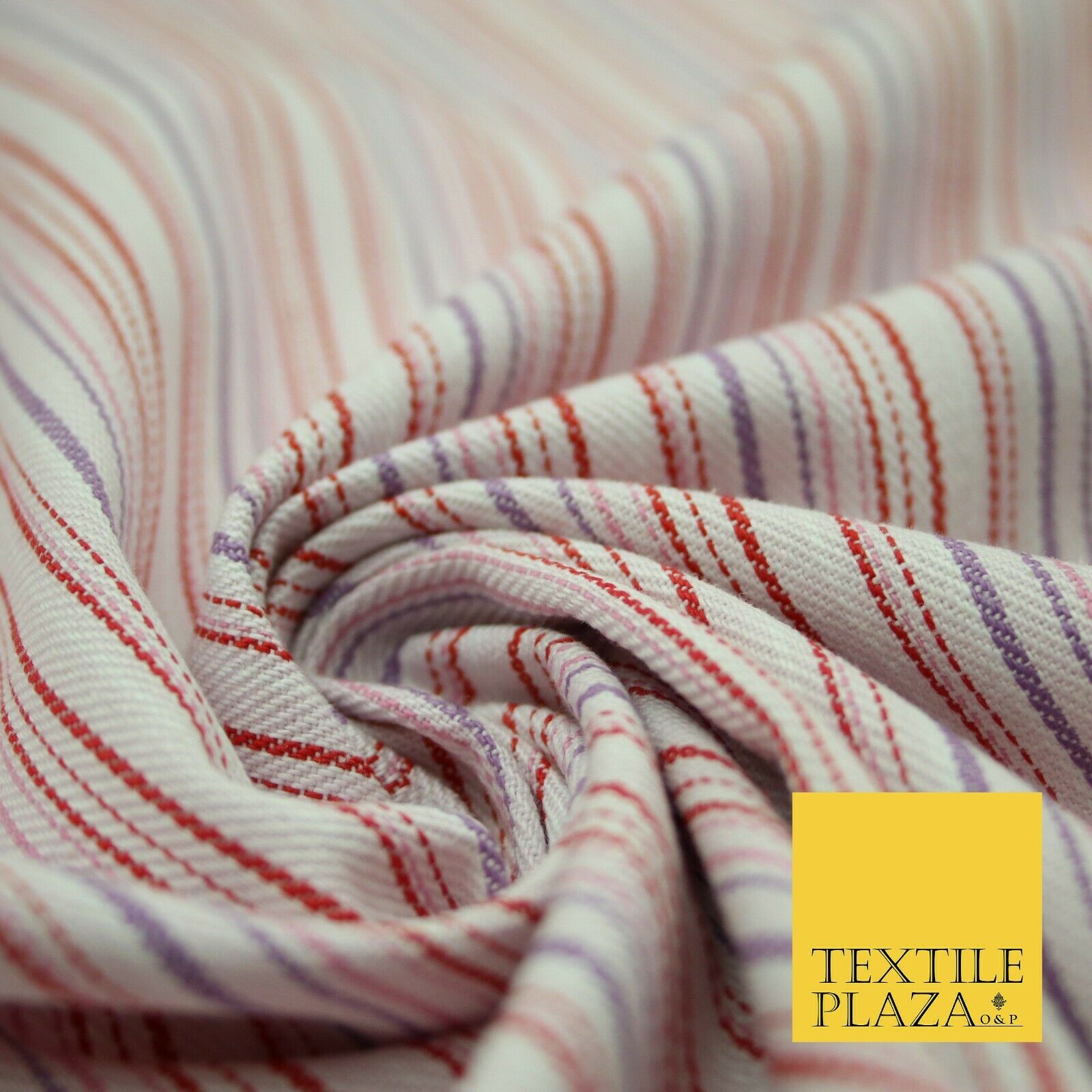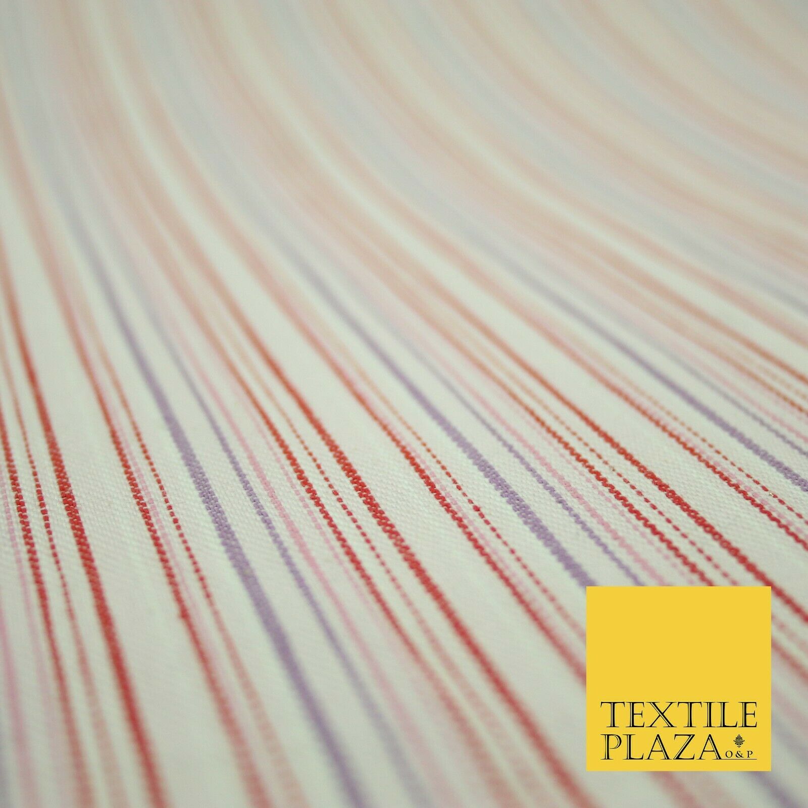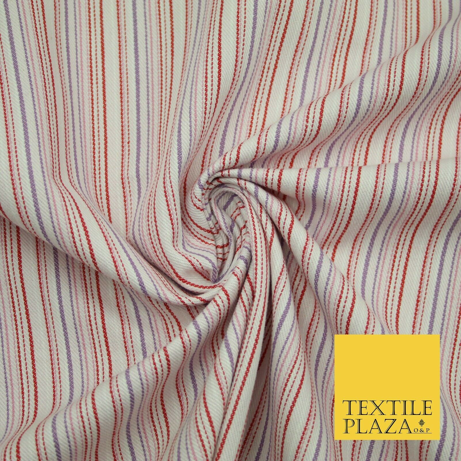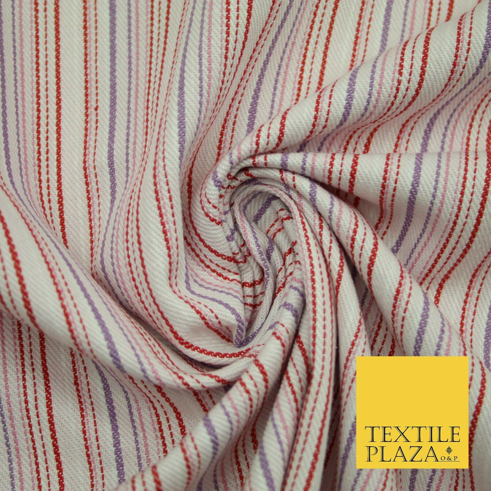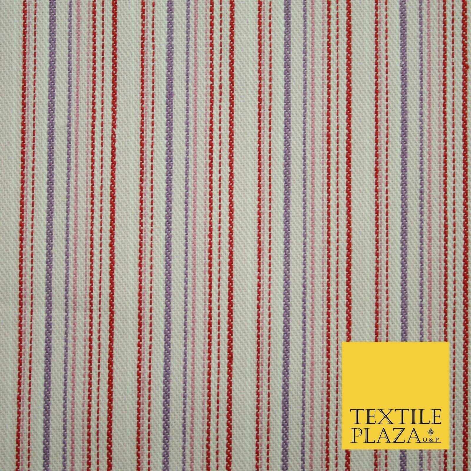 Raspberry Red Lilac Striped Polyester Textured Canvas Fabric Dress Craft 2292
