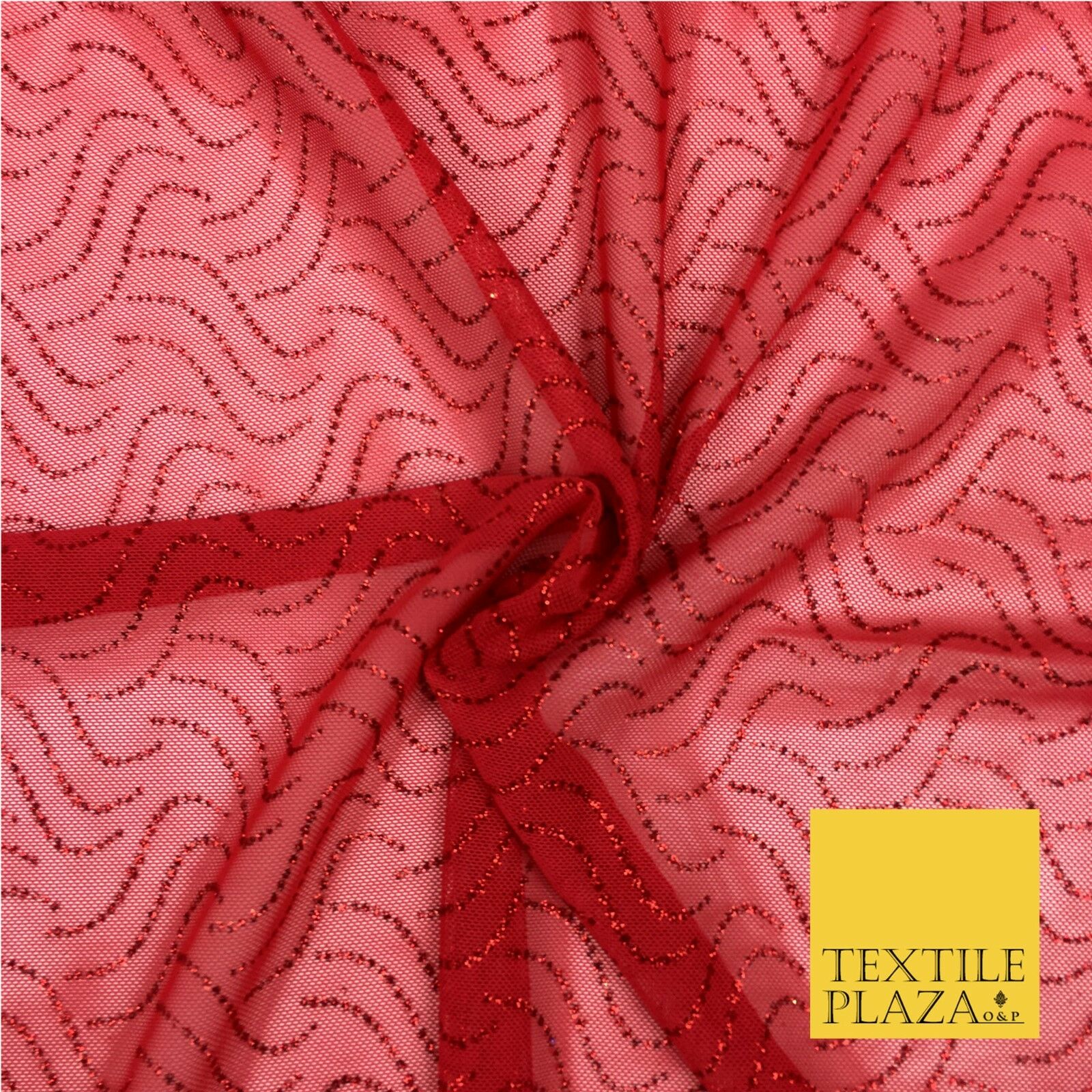 RED 4 WAY Soft Stretch Fine Power Mesh Net Glitter - Dance Dress Fabric 2322