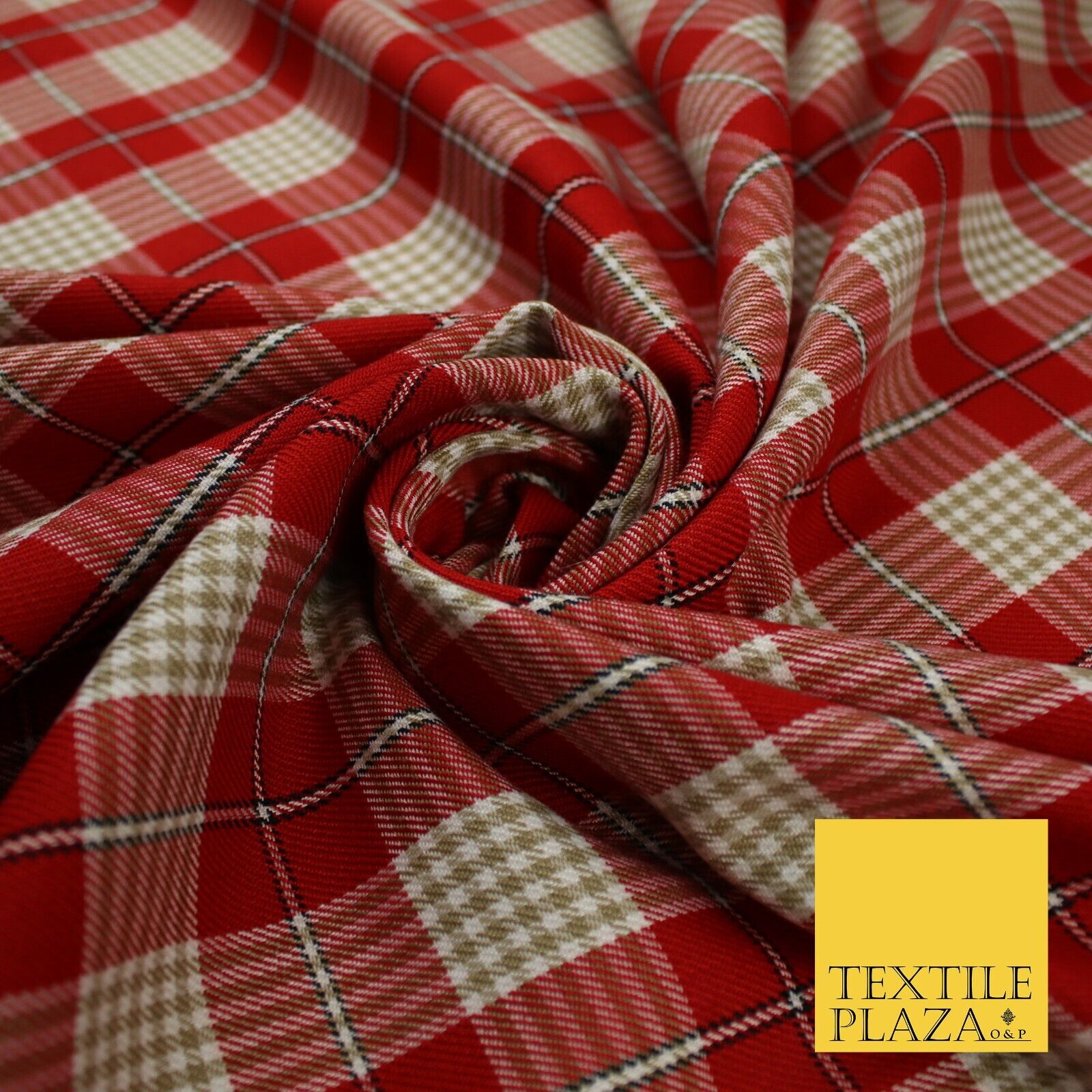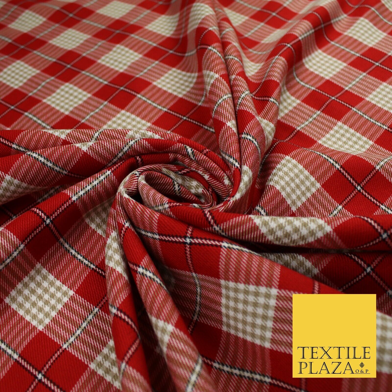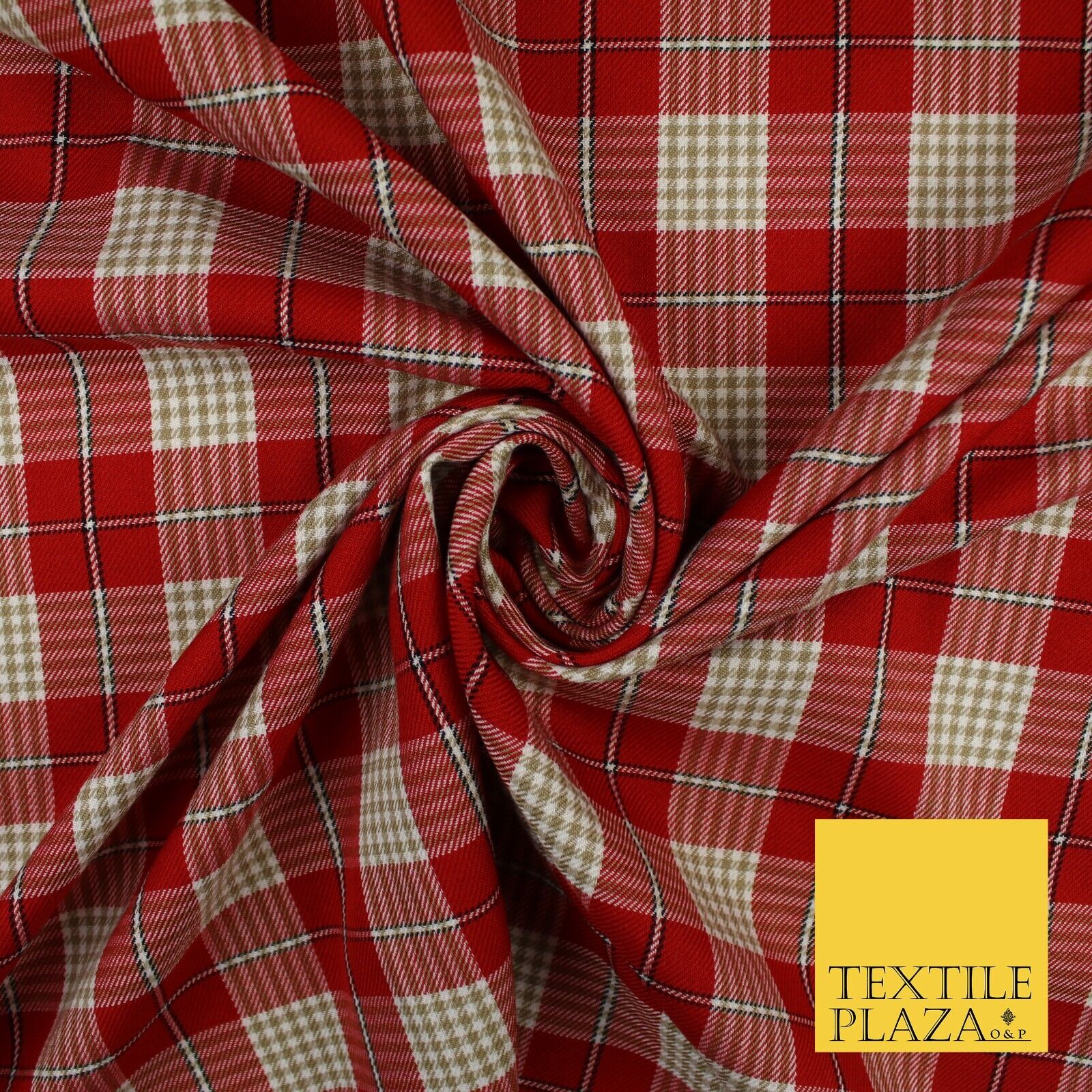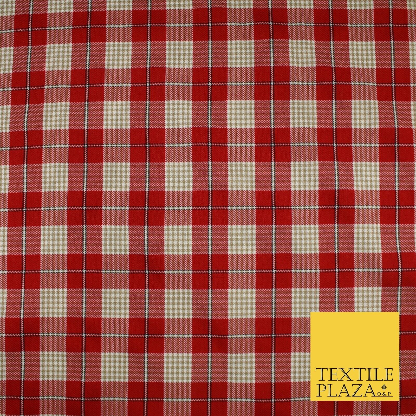 RED BEIGE TARTAN CHECK Irvine Inspired Poly Viscose Fabric 58" Dress 10180