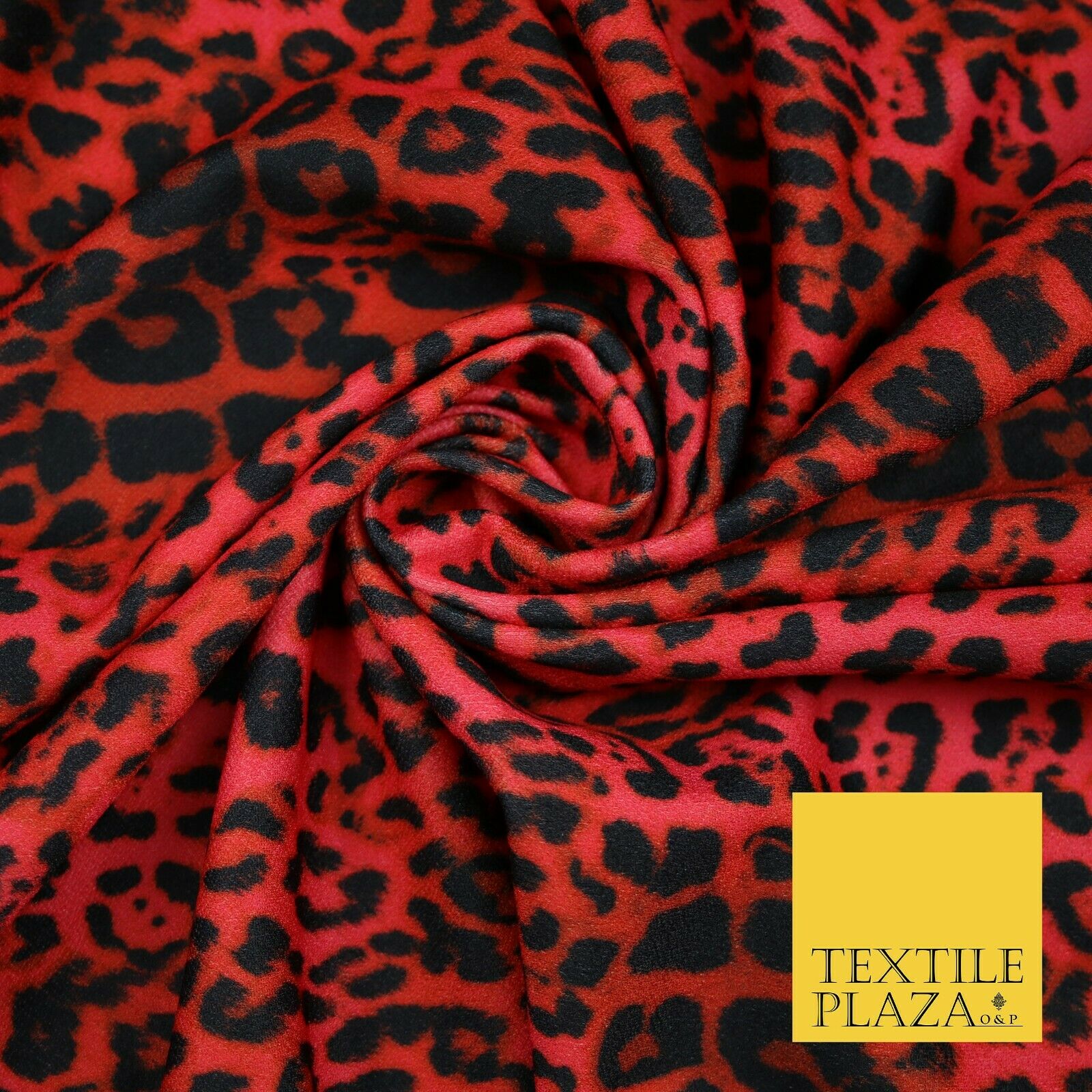 Animal Leopard Cheetah Print Crepe Jersey Fabric Composition : Polyester / Spandex Colour : RED / BLACK Available to purchase...
