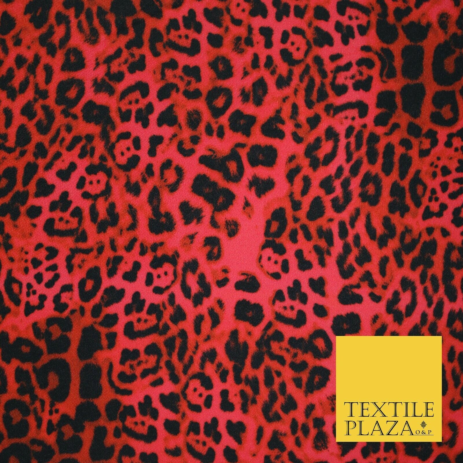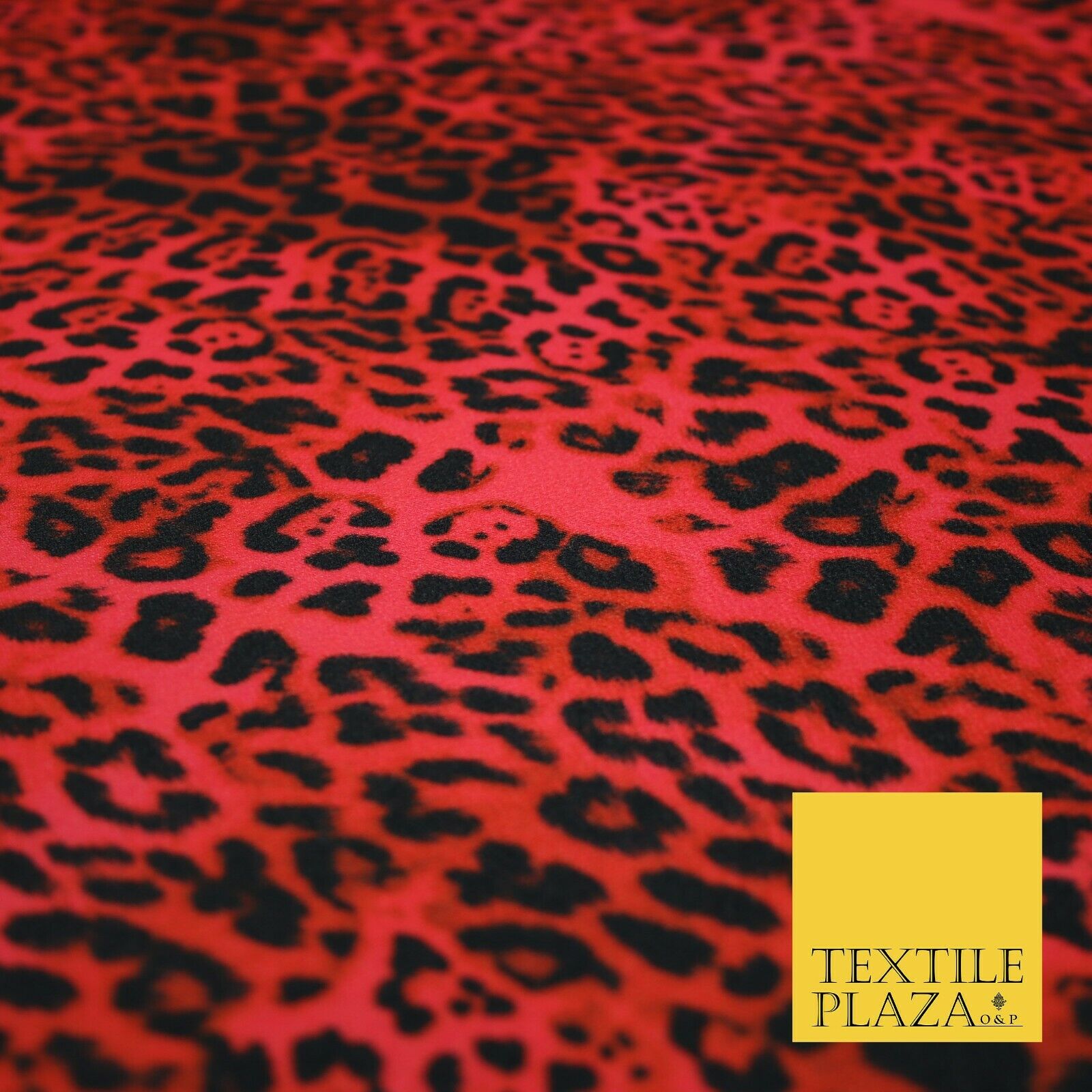 Red Black Leopard Cheetah Animal Print Crepe Jersey Fabric Stretch 56" Wide 6361