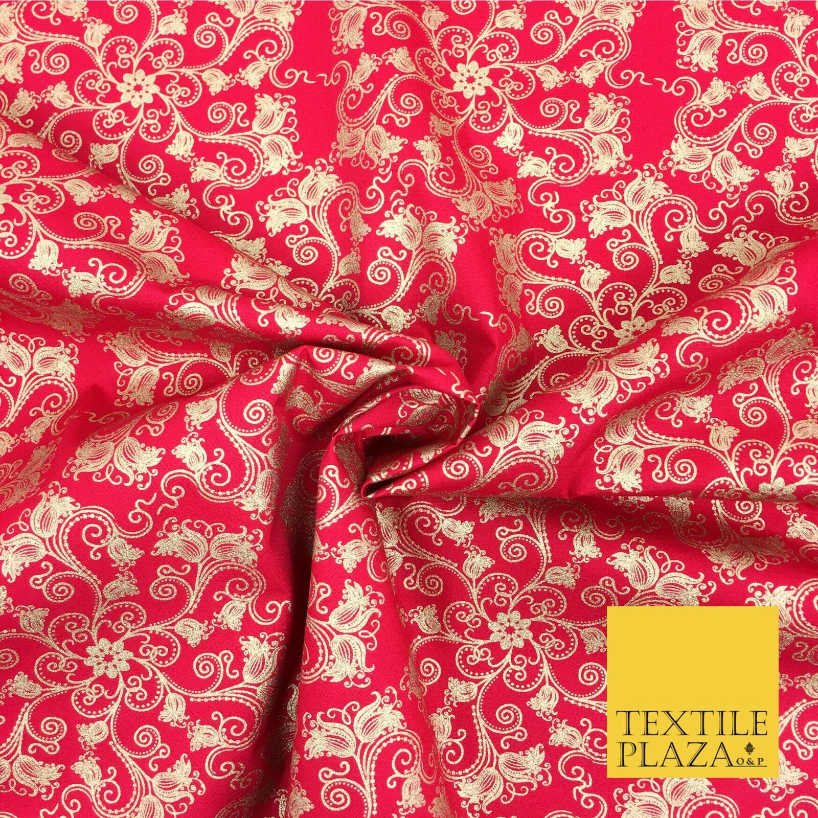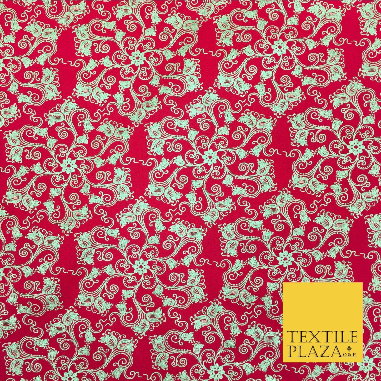 RED Christmas Glitter Flower Fabric 100% Cotton - Festive Sparkle RF161