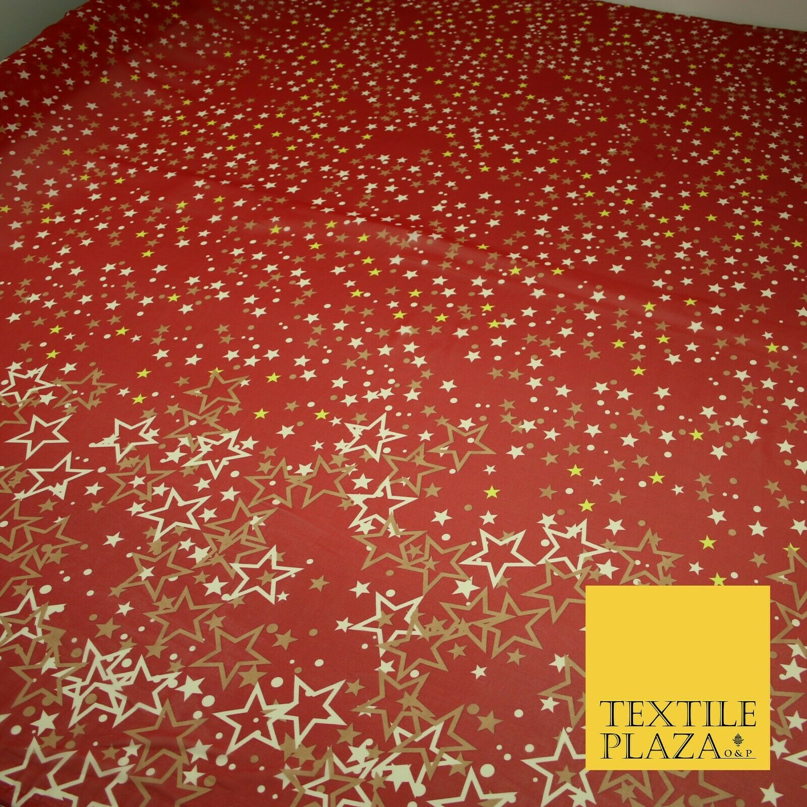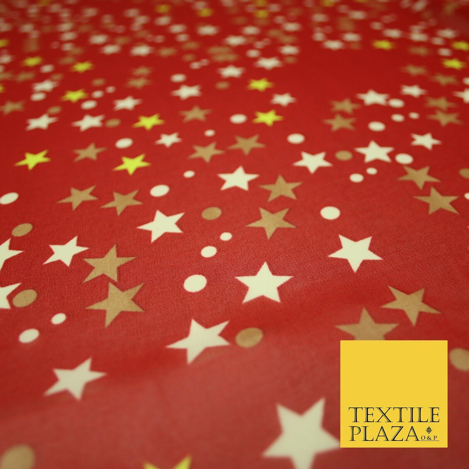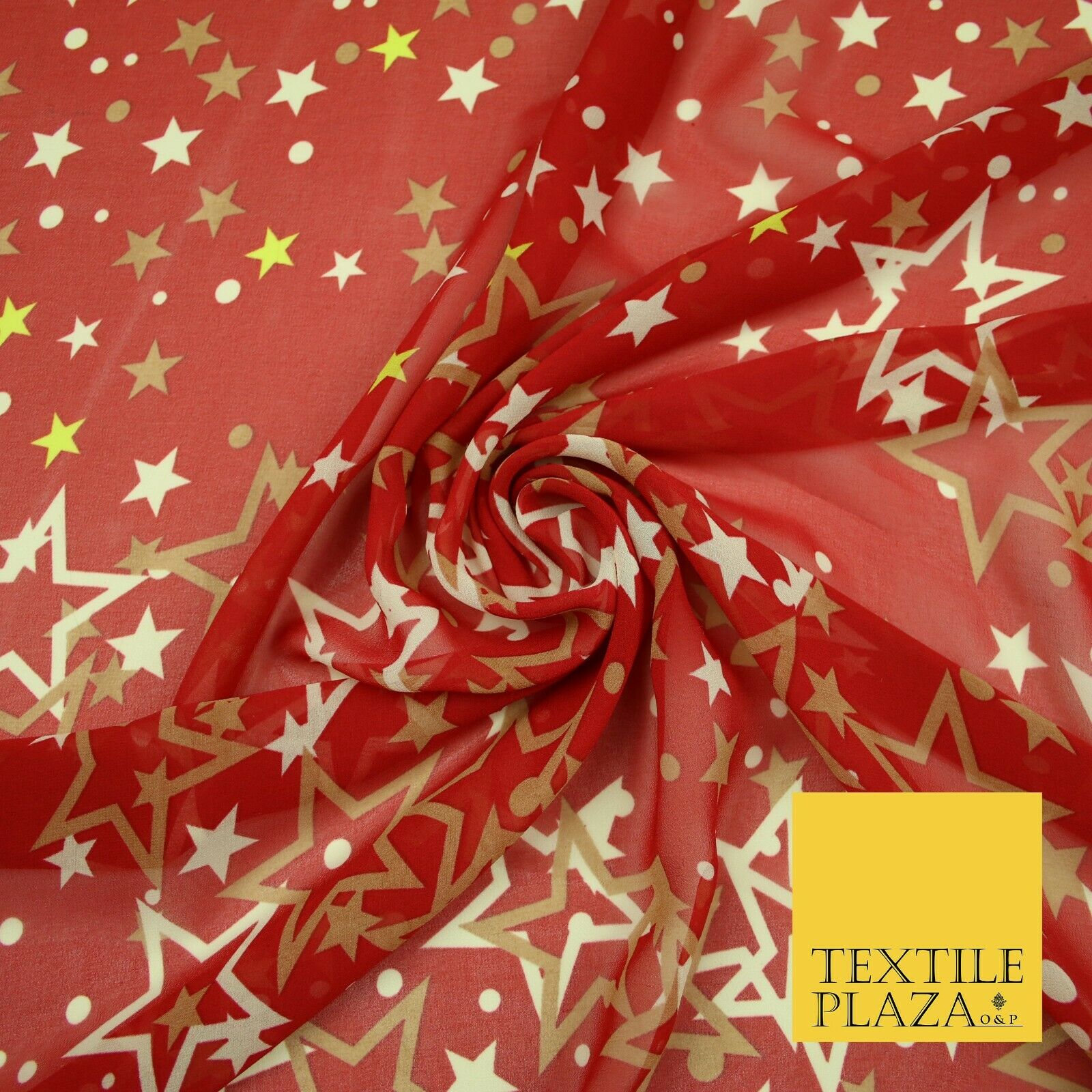 Red Gold Cream Falling Stars Spotted Premium Printed Georgette Dress Fabric 2823
