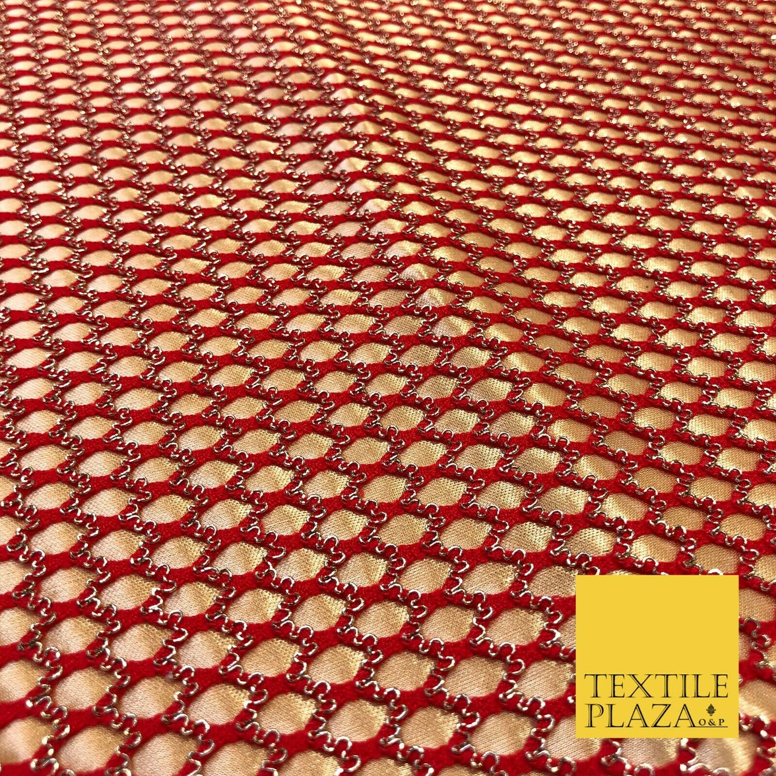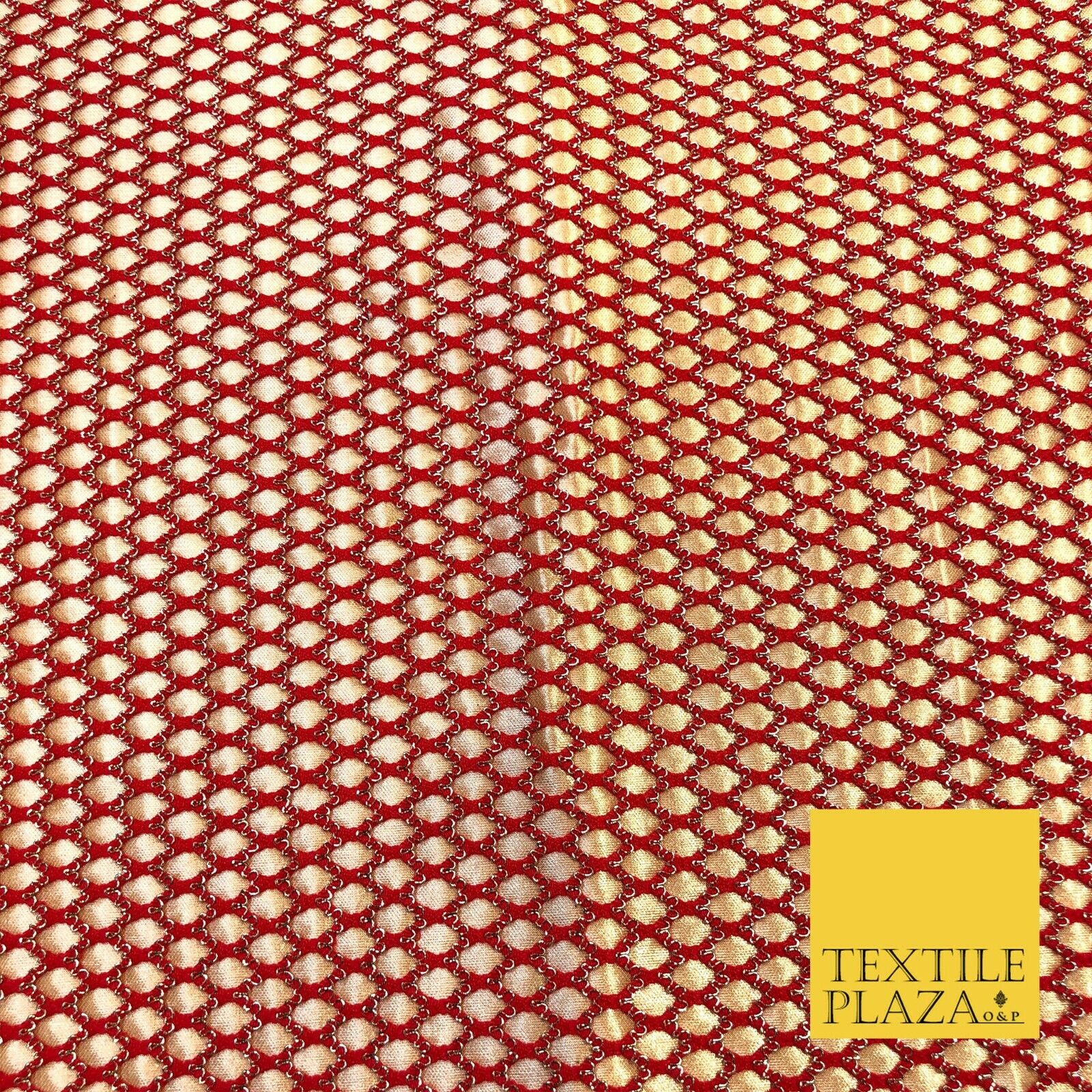RED & GOLD Satin Bonded Large Hexagon Lace Dancewear Dress Fabric 1247