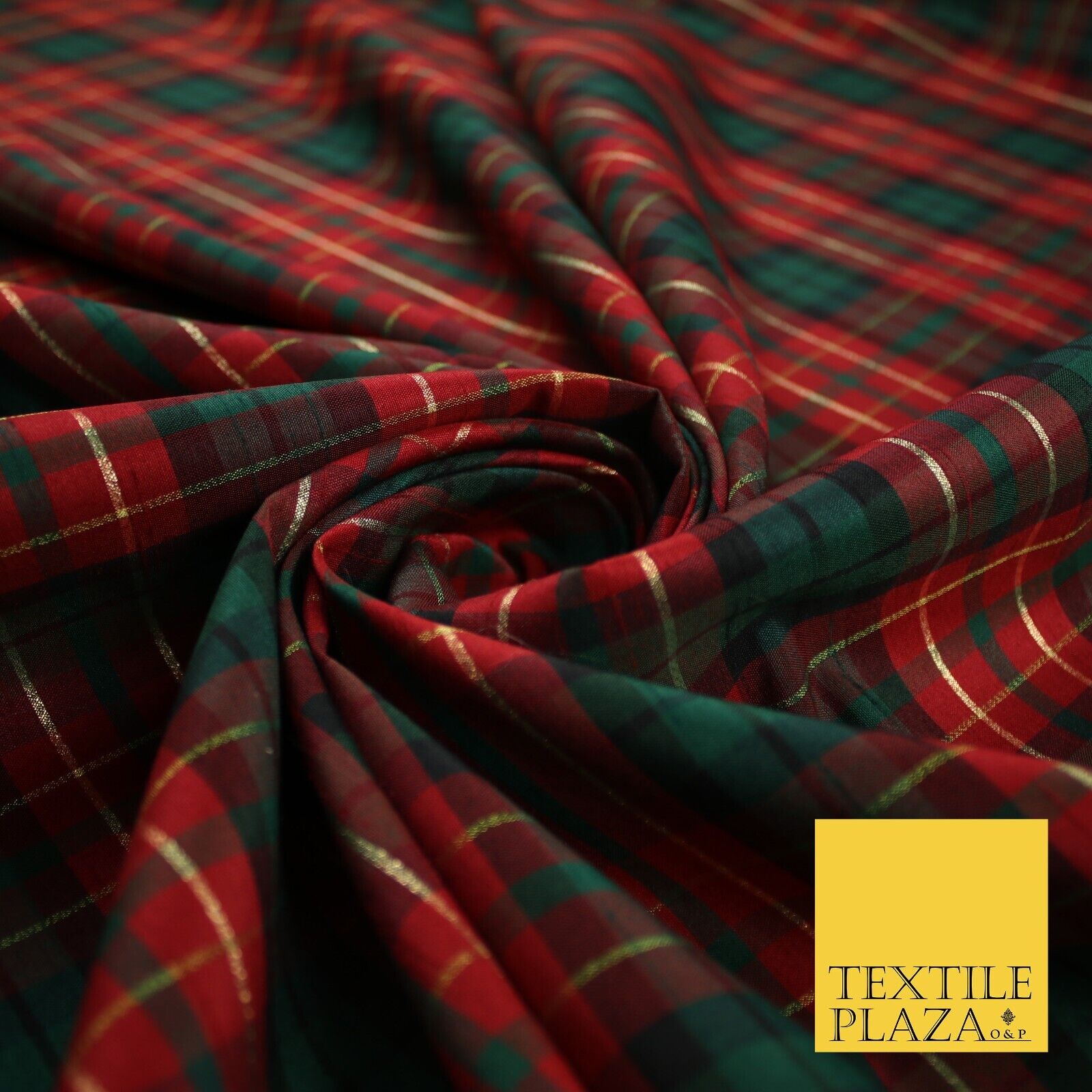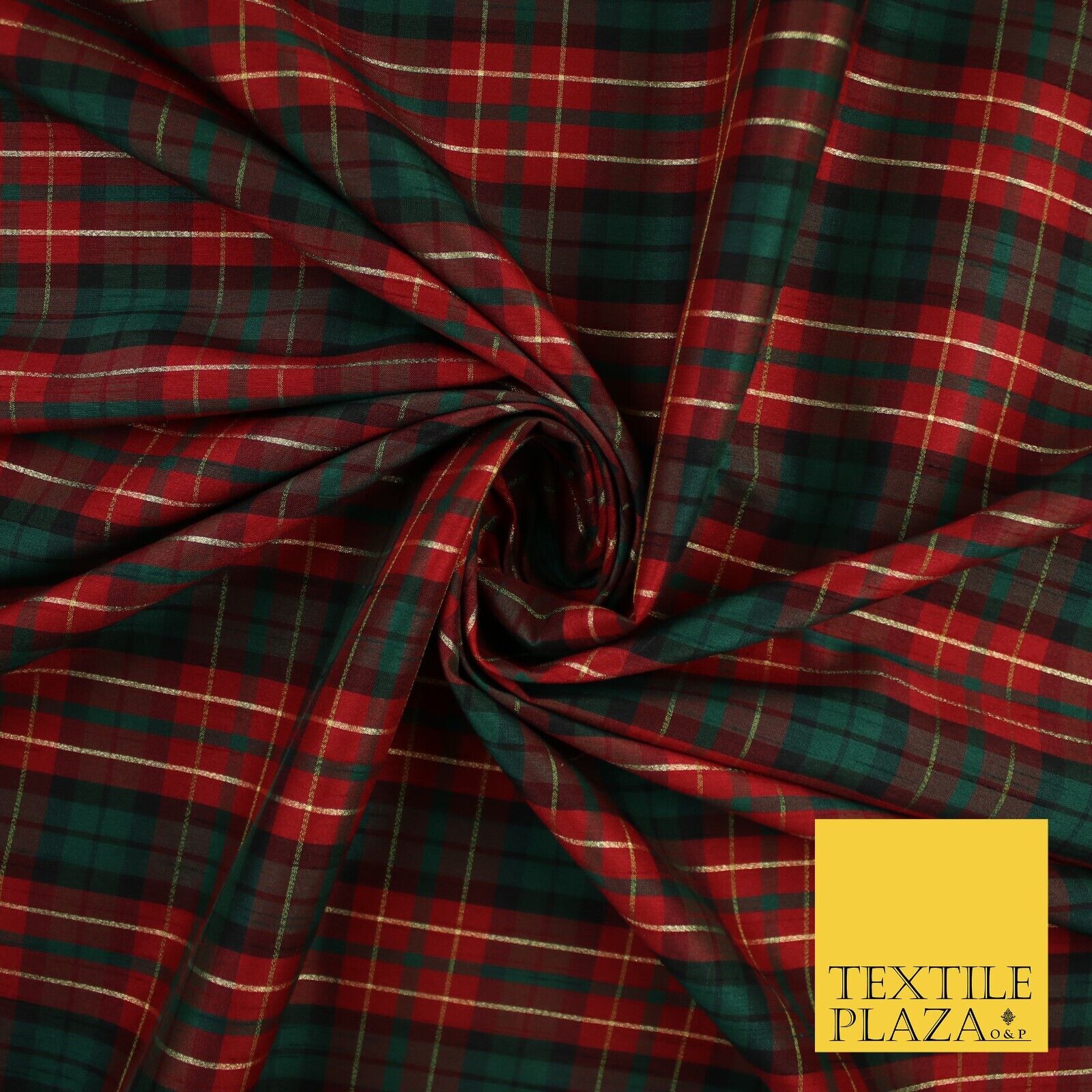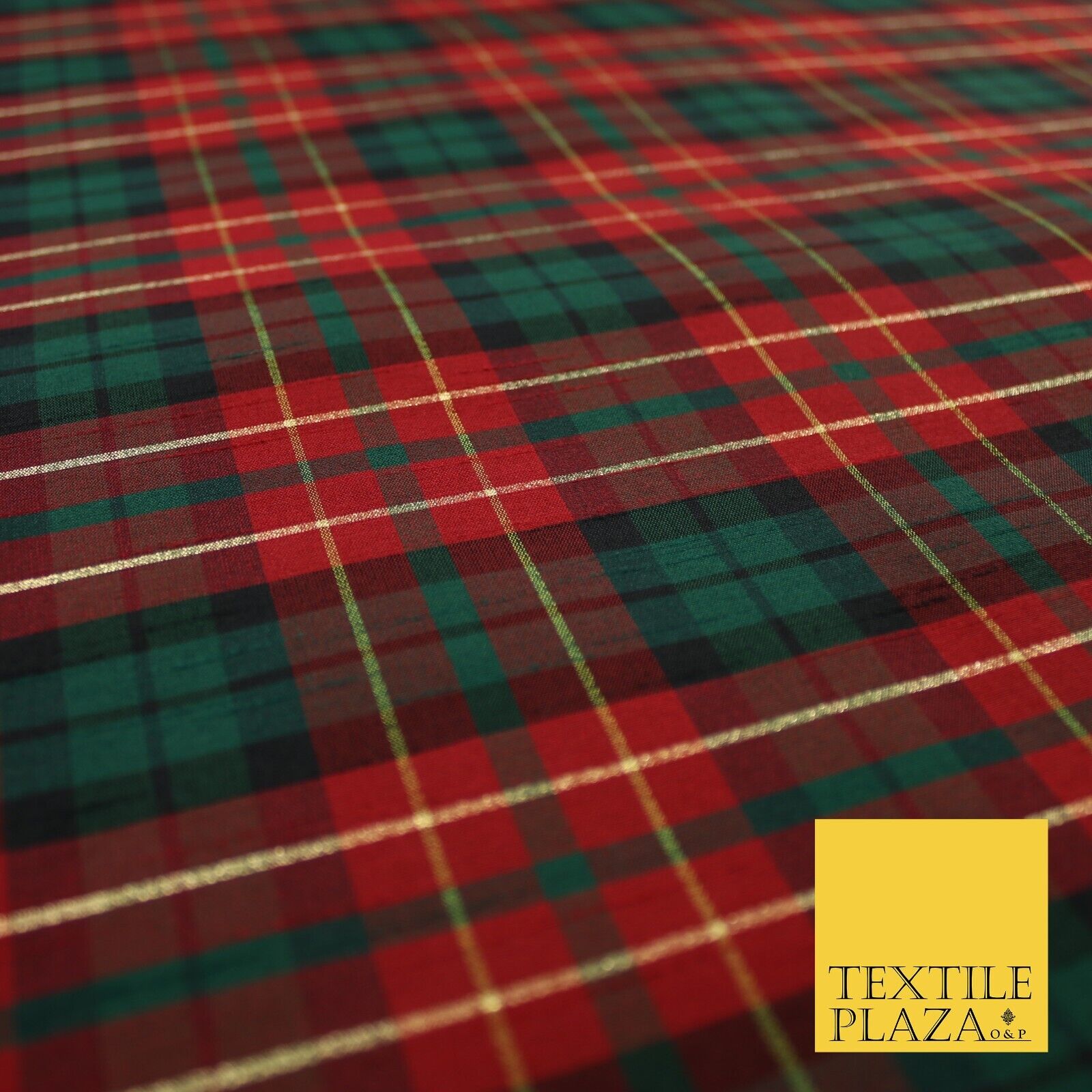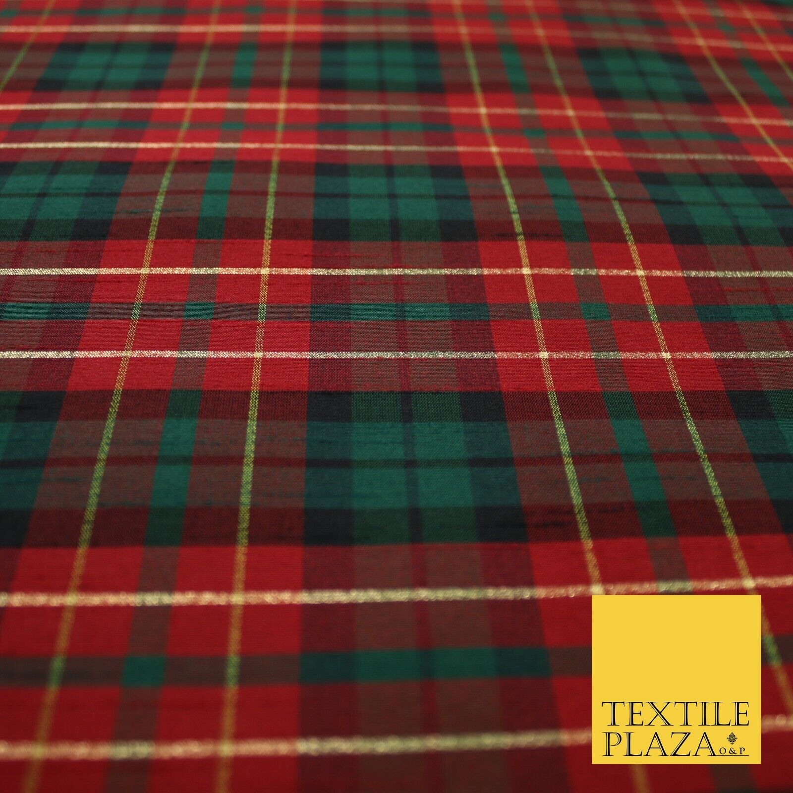 Red Green Colton Plaid Metallic Check Tartan Dupion Faux Raw Silk Fabric 9644
