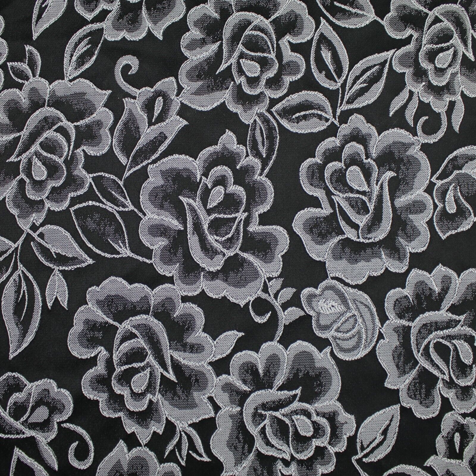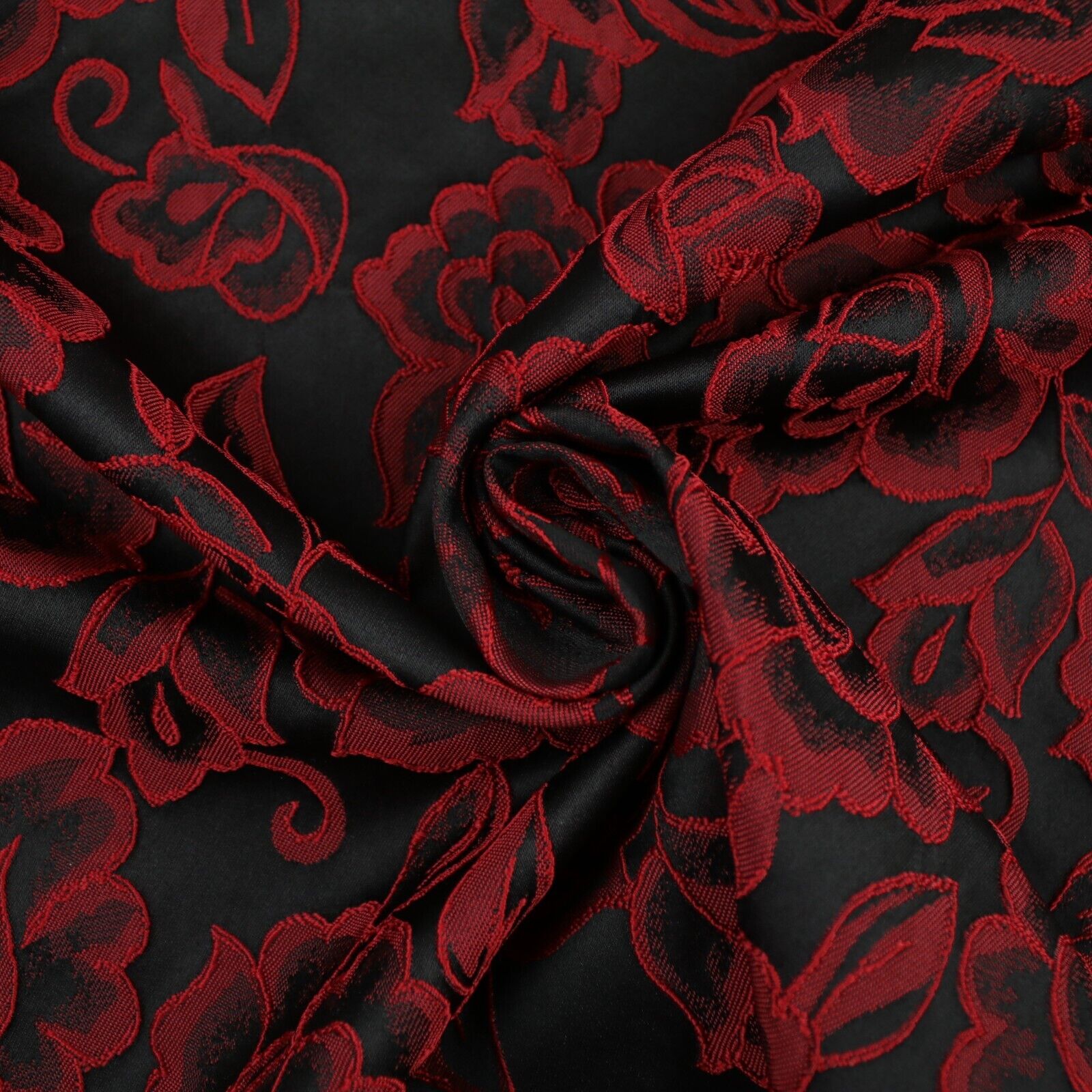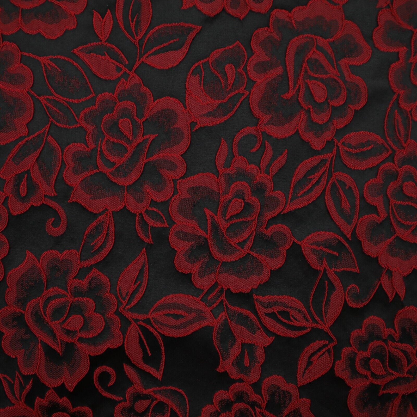 Red Grey Royal Blue Ornate Floral Roses Corded Floral Textured Brocade Fabric