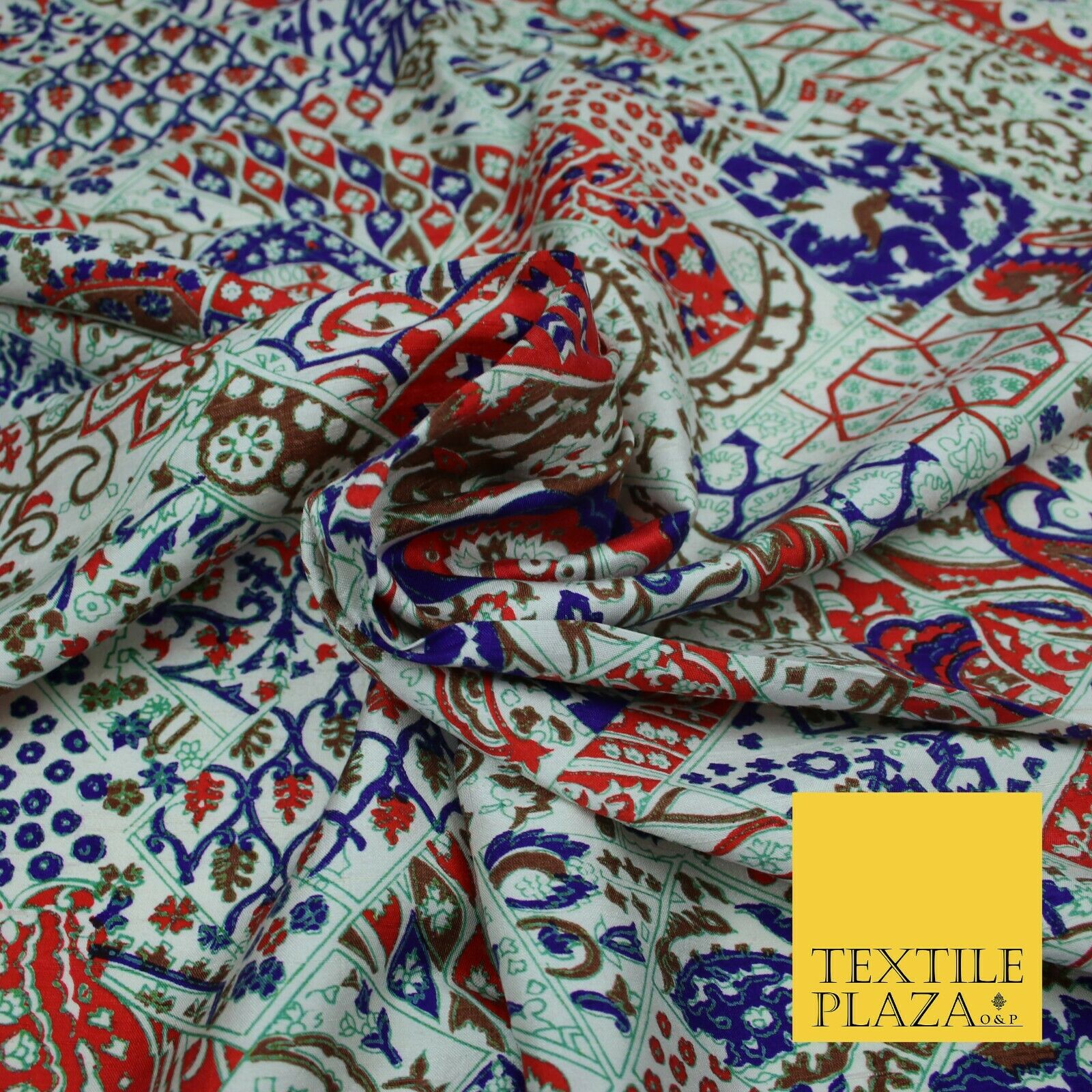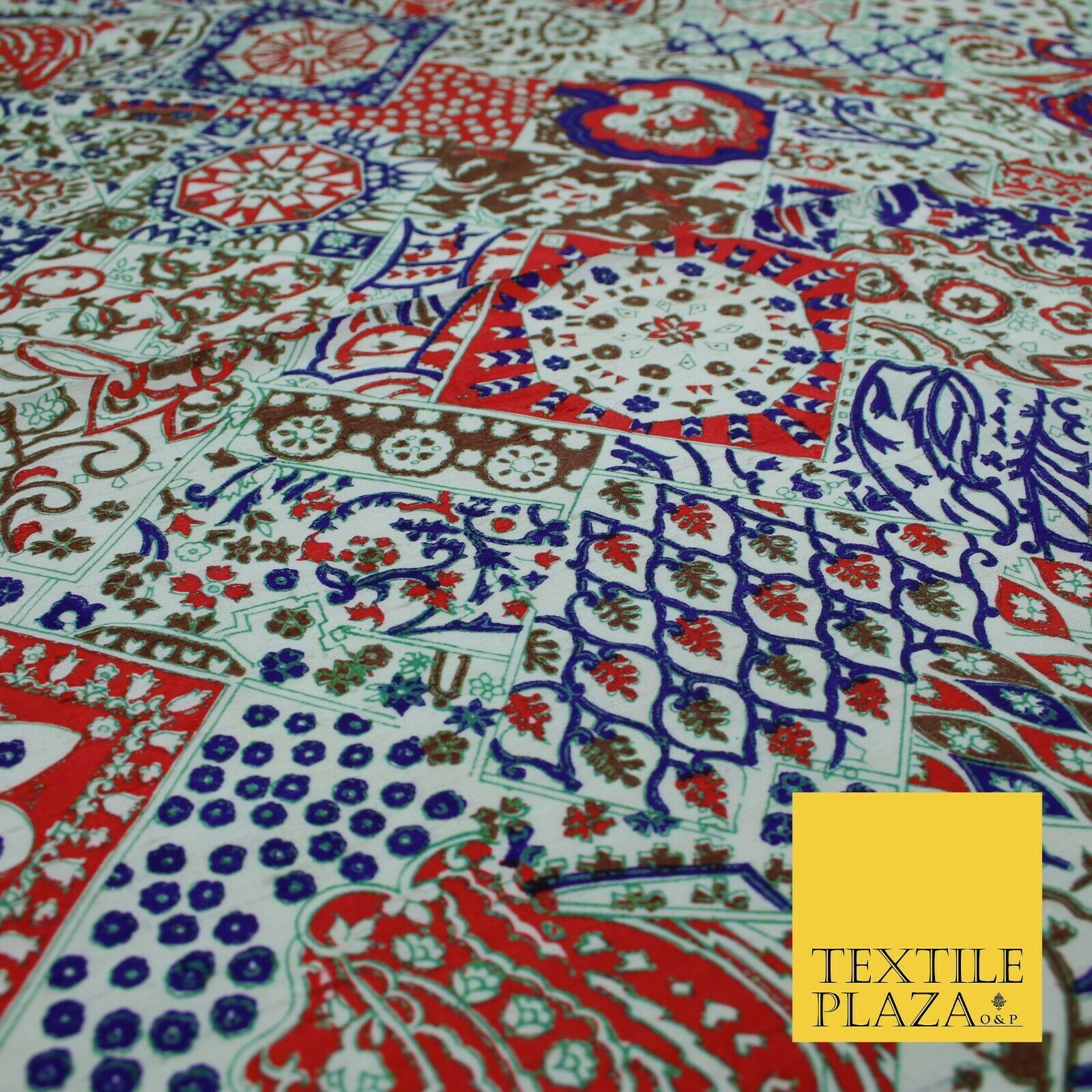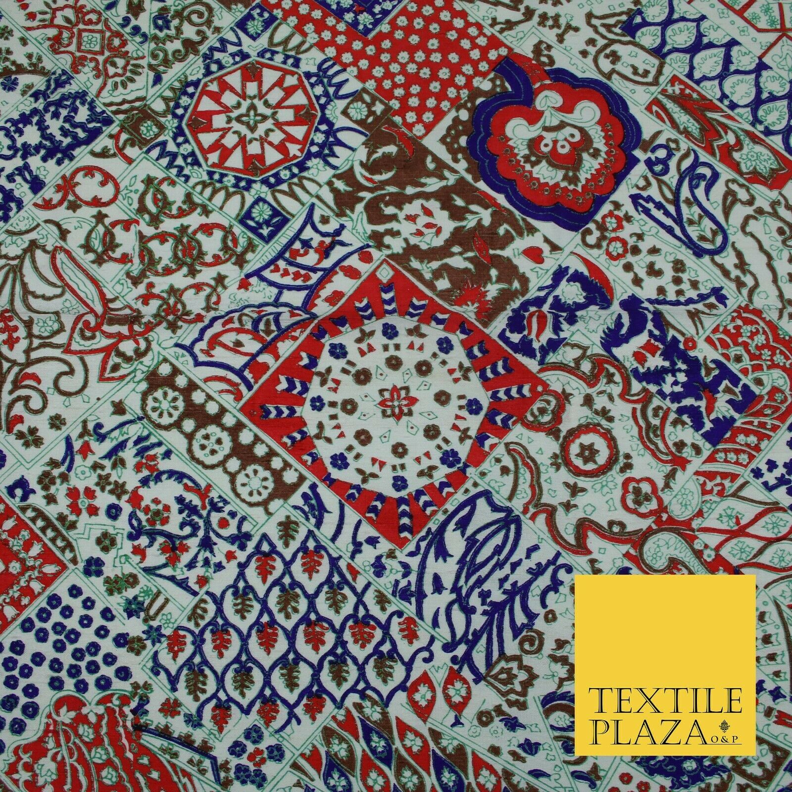 Red Mix Patchwork Style Printed 100% PURE Dupion Silk Fabric Slub Handloom 1811