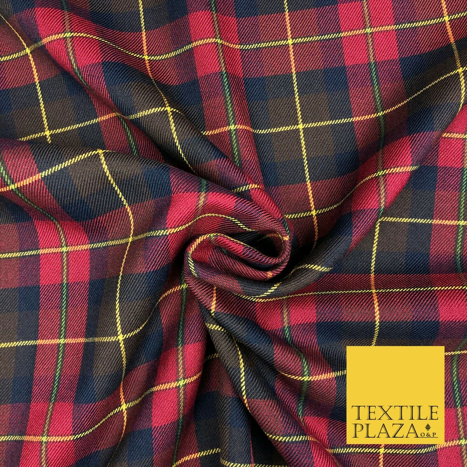 RED NAVY Check Tartan Plaid Polyester Viscose Fabric 58" Craft Dress 1291